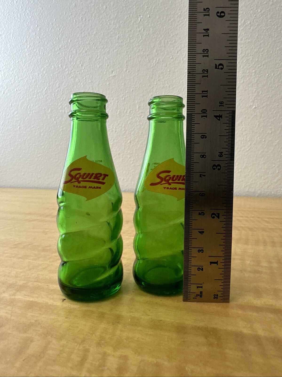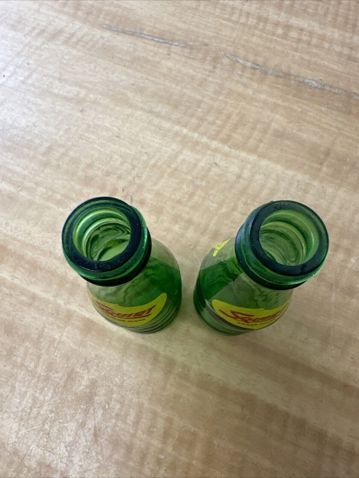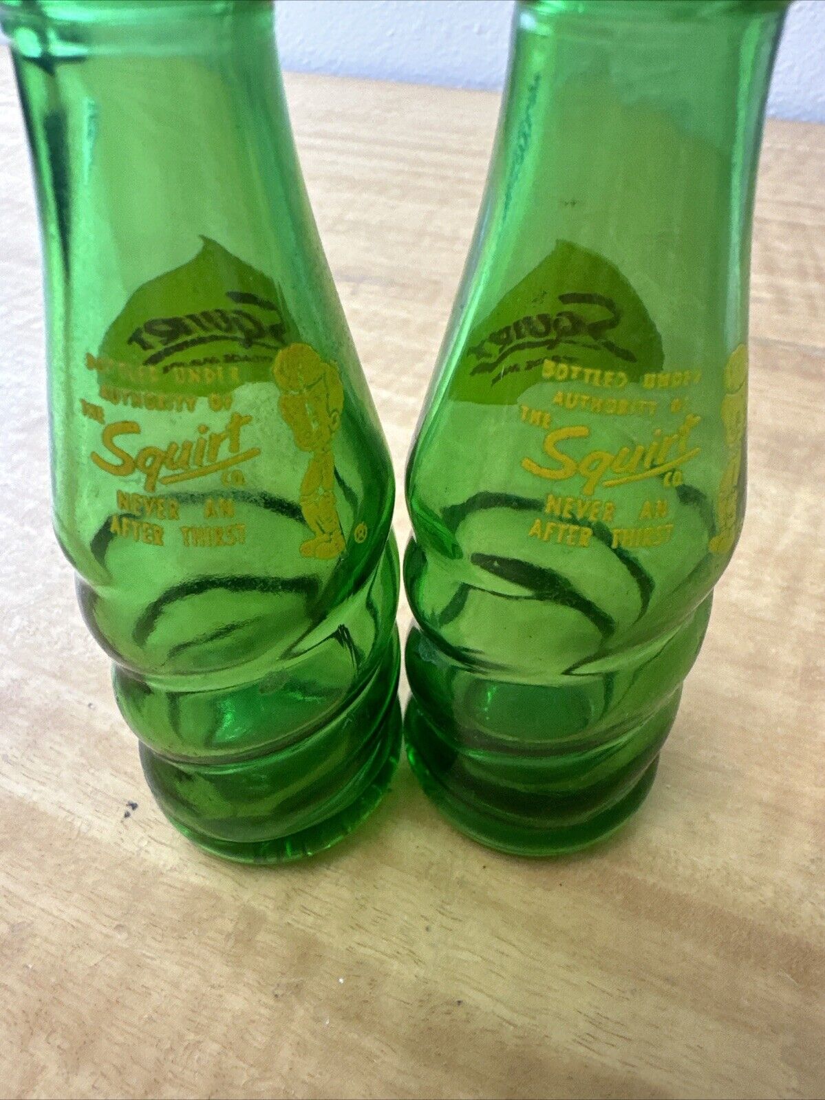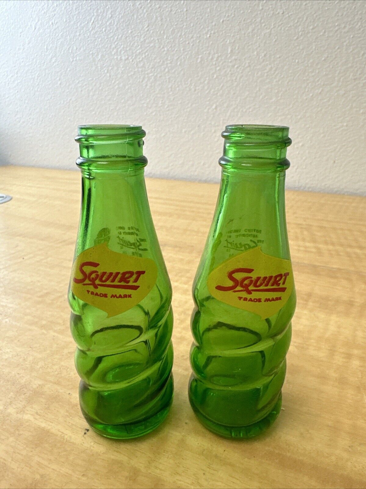 Vintage 1974 Squirt Soda Collectible Glass Salt & Pepper Shakers - Missing Tops