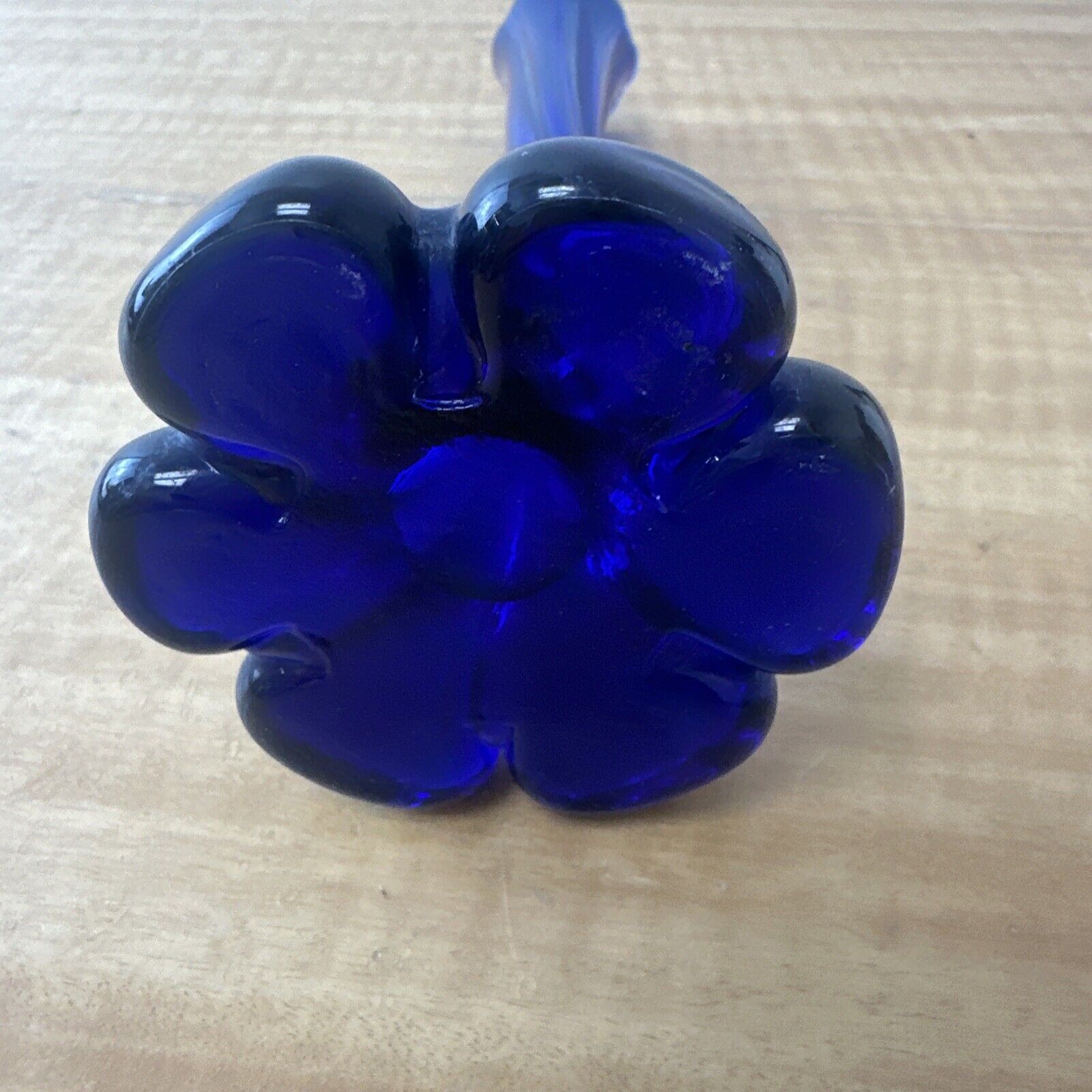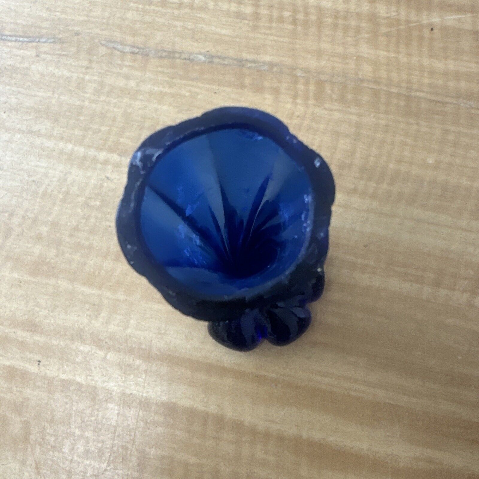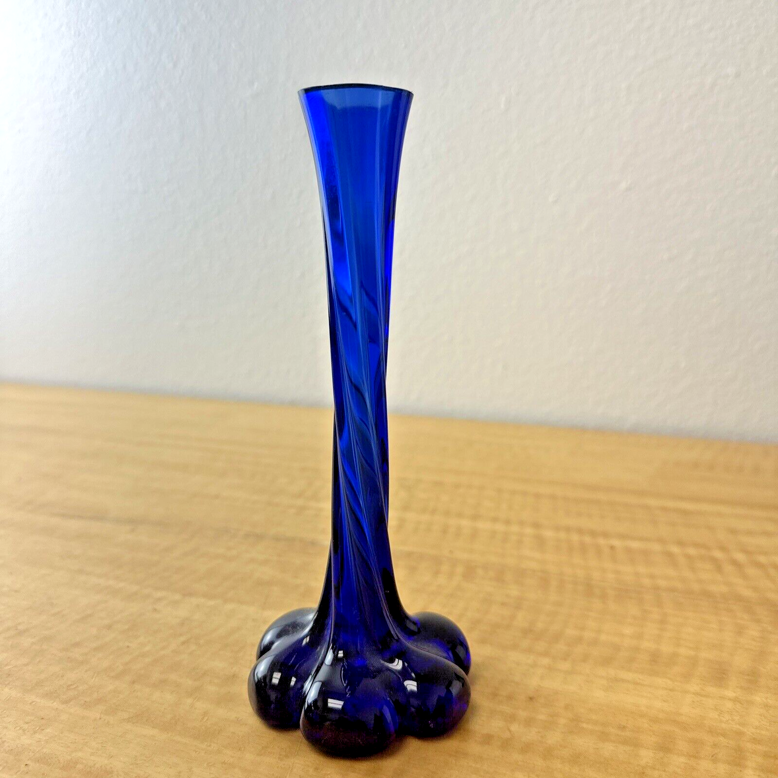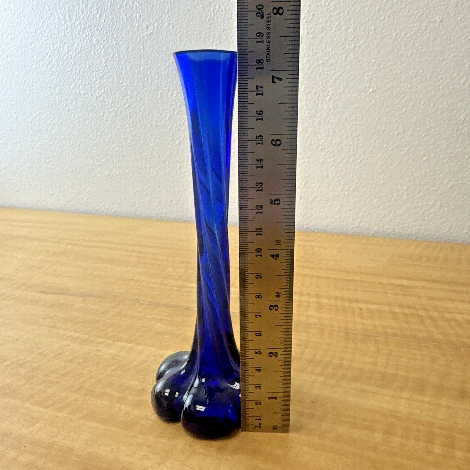 Vintage Art Glass, Cobalt Blue Twisted Glass Vase, Elephant Foot Base
