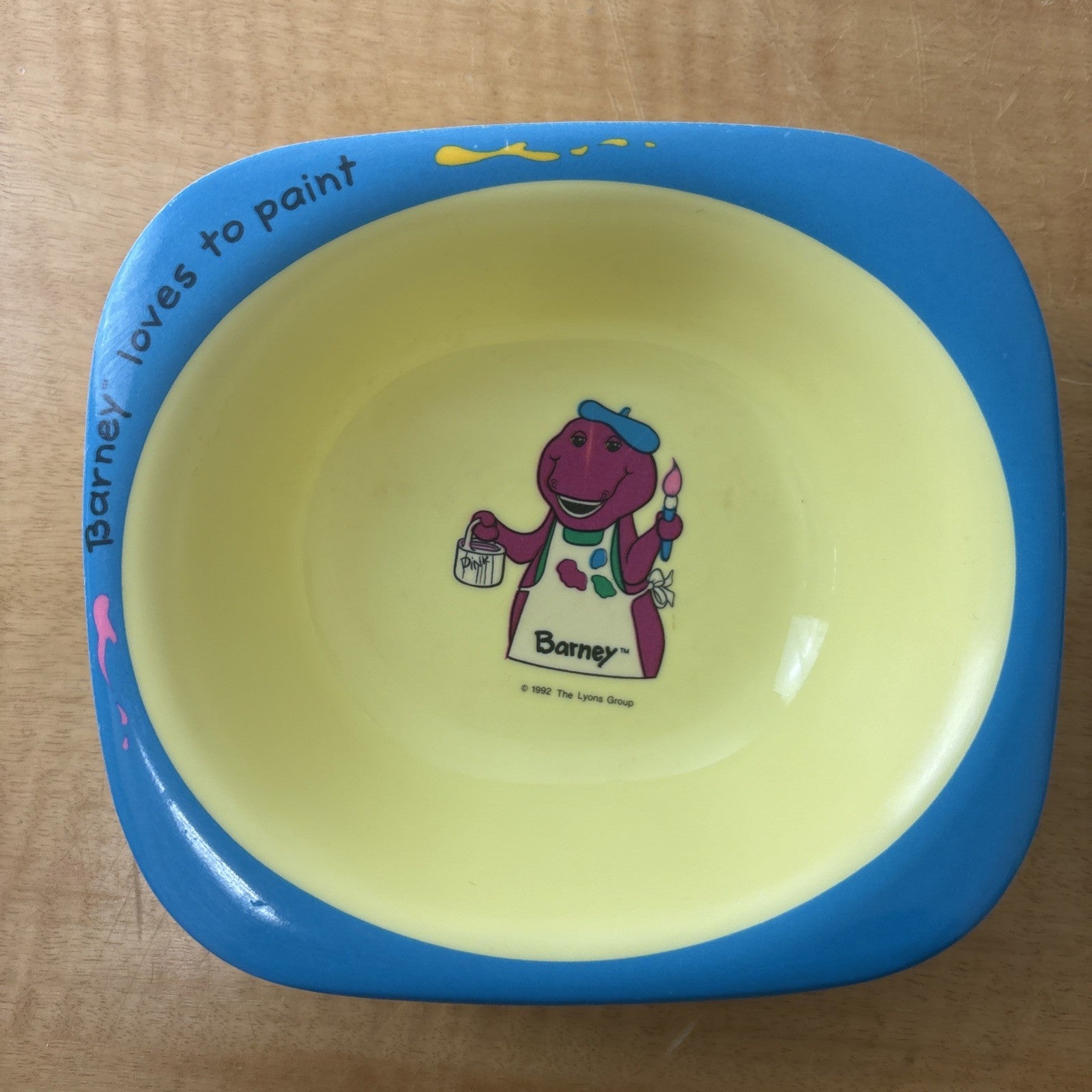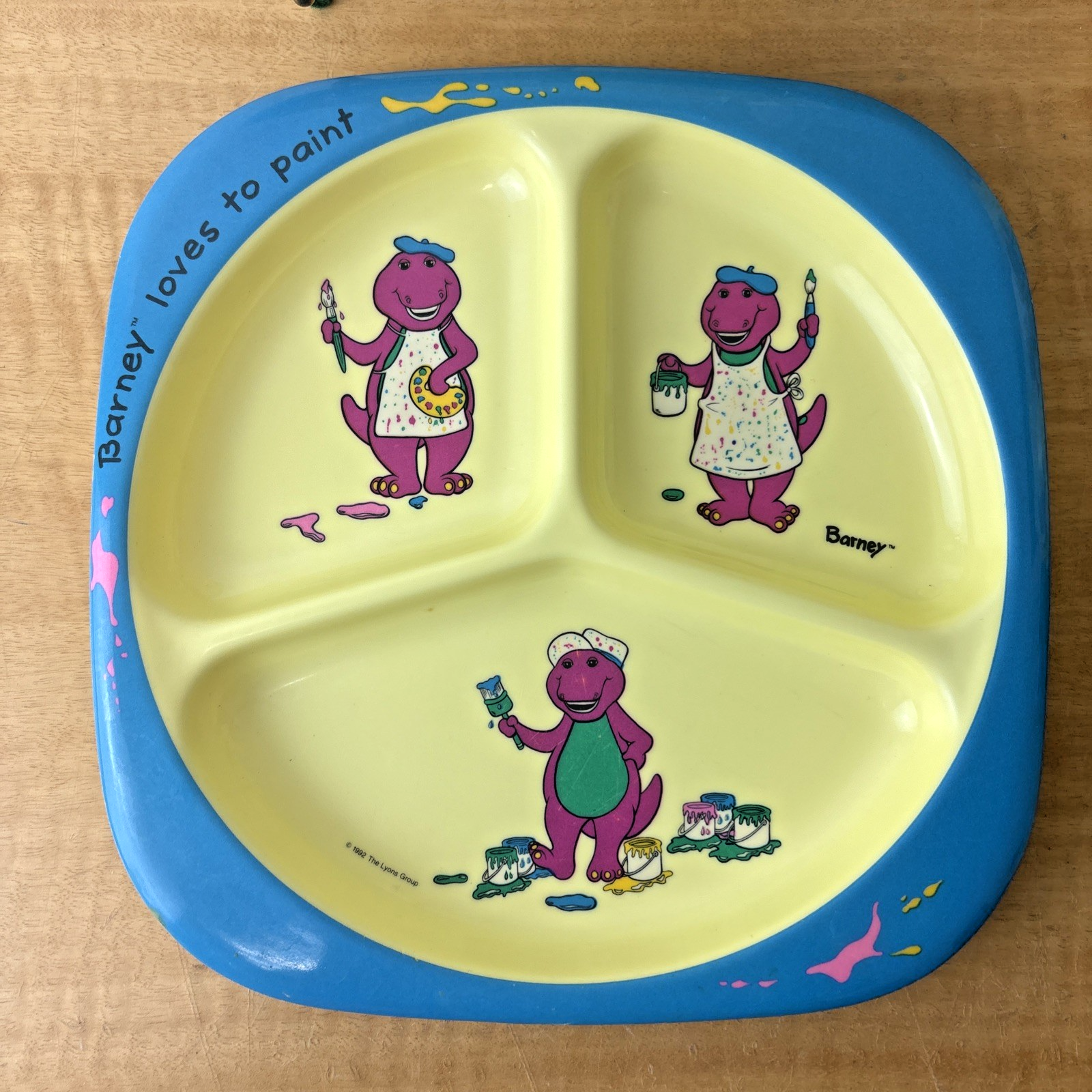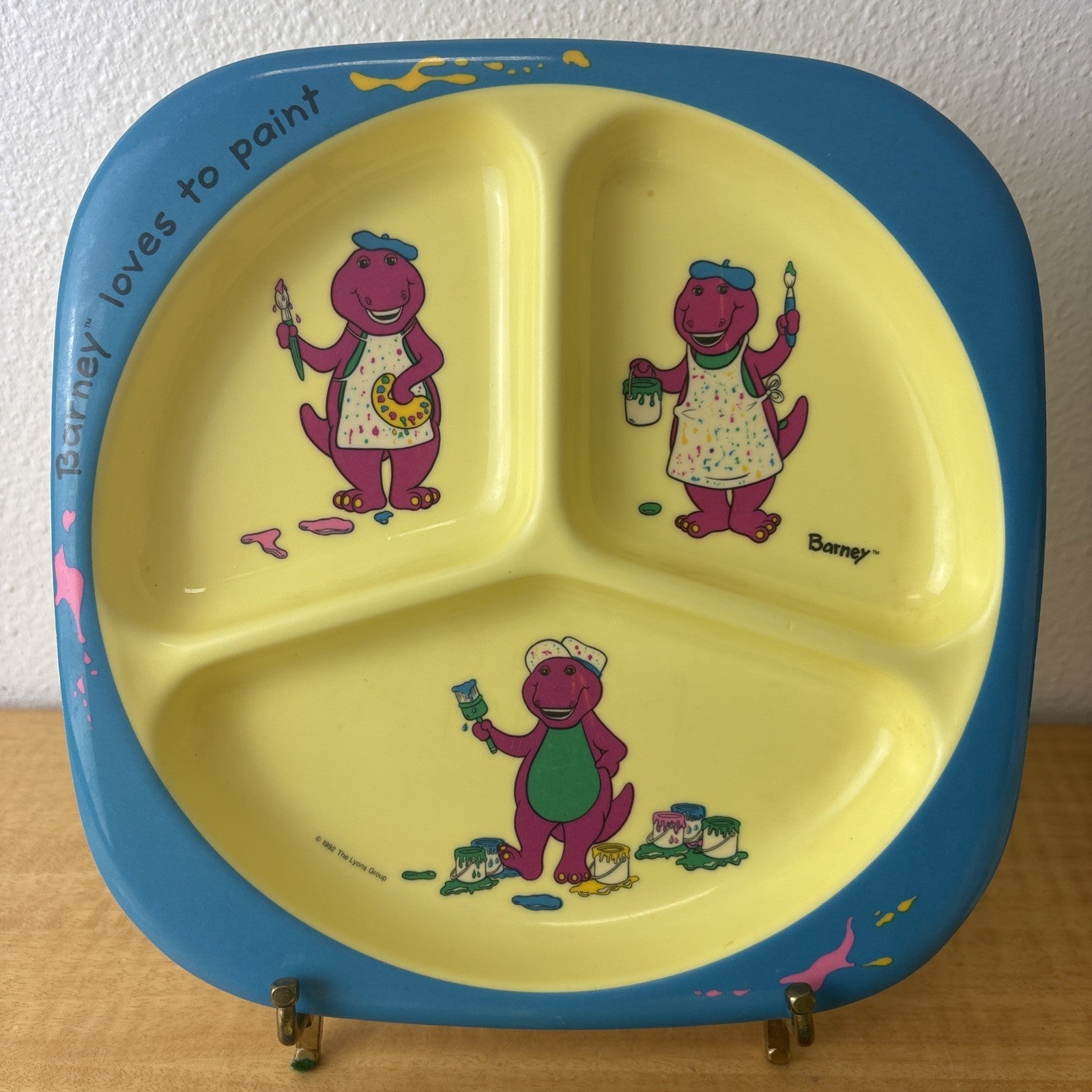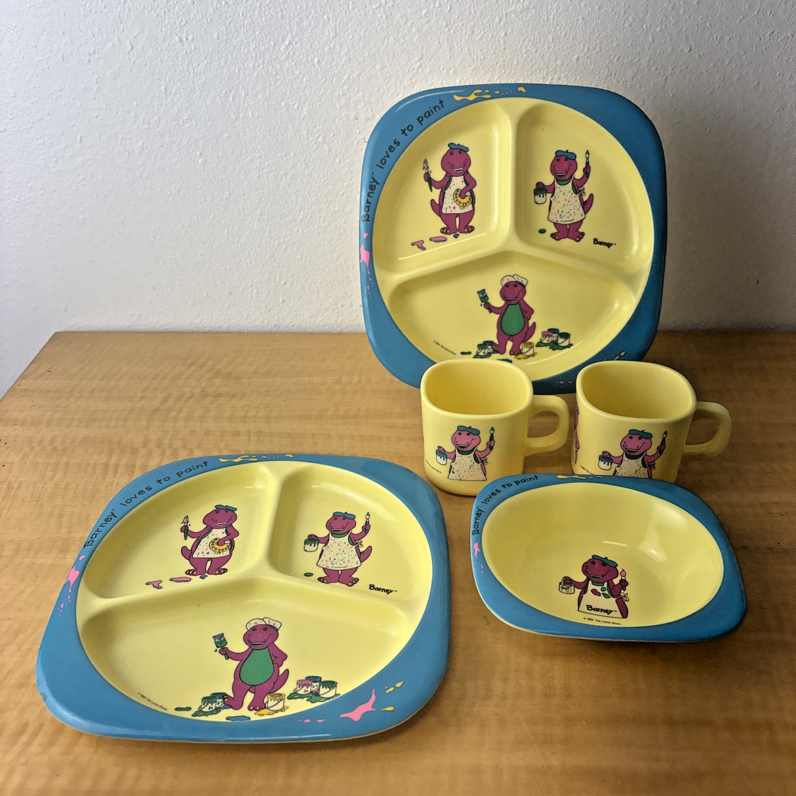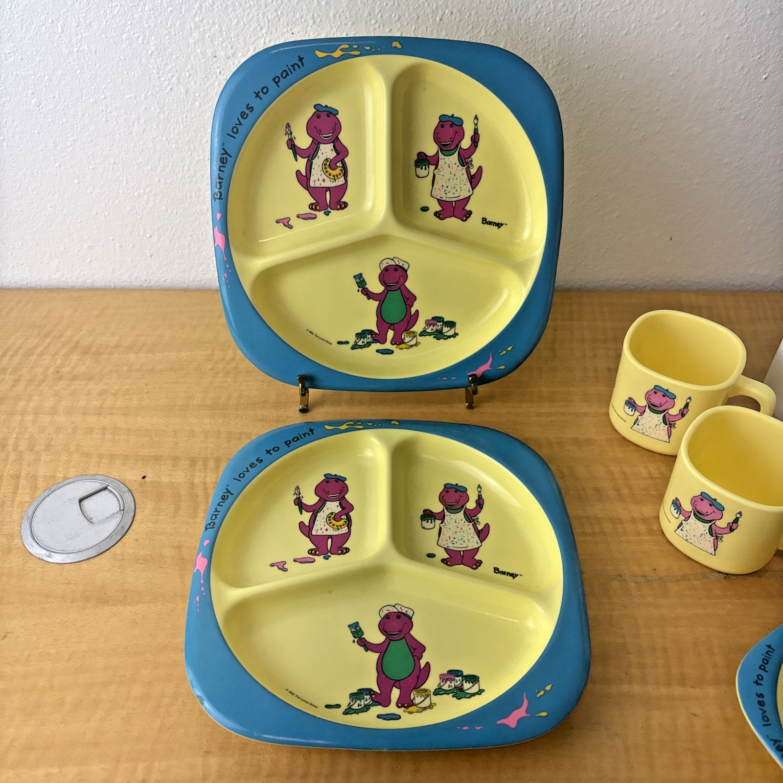 Vintage Barney Melamine Child Serving Set 5 pc P 1992 Barney Loves to Paint