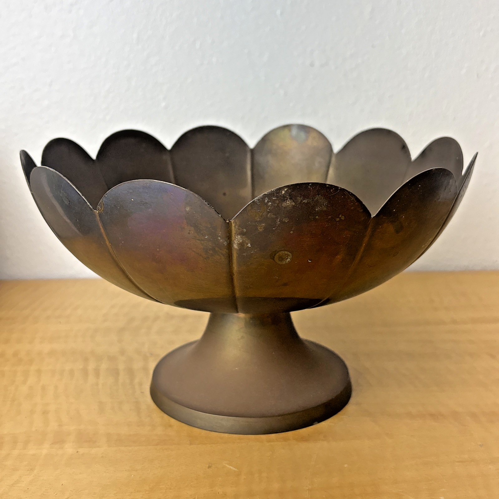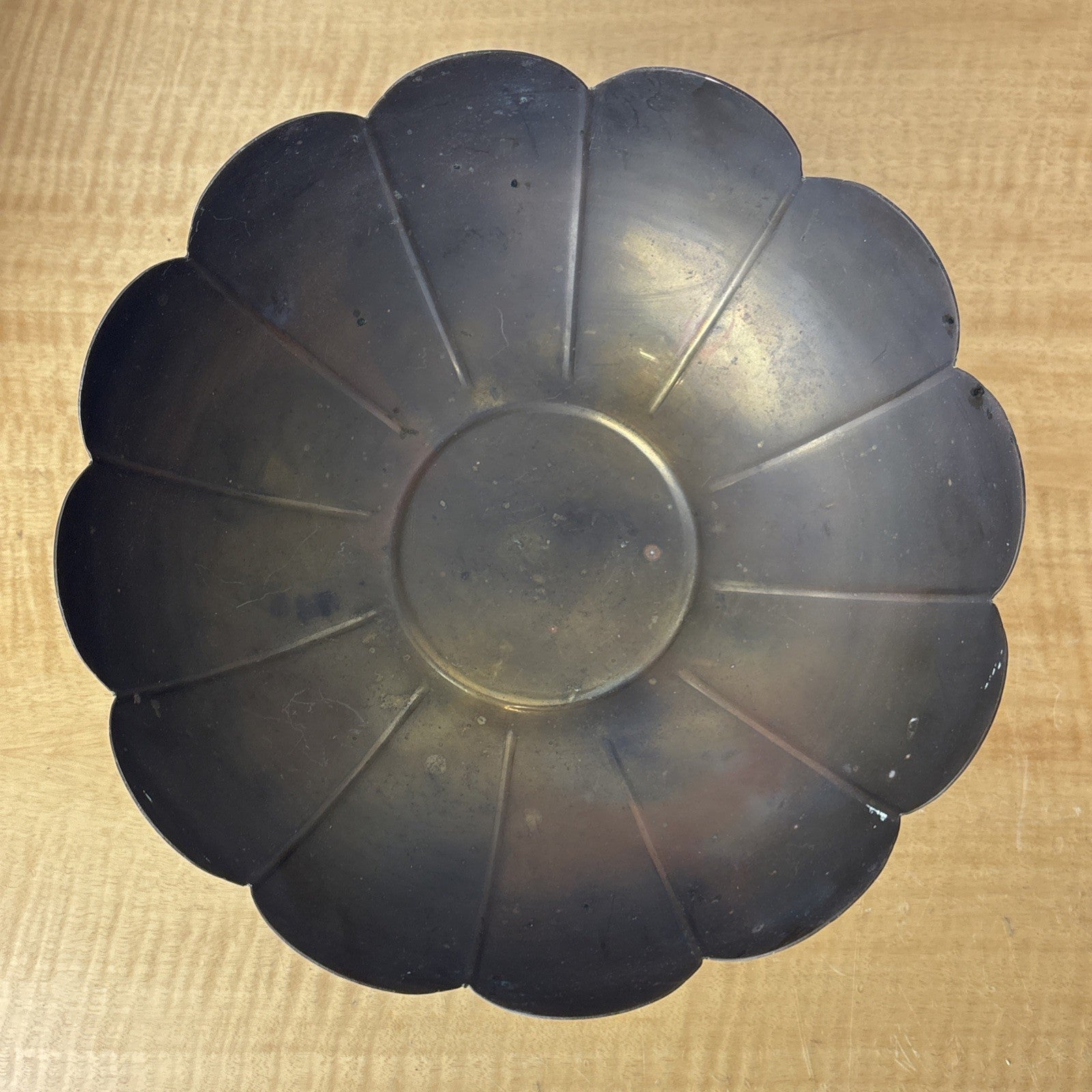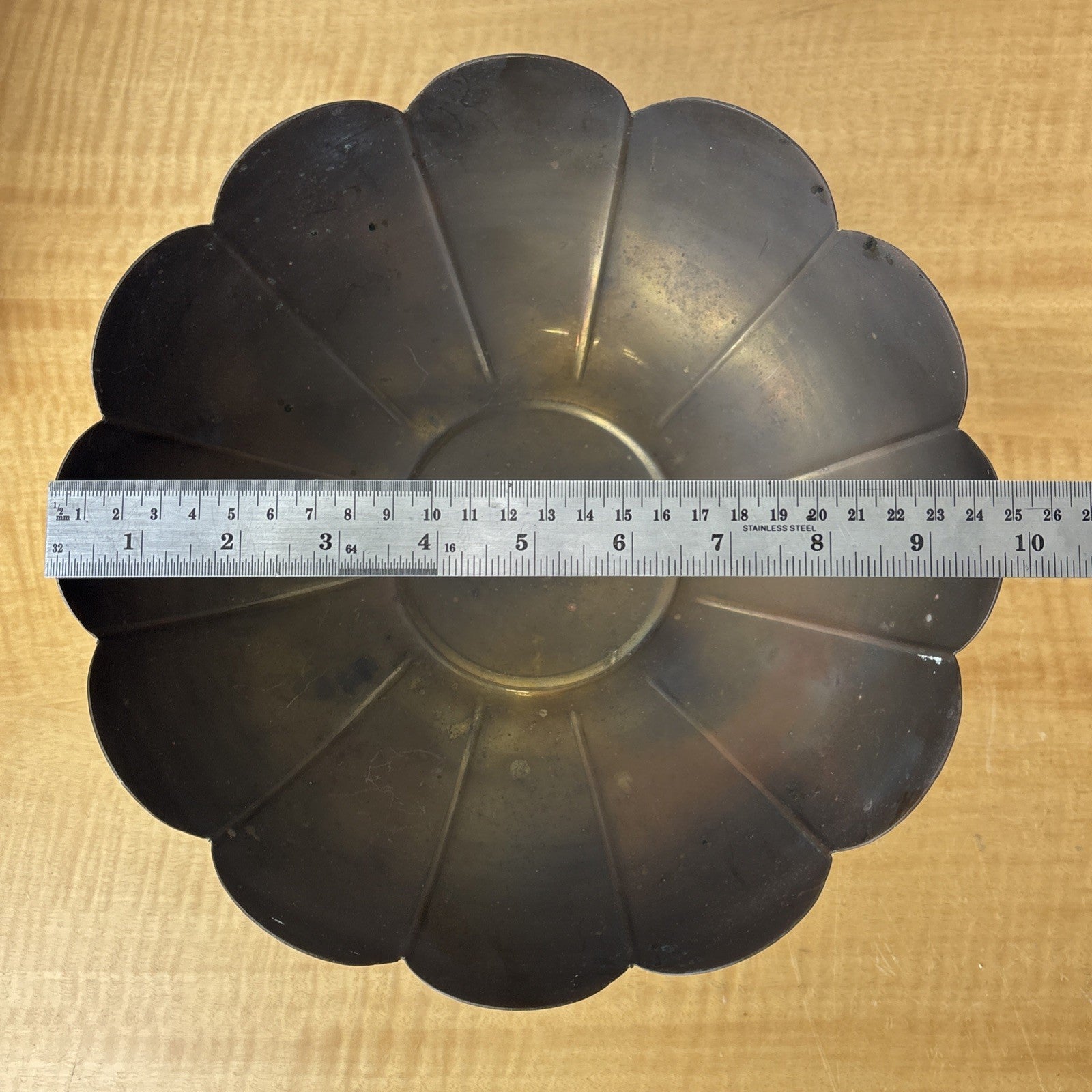 Vintage Brass Handcrafted Flower Shape Pedestal Fruit Bowl Made in India