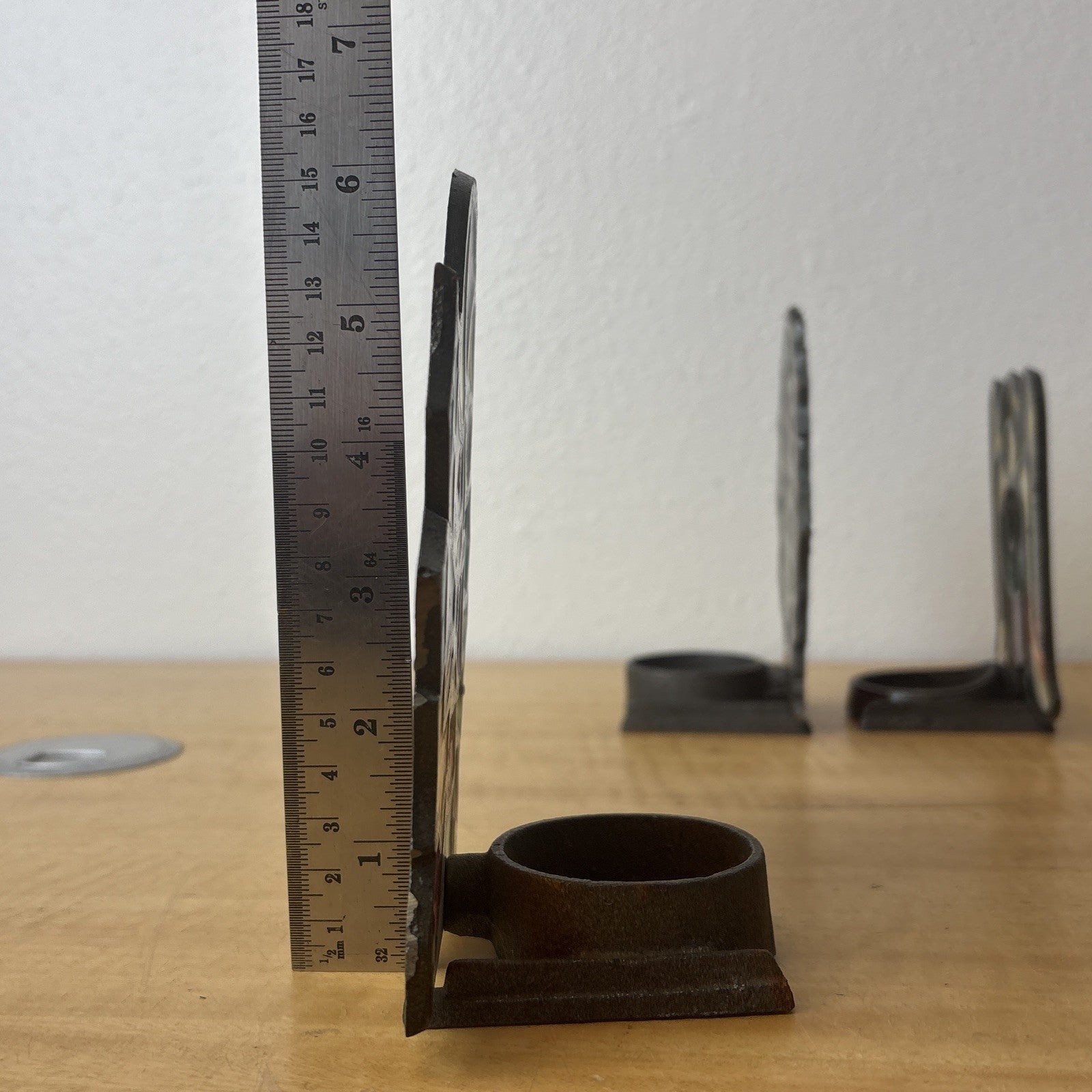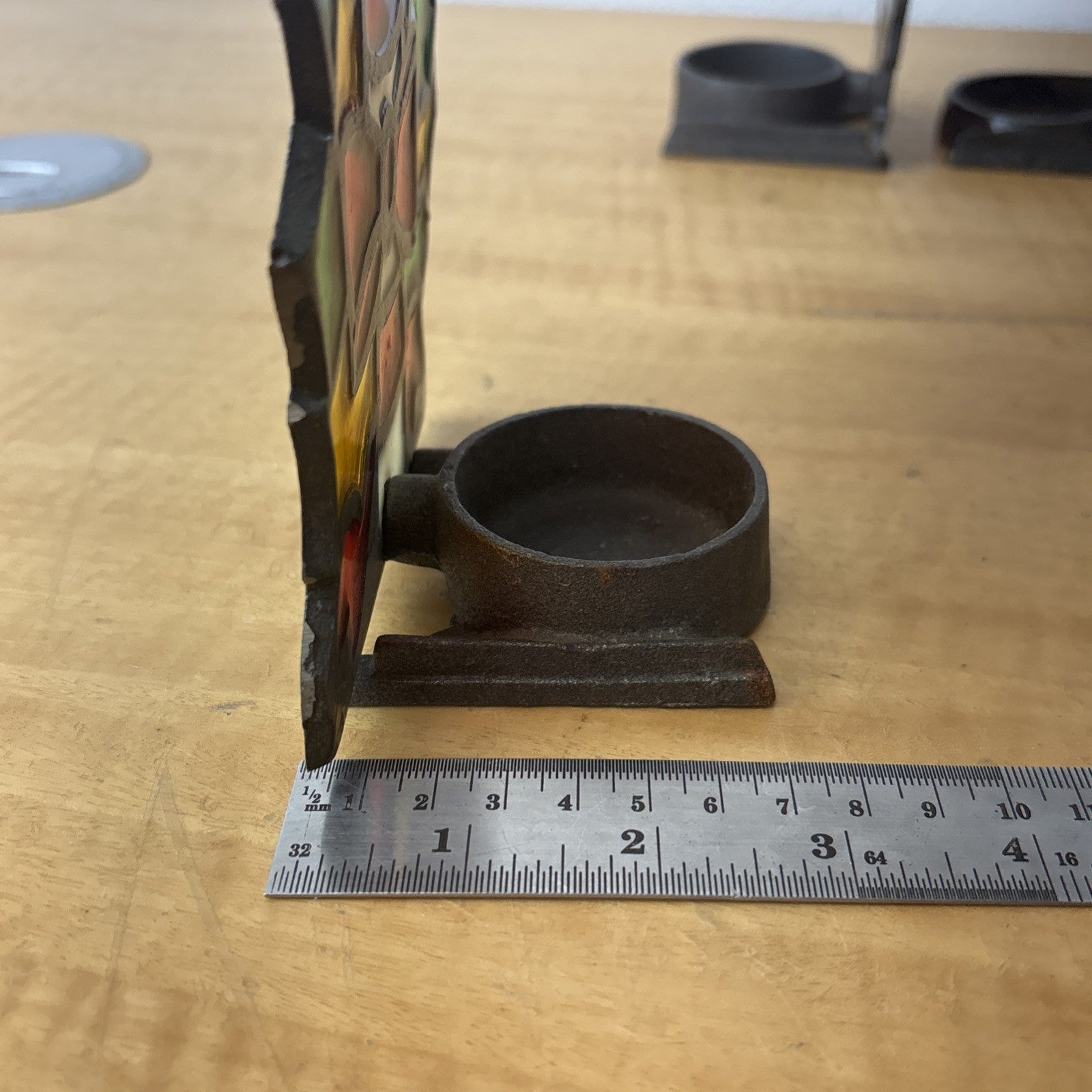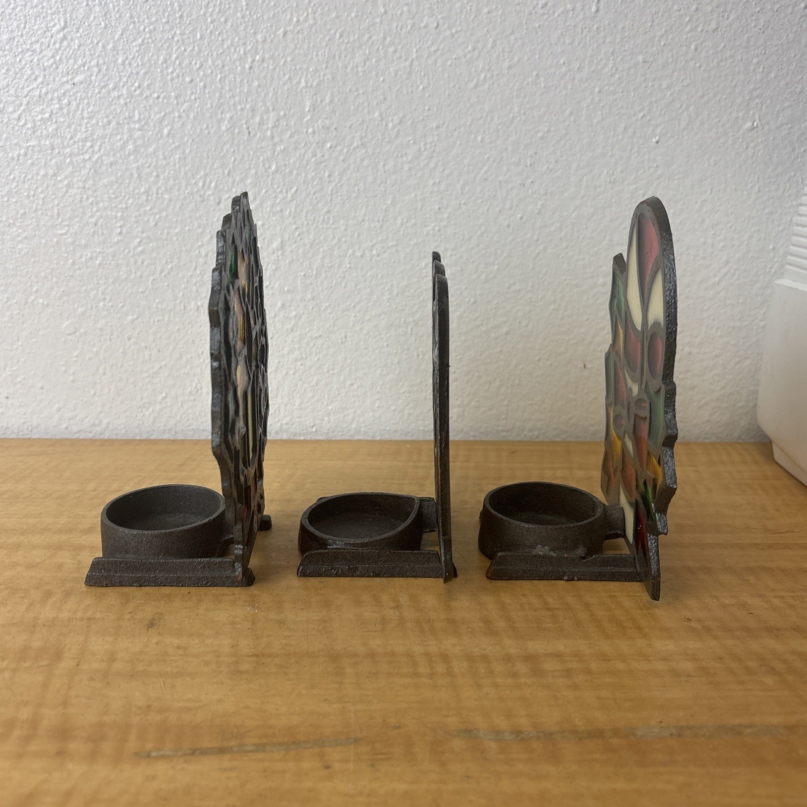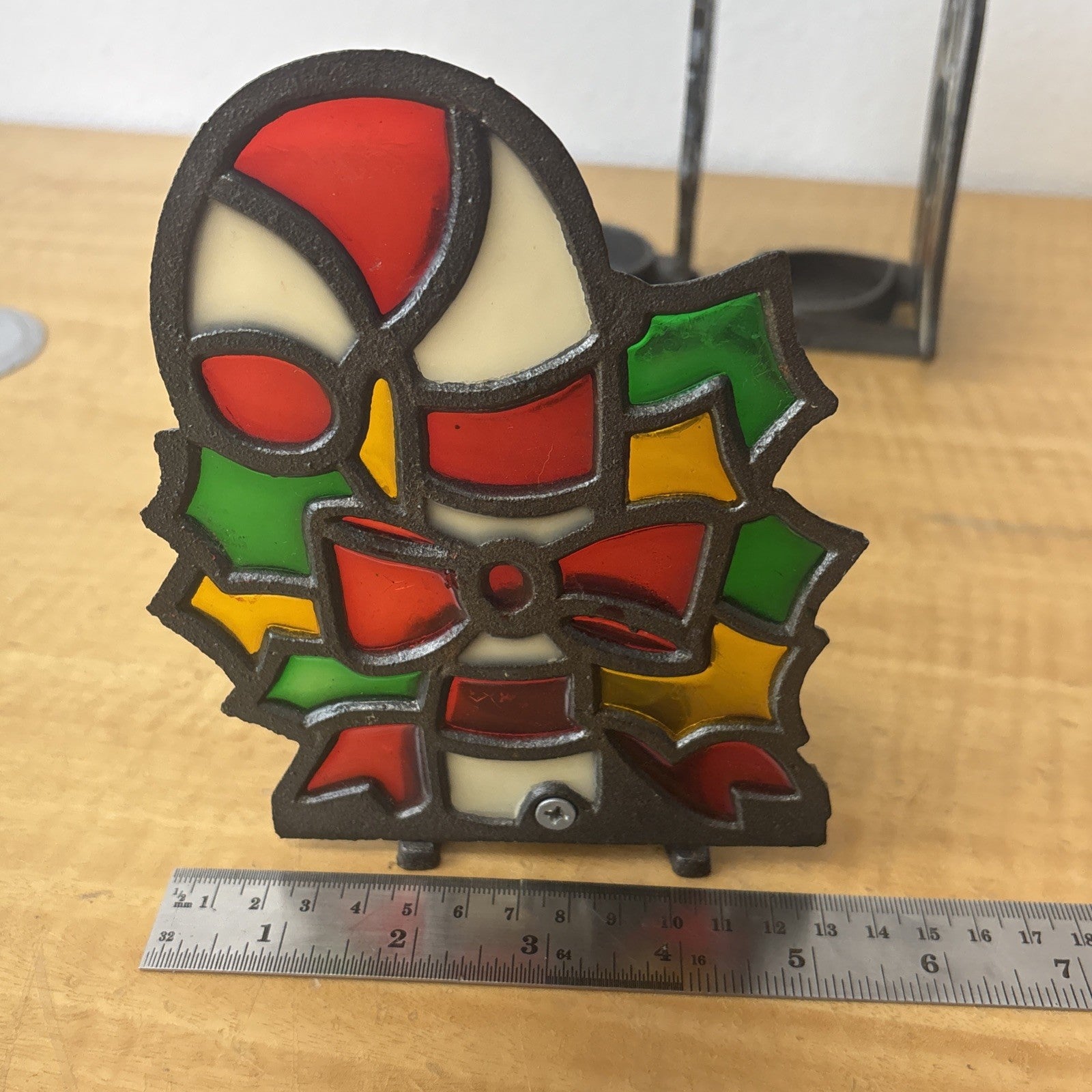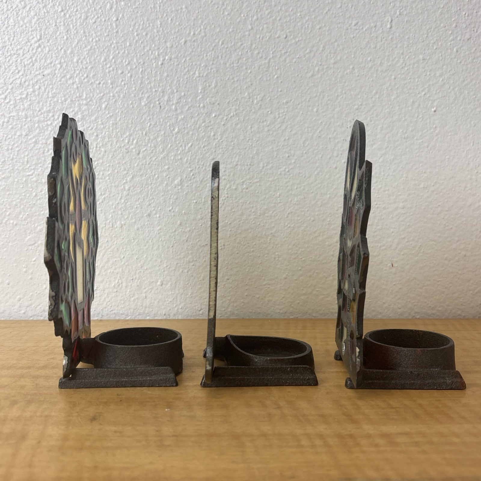 Vintage Cast Iron Stained Glass Christmas Candy Cane, Angel, & Wreath Tea Light