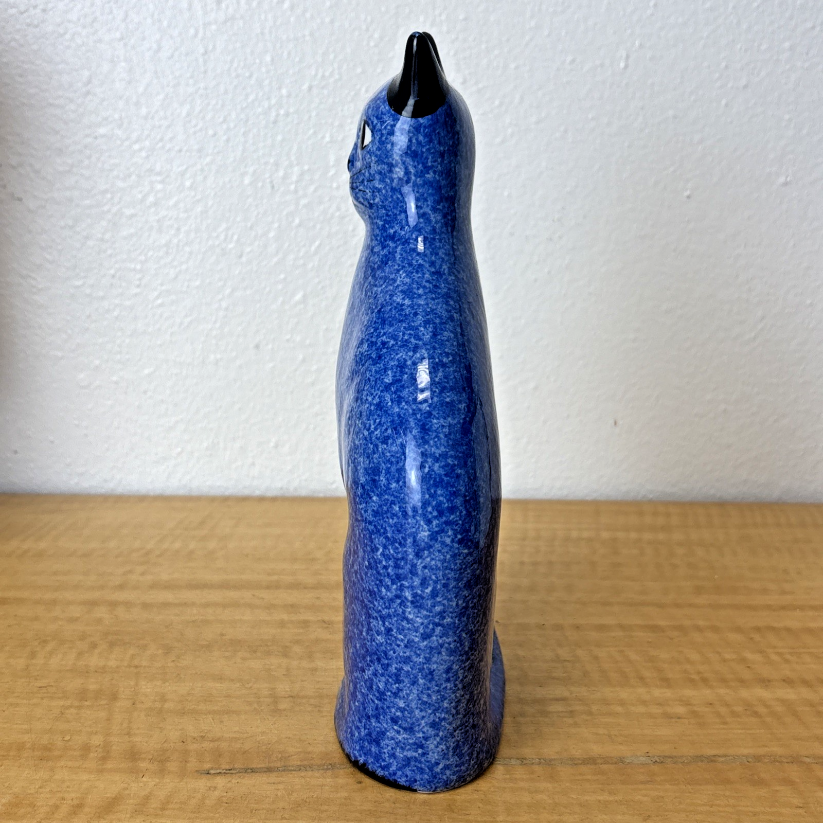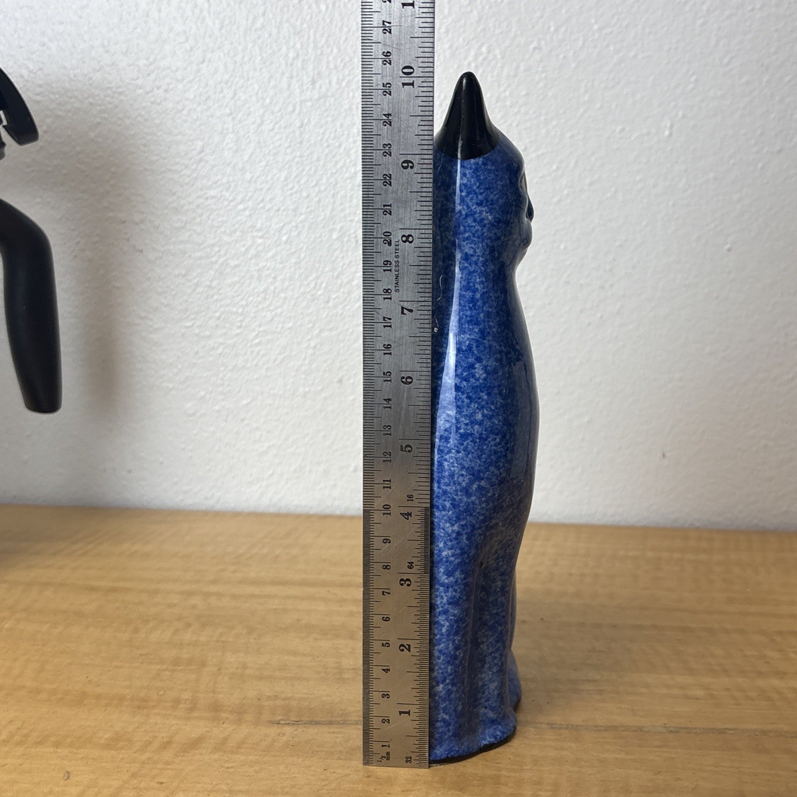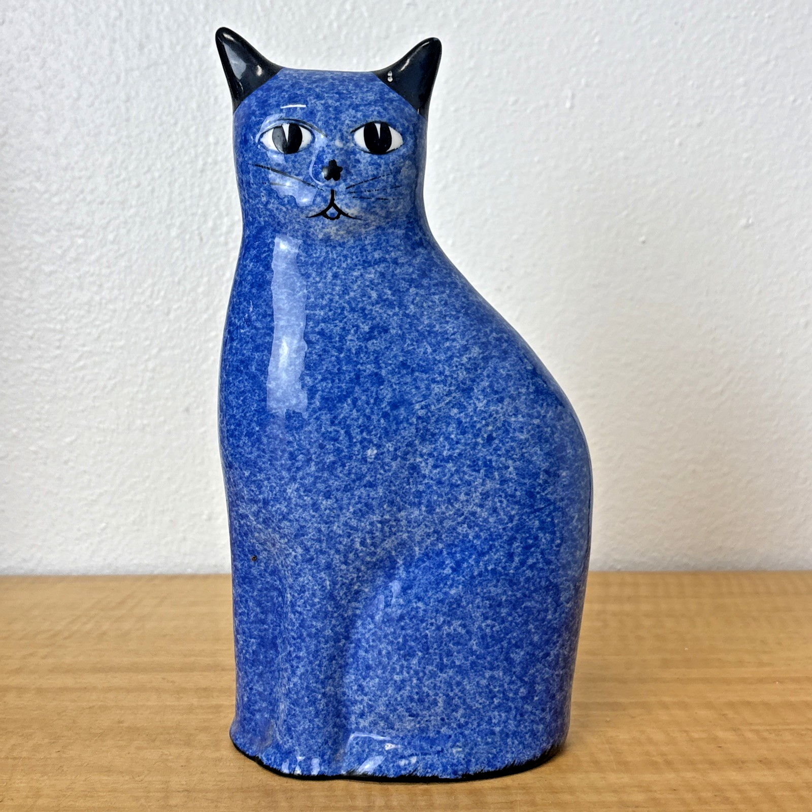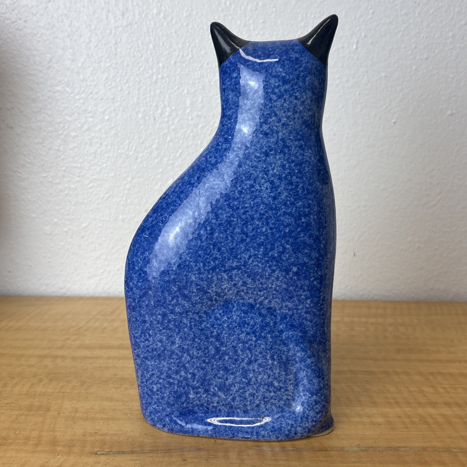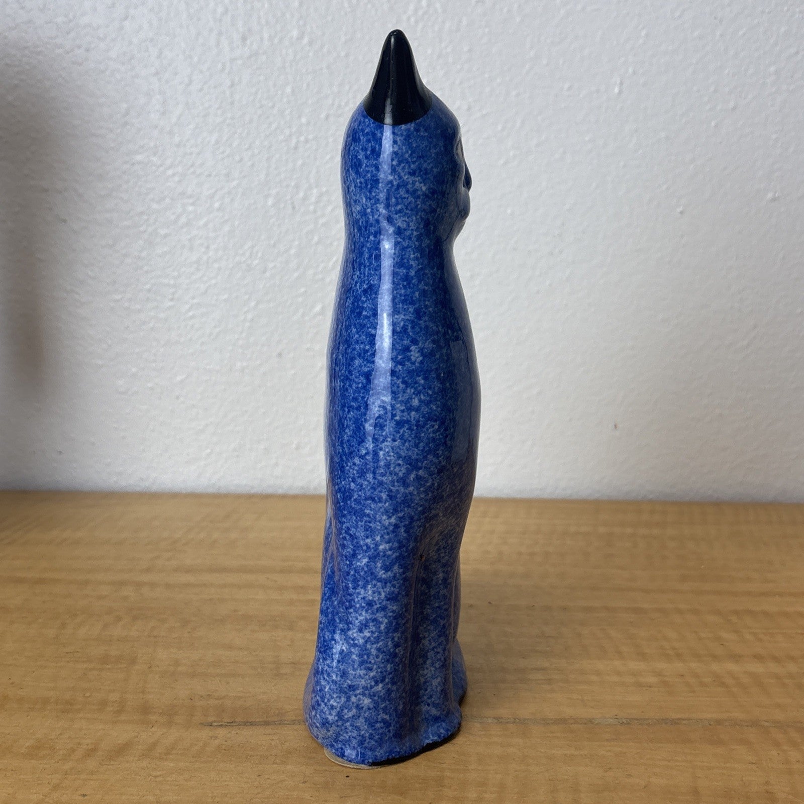 Vintage Ceramic Speckled Blue Cat Spongeware Calico China Figurine