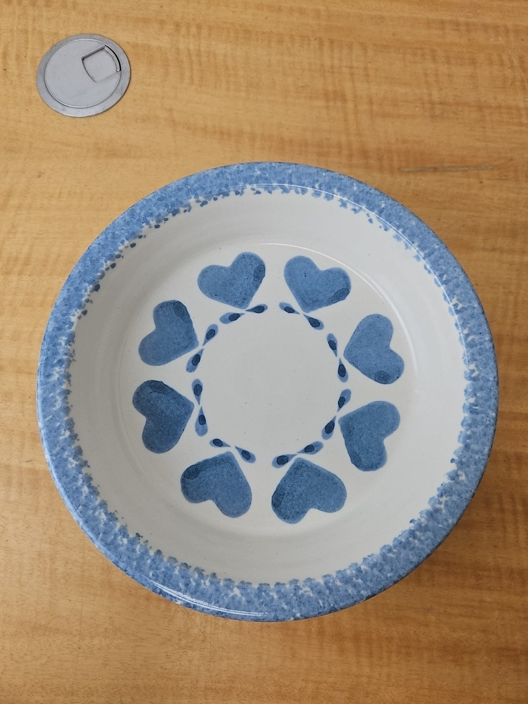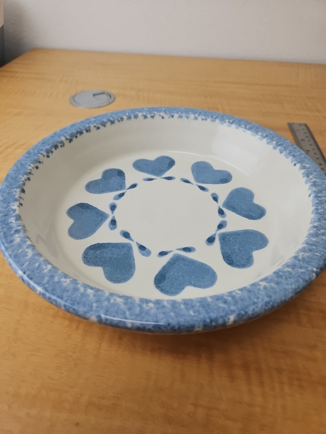 Vintage Chaparral Stoneware 10.5" Pie Blue Hearts Pottery 10 1/4"