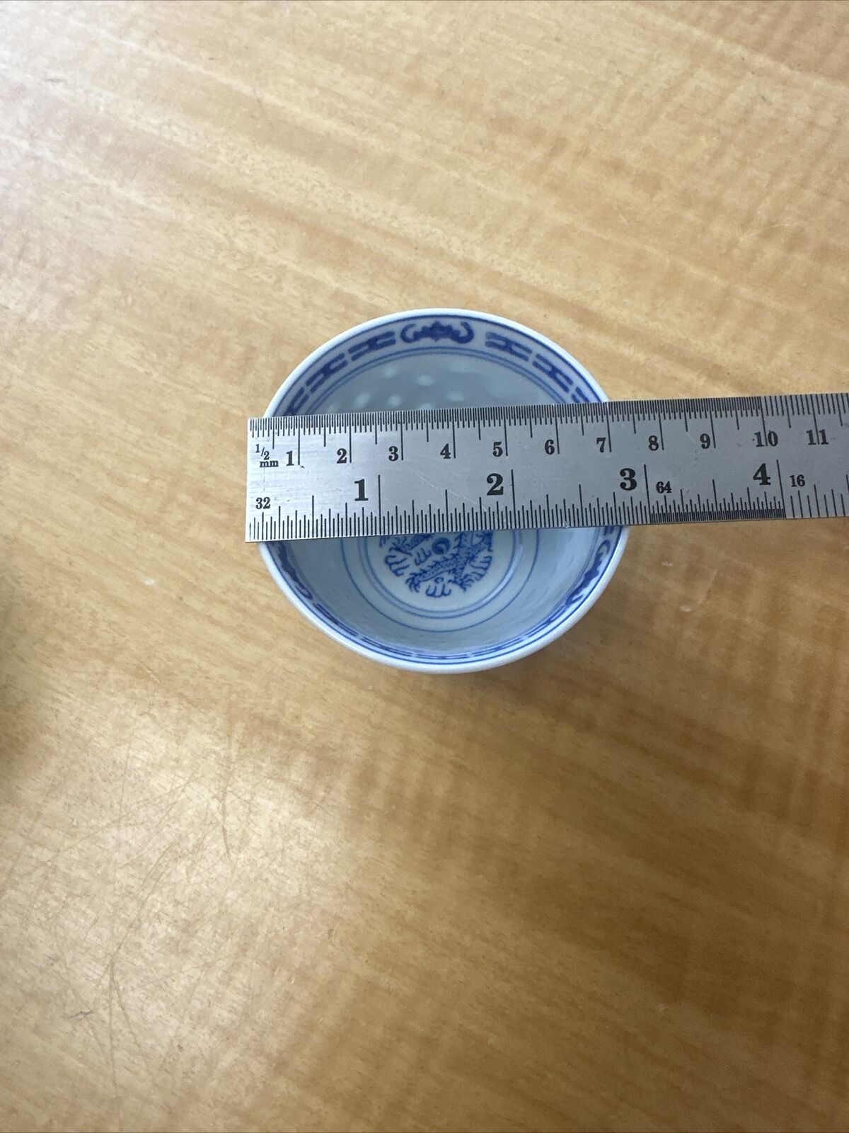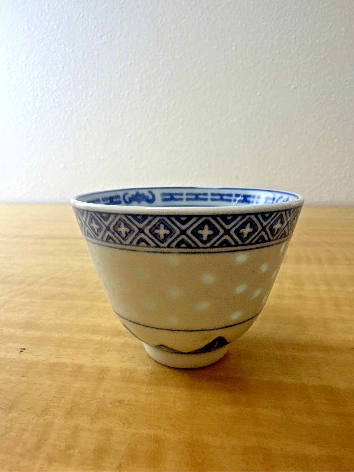 Vintage Chinese Rice Eyes Tea/Sake Cups 1 Each Rice Grain 2.5” Tall Blue White