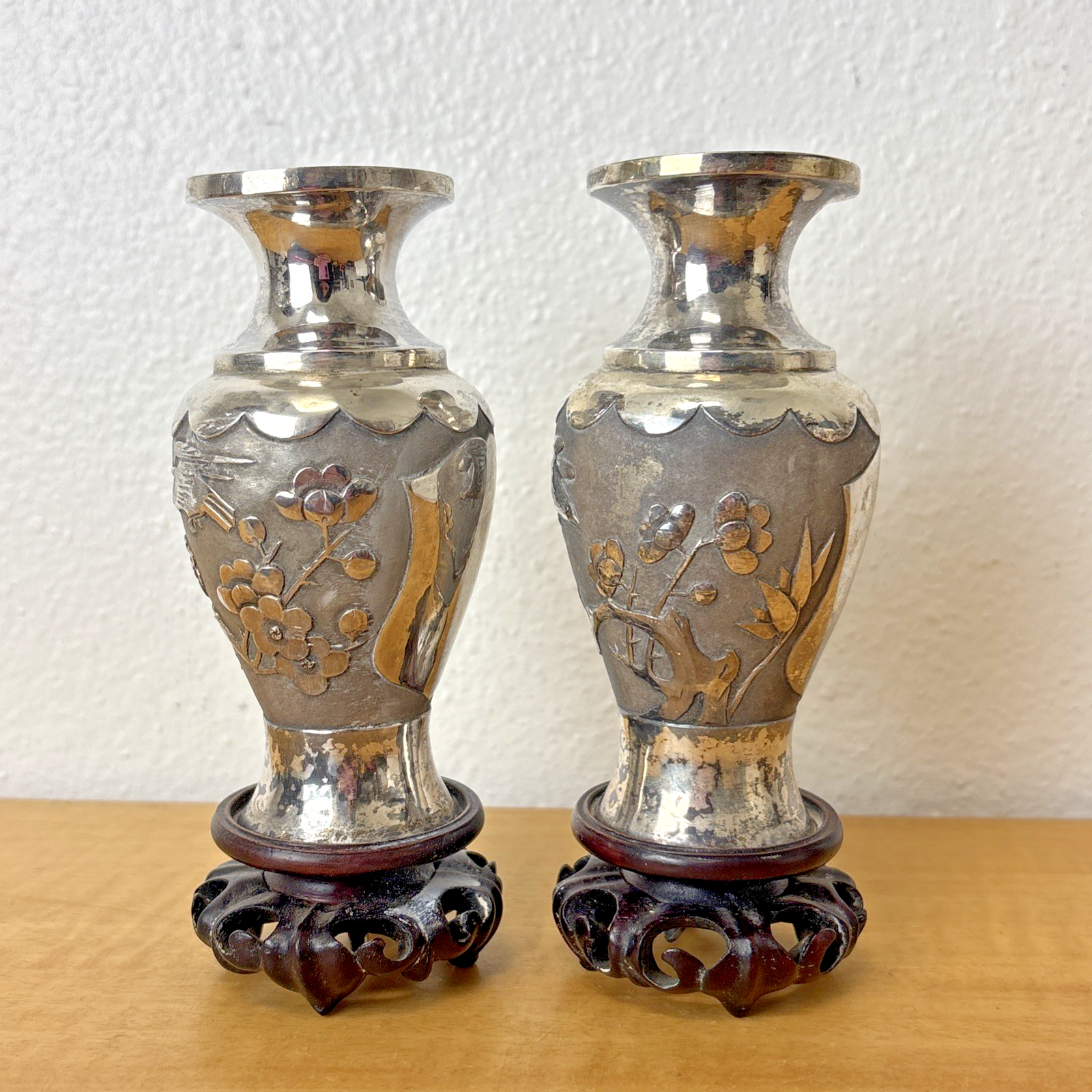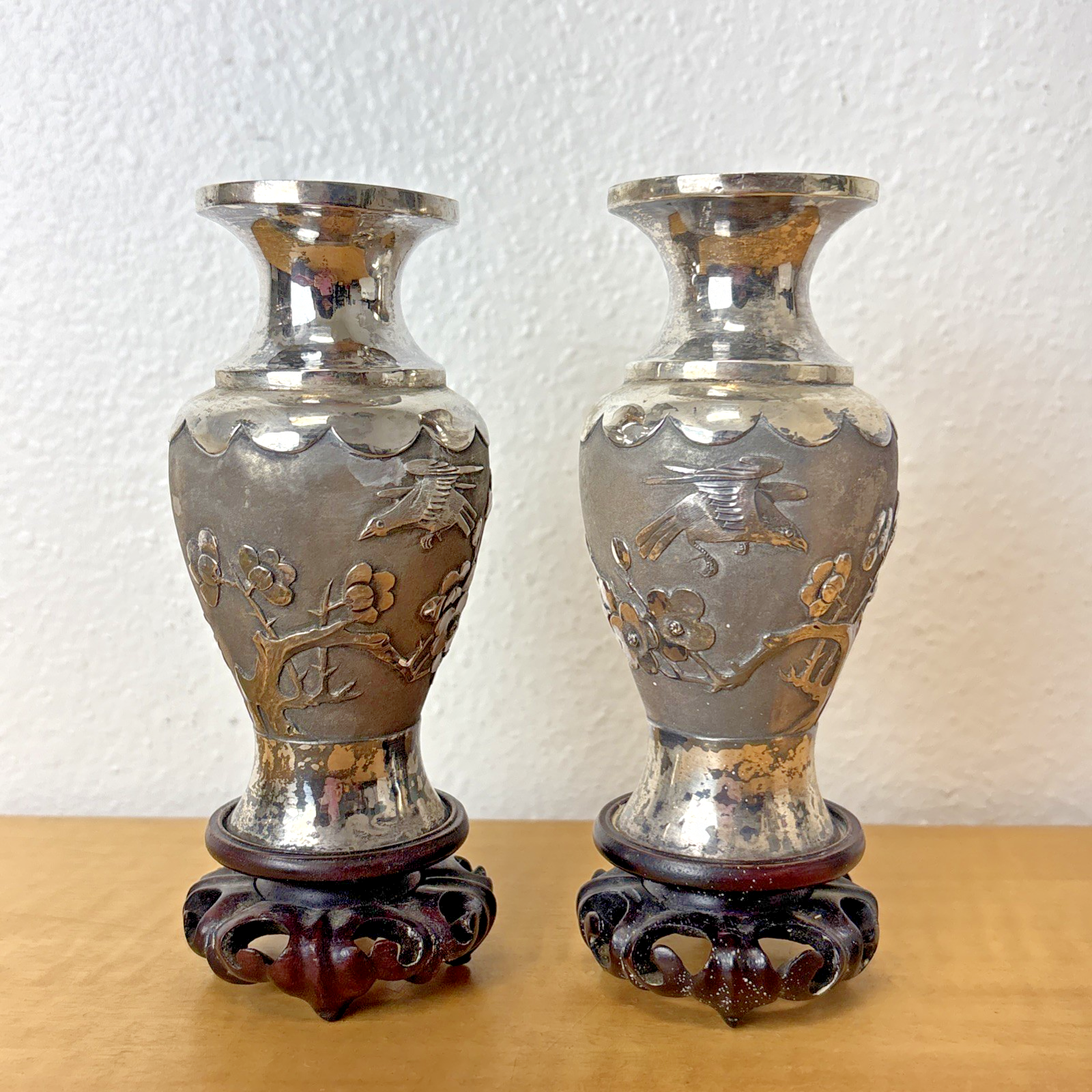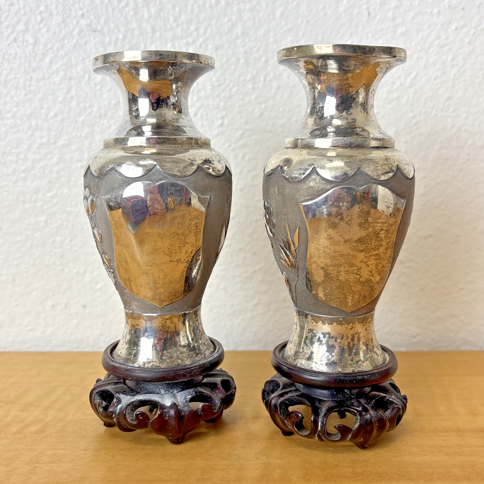 Vintage Chinese Silver Vase Set of 2 ( Possibly Sterling )