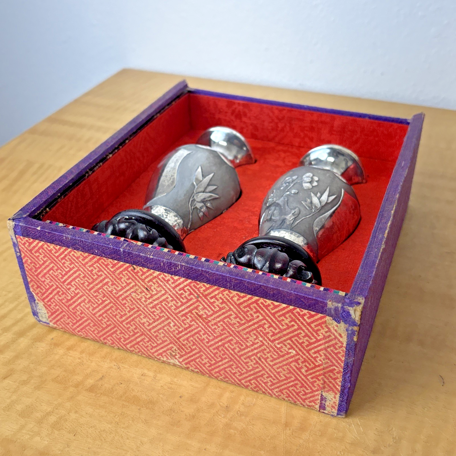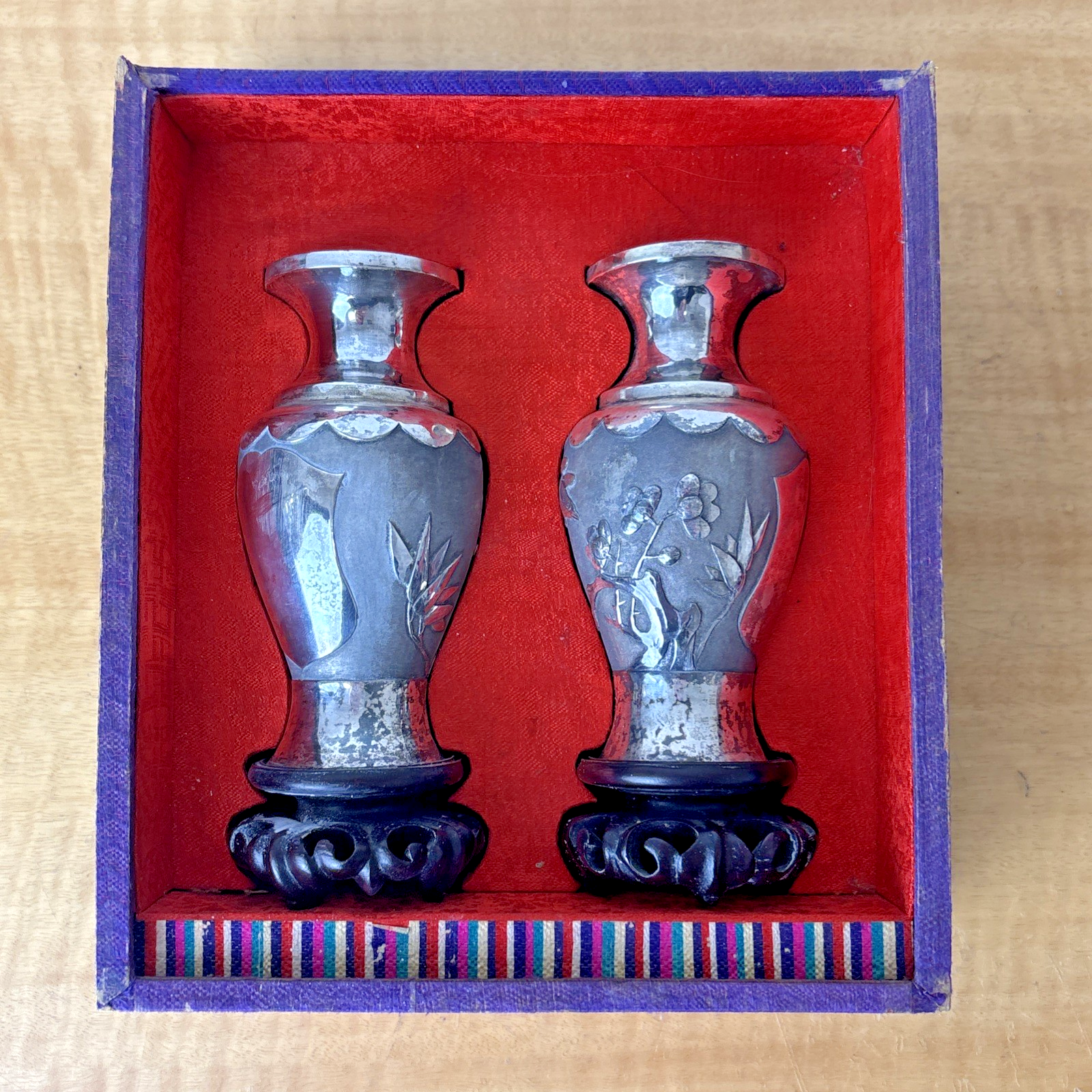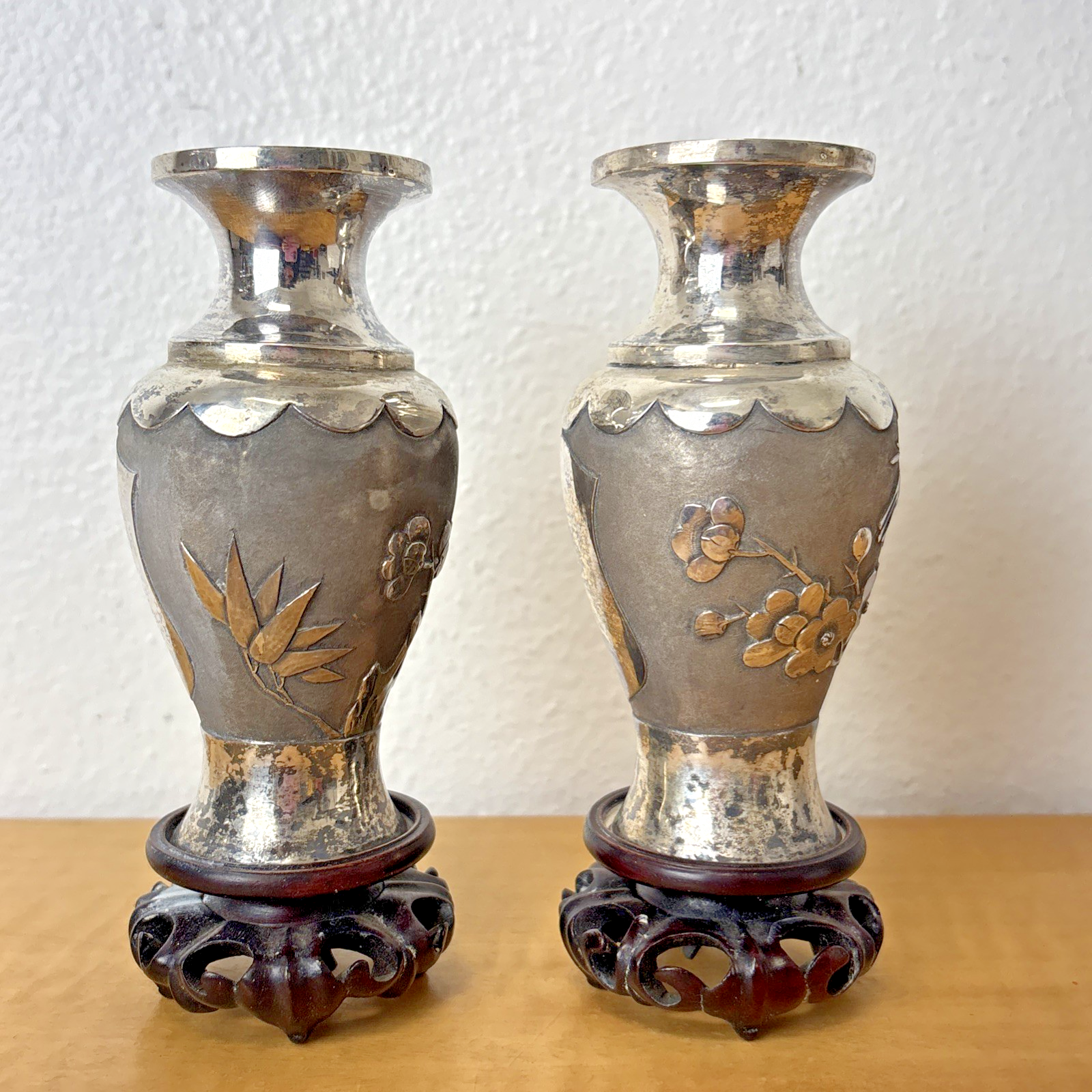 Vintage Chinese Silver Vase Set of 2 ( Possibly Sterling )