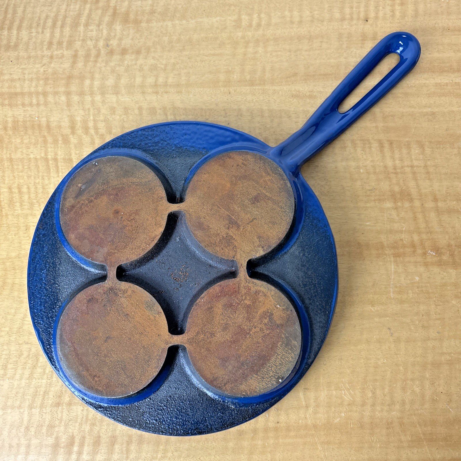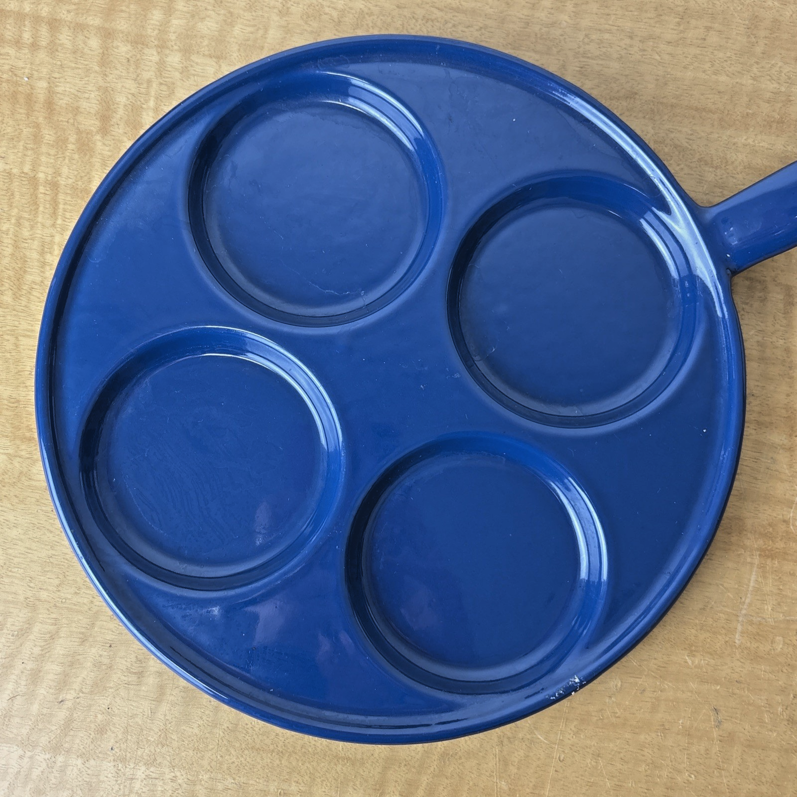 Vintage Copco Denmark Blue Enamelware Griddle Plett Pan Egg Pancakes Skillet