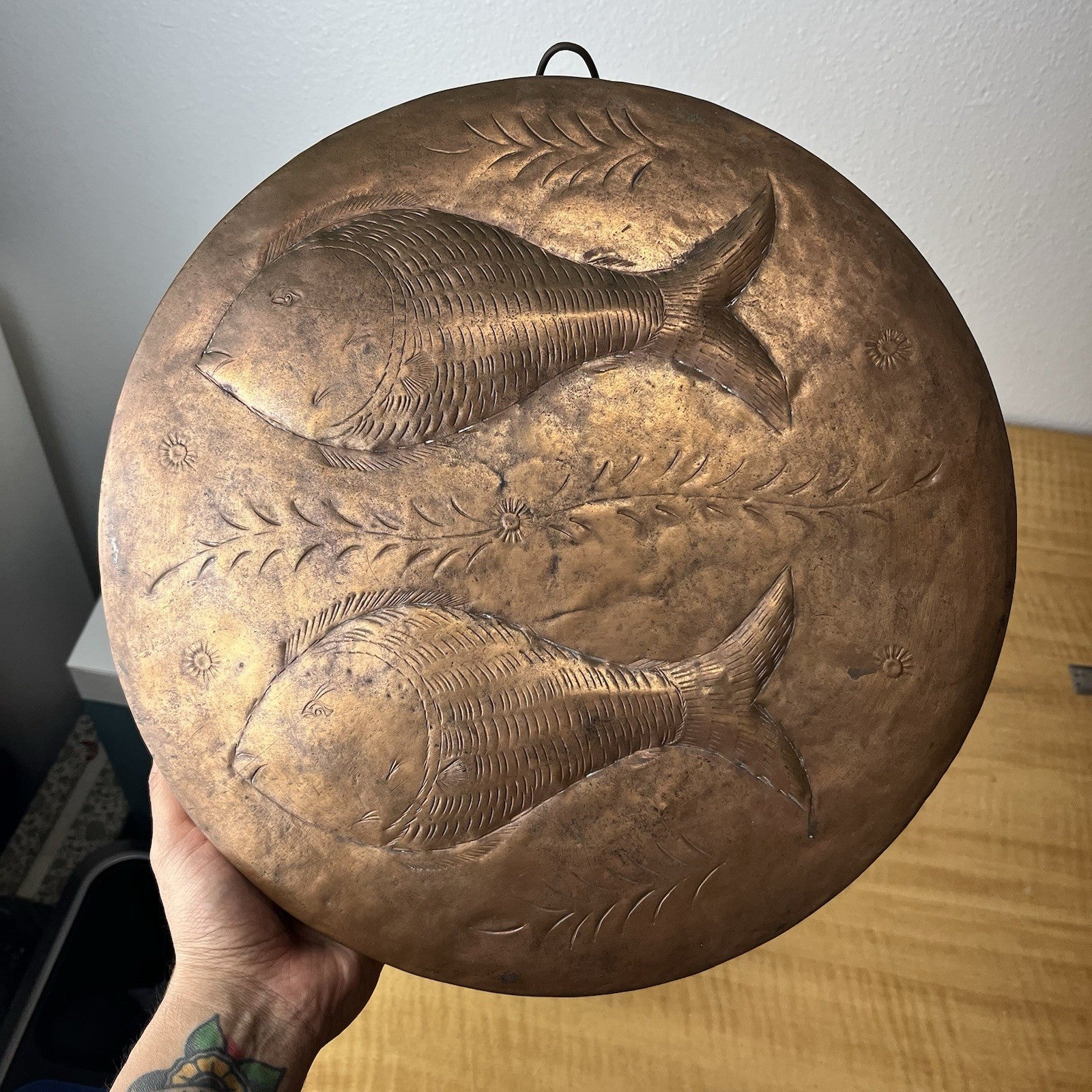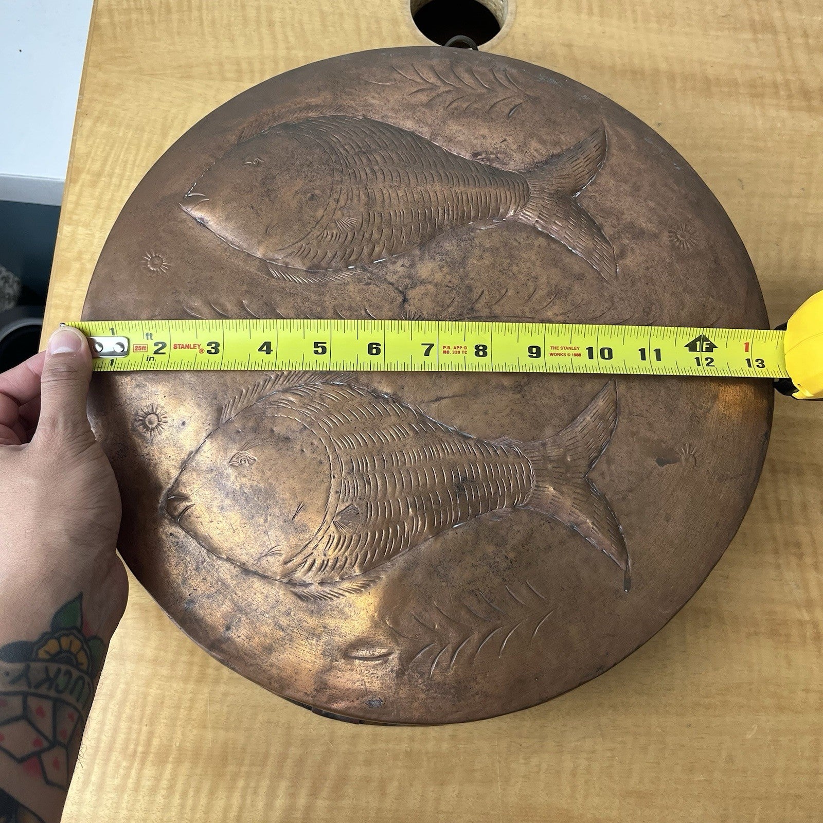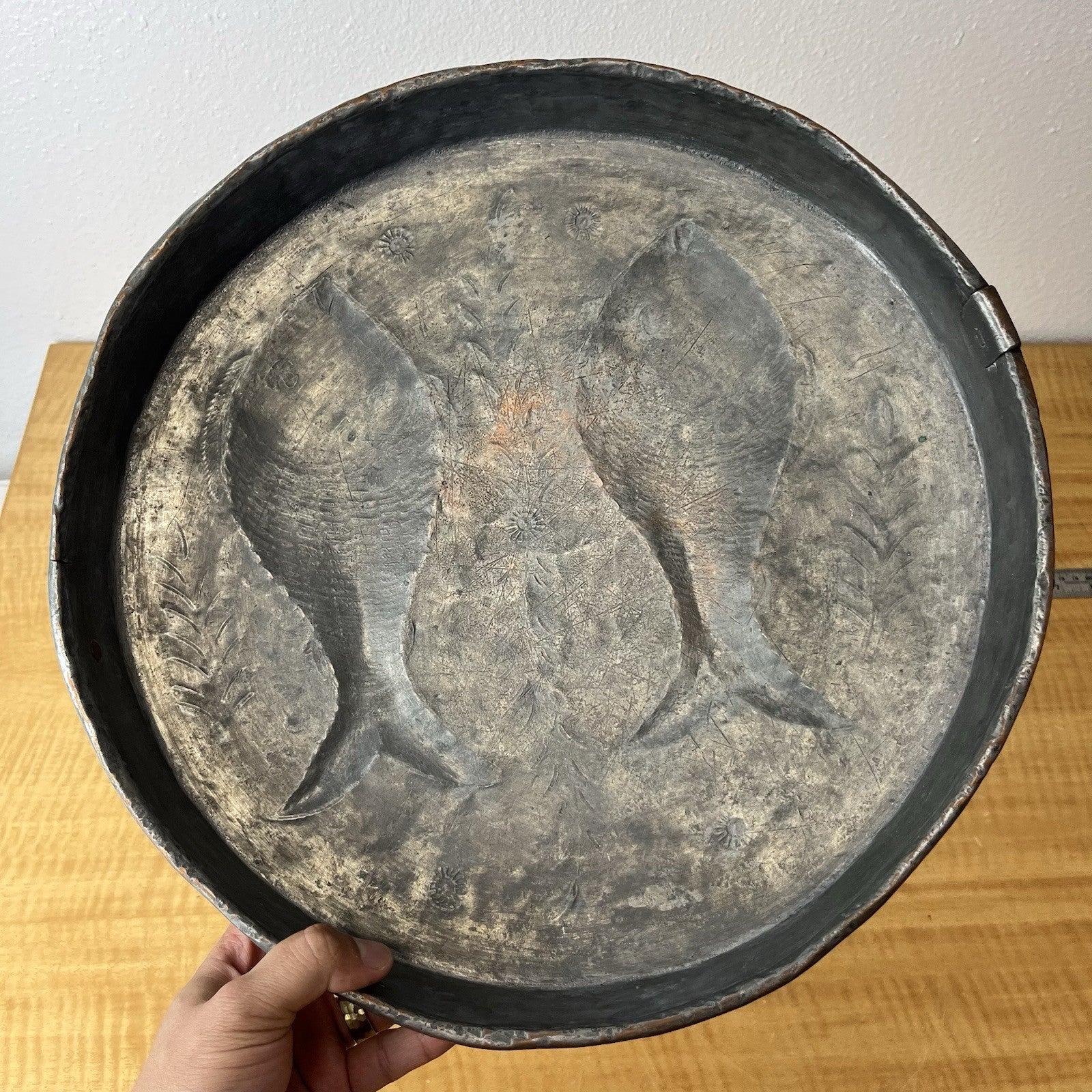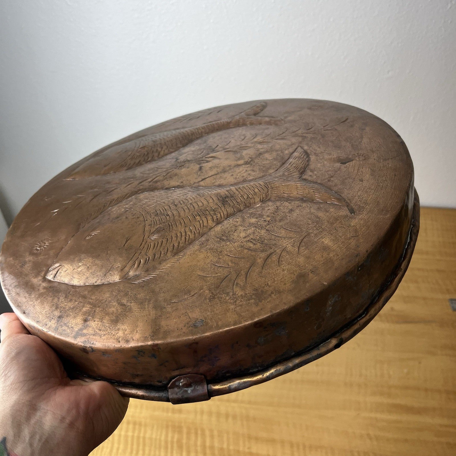 Vintage Copper Fish Mold Pan Round Terrine Pastry Pudding Gelatin Zinc Lining