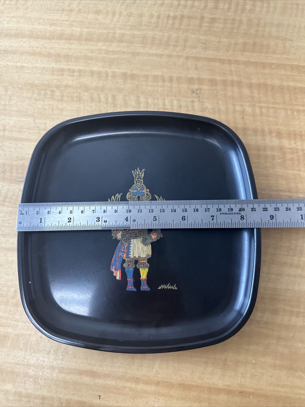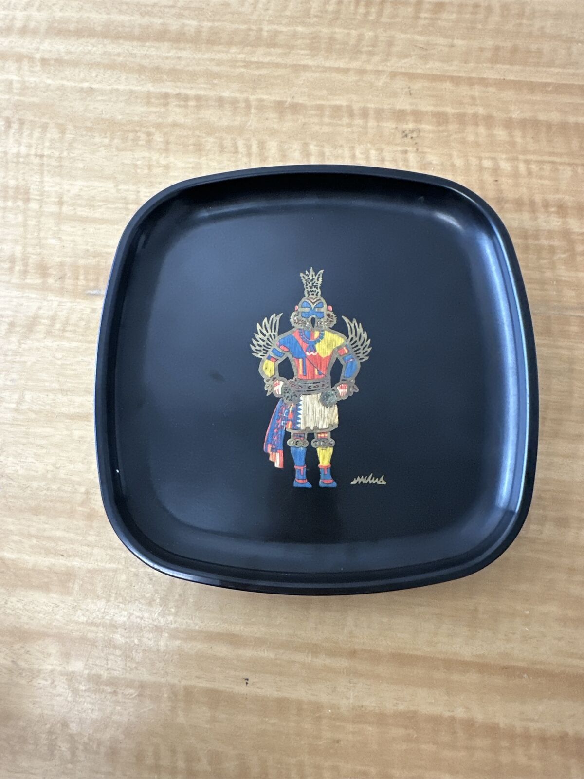 Vintage Couroc Serving 8 1/2" Square Plate With Hummingbird Kachina Arizona