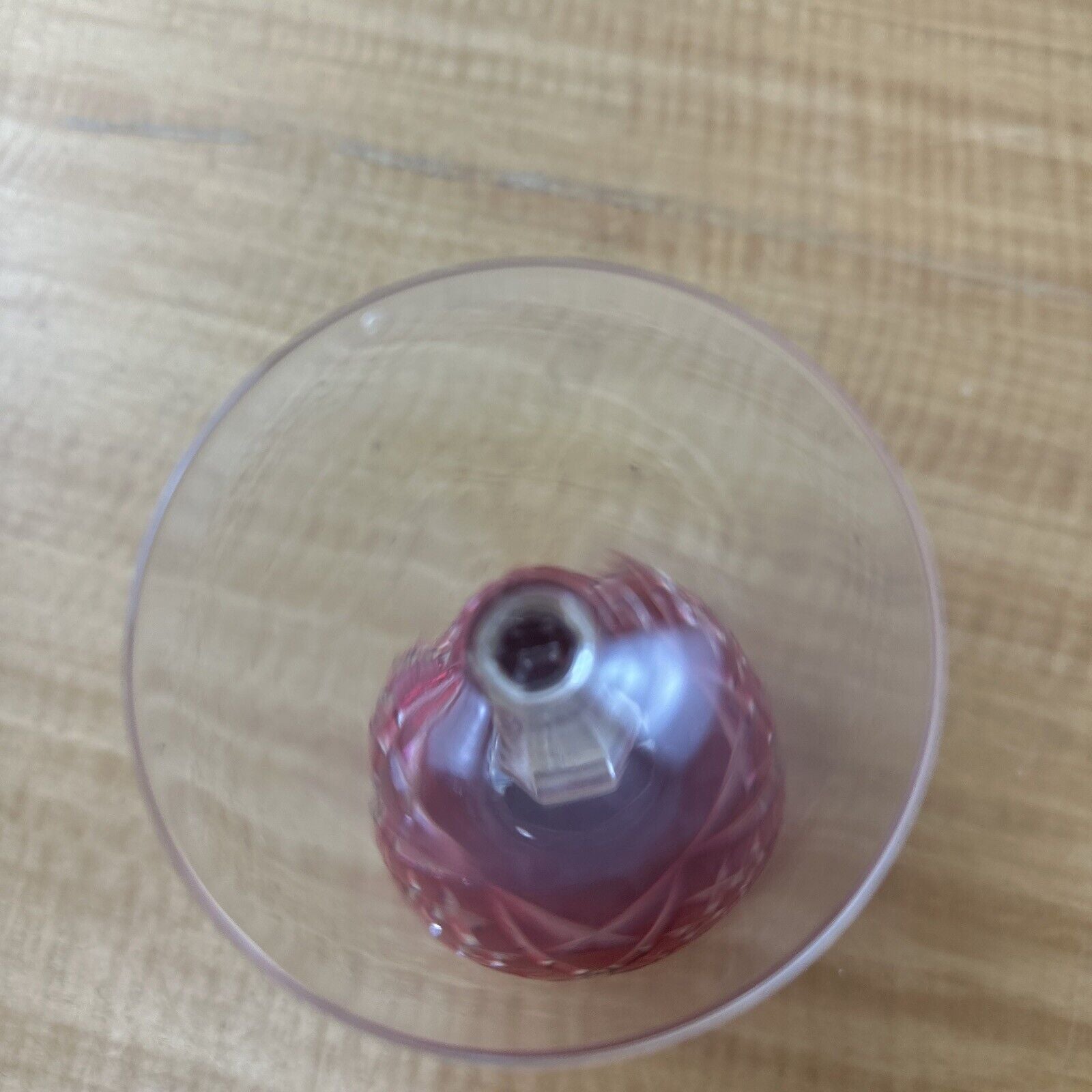 Vintage CRANBERRY RED PINK Wine Glass Goblet Hock Cut-To-Clear