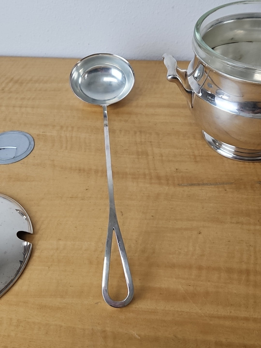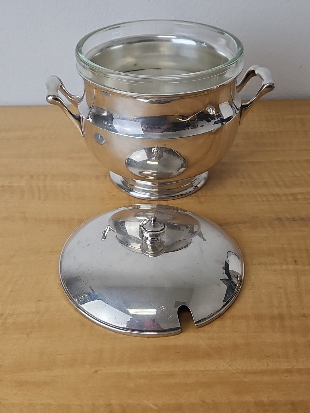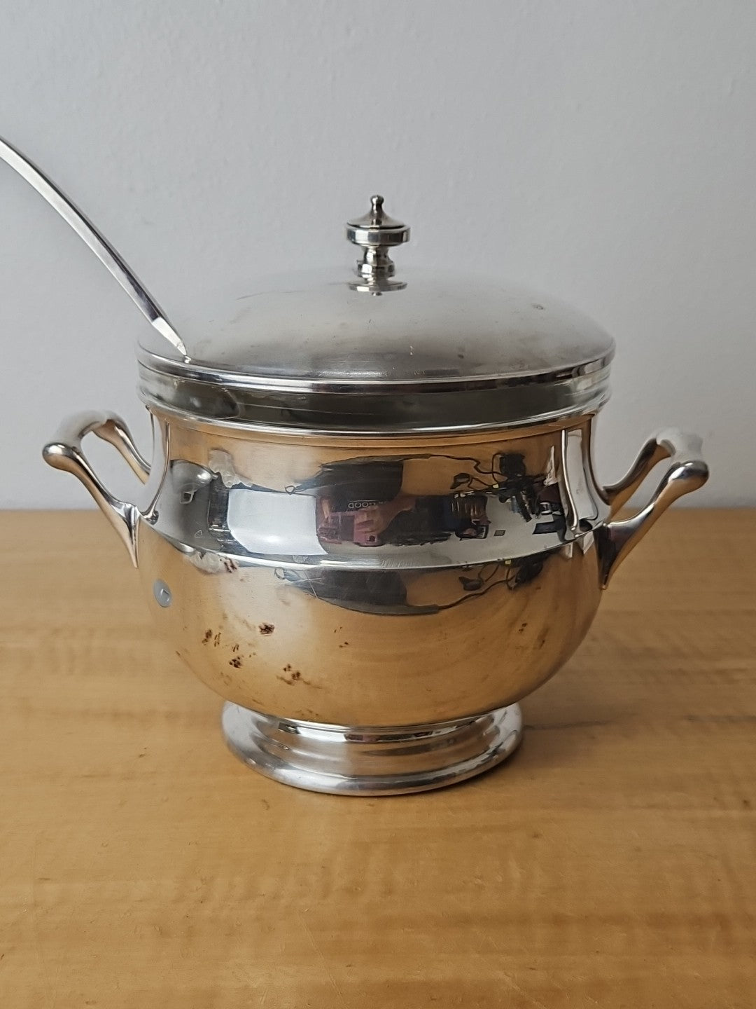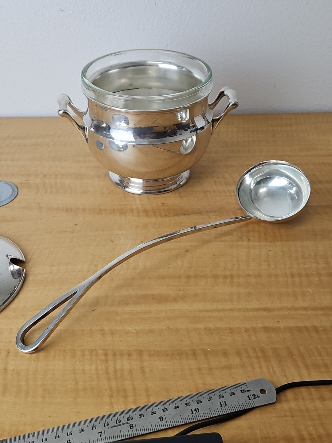 Vintage Crescent Silver Ware Silverplate Soup Tureen with PYREX insert and ladle