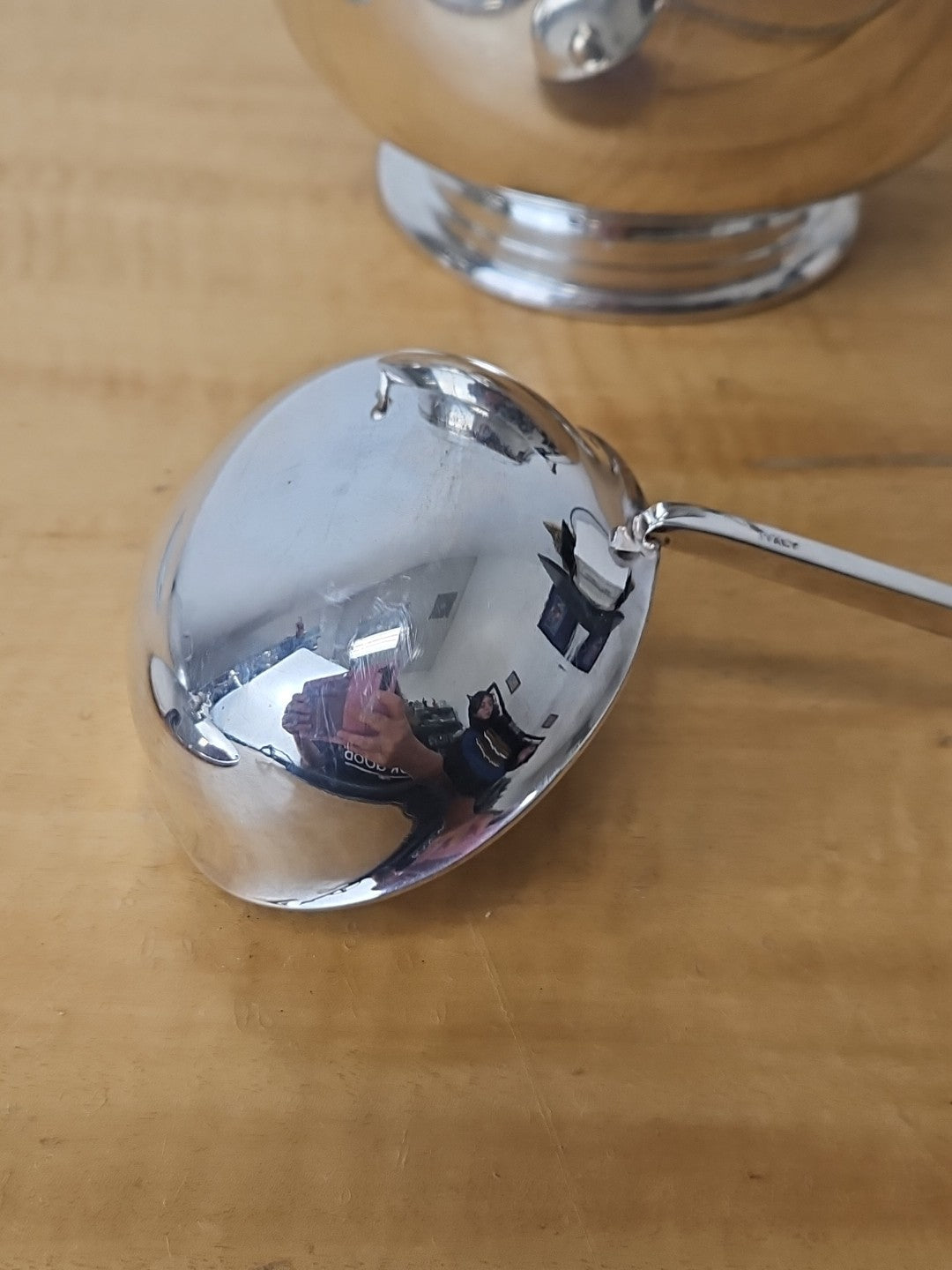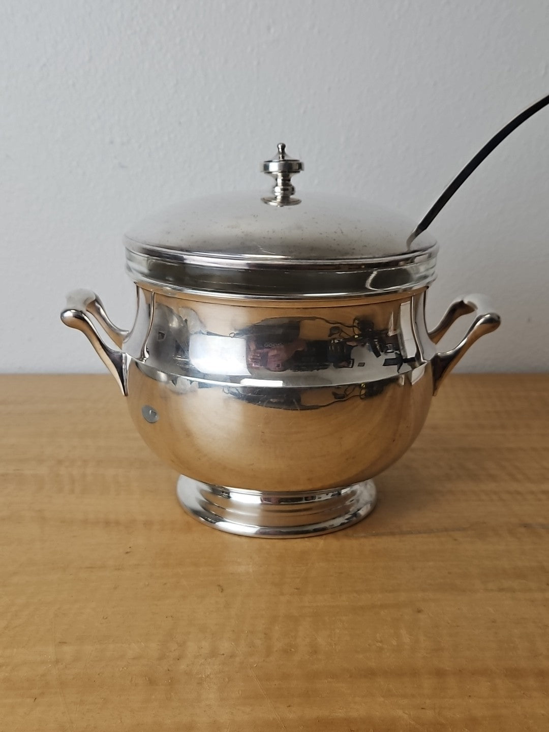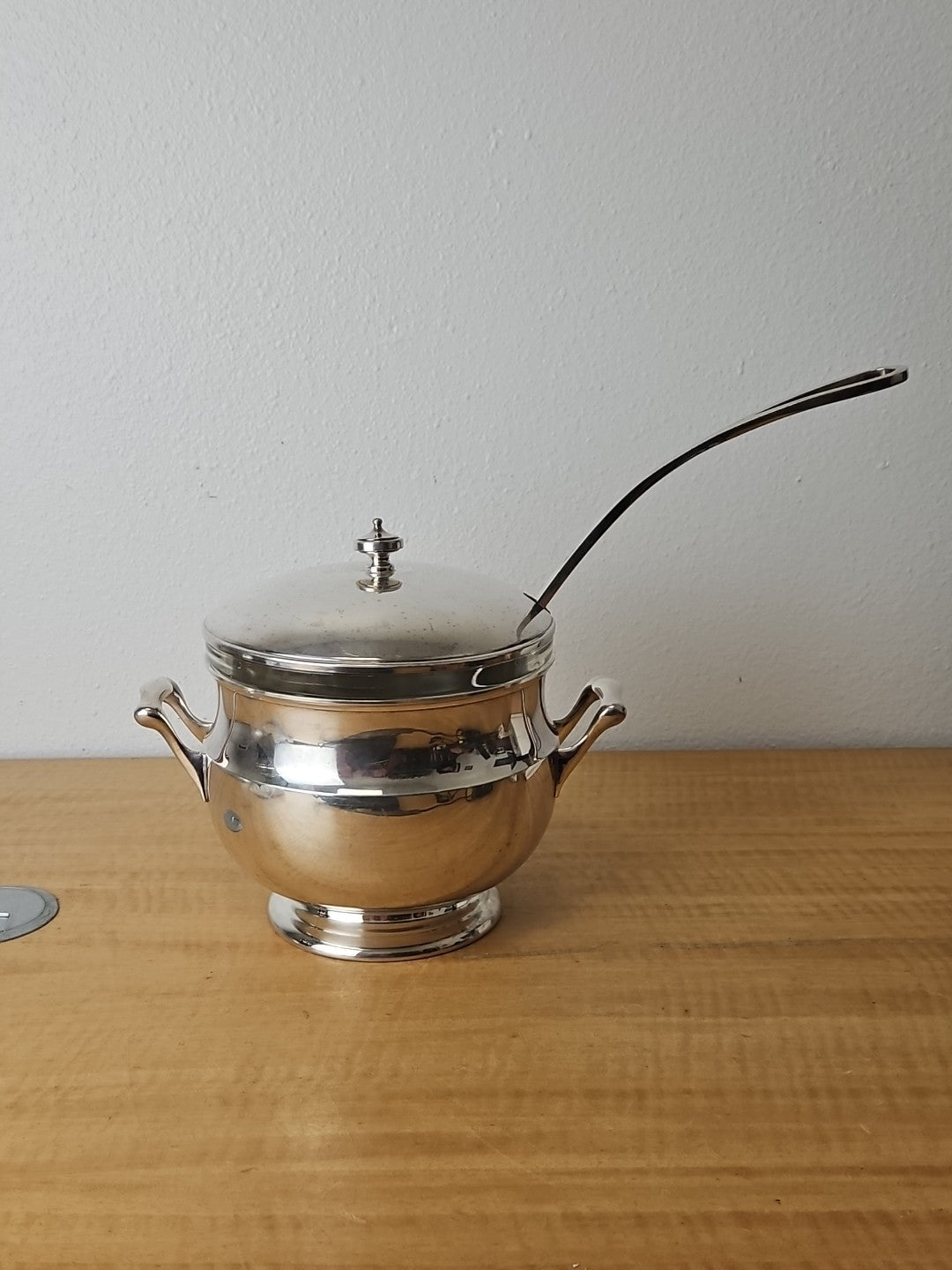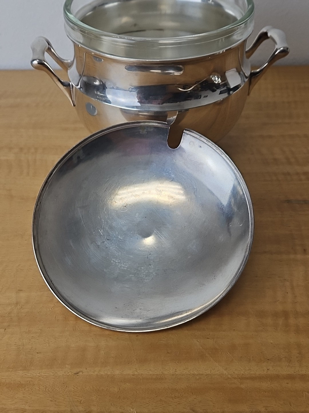 Vintage Crescent Silver Ware Silverplate Soup Tureen with PYREX insert and ladle