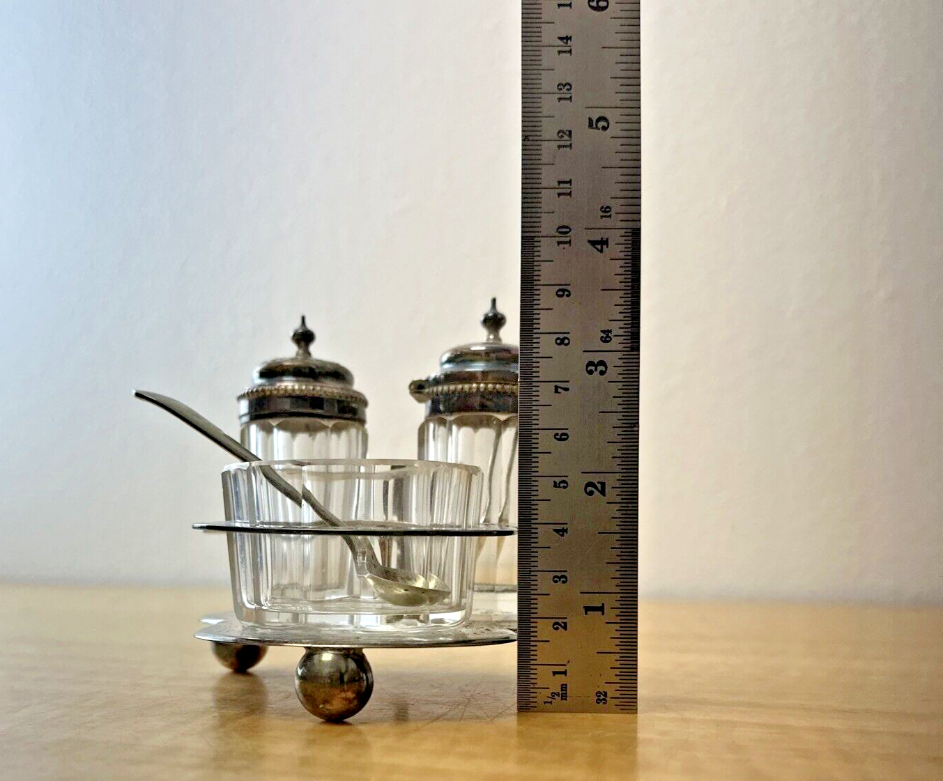 Vintage Cruet Set Salt Pepper Mustard Glass Silver Plated