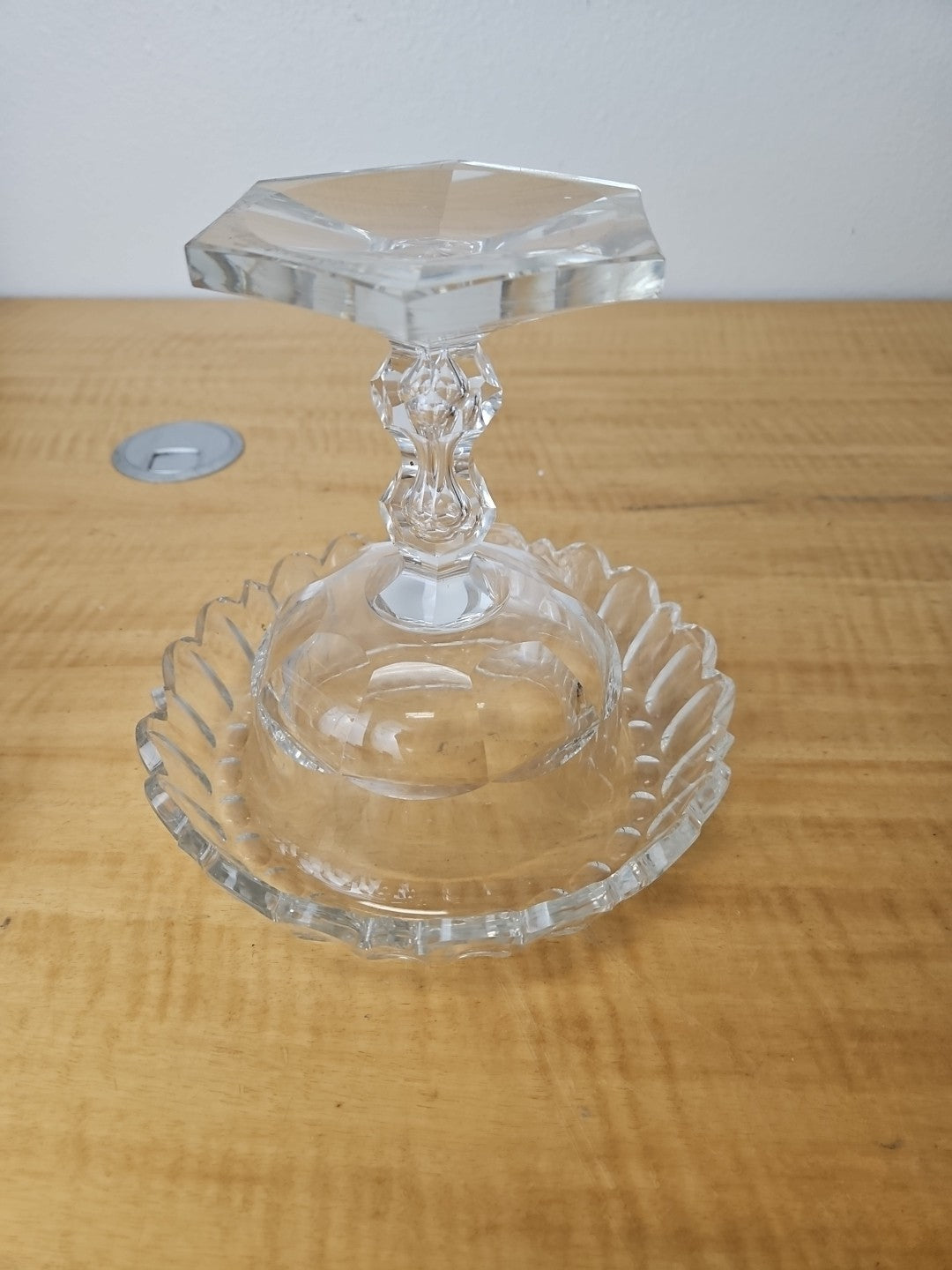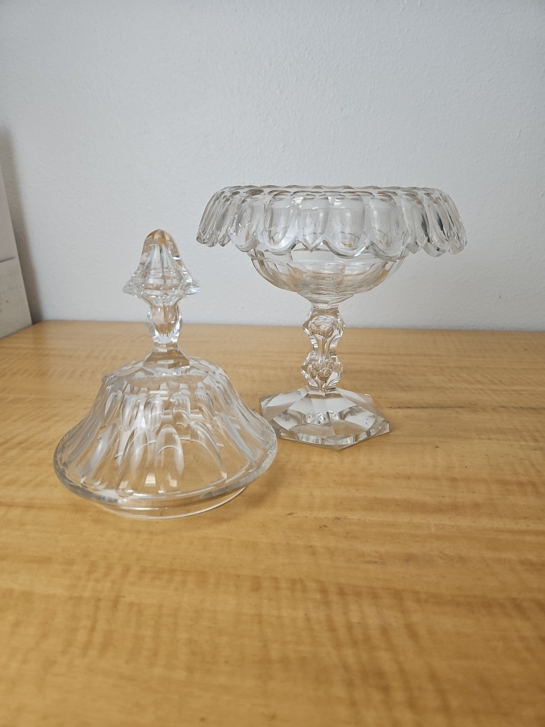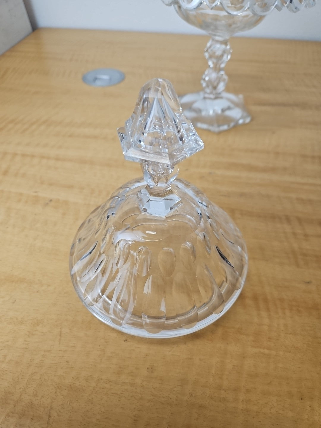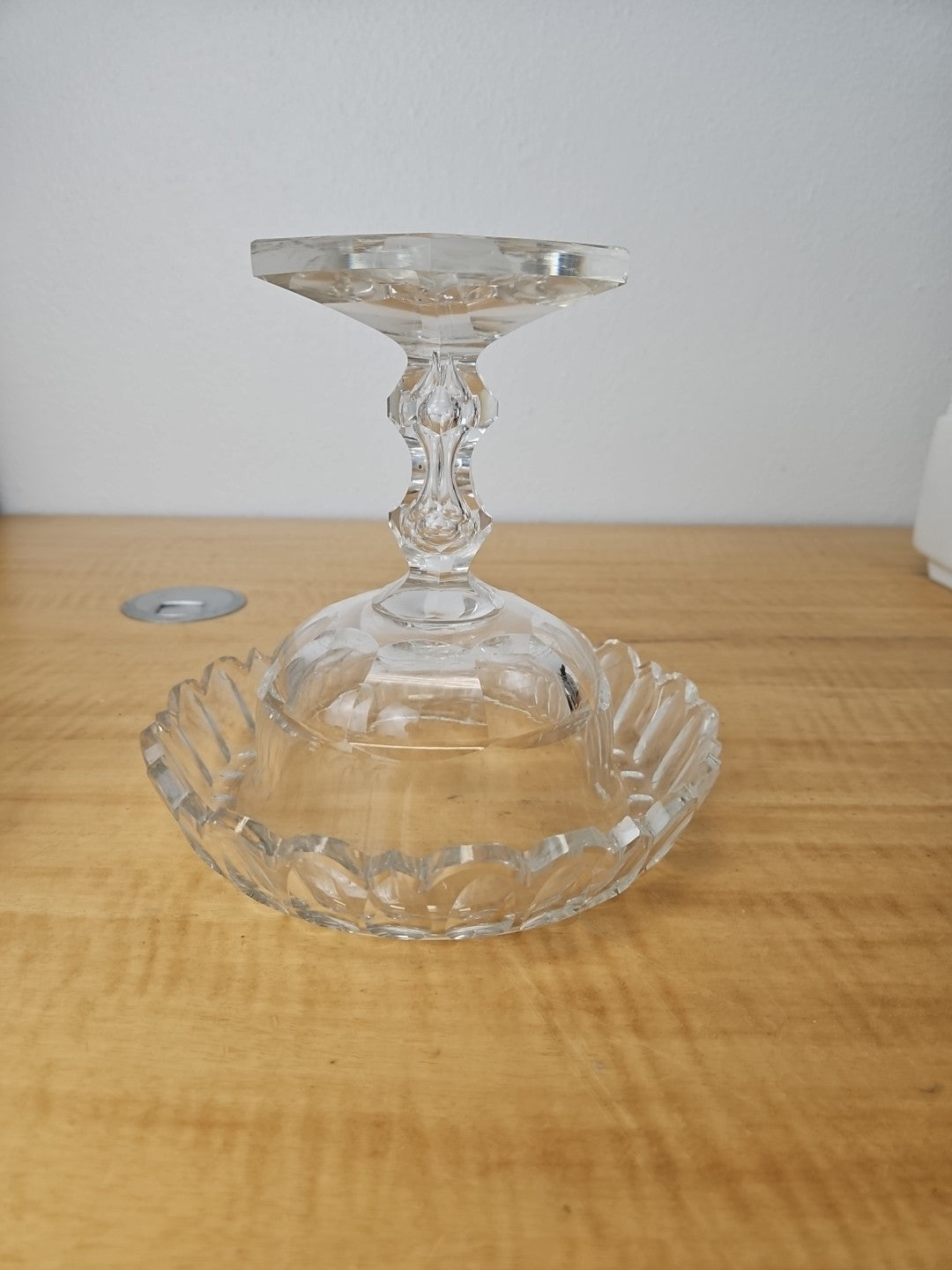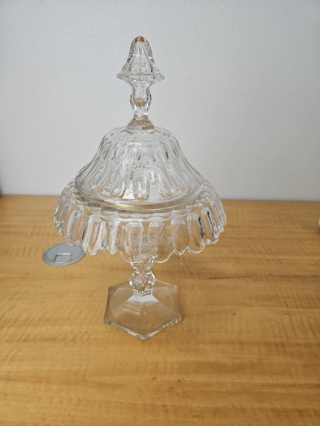 Vintage Crystal covered pedestal Dish Bowl; scalloped, turned-over rim 12 1/2"h