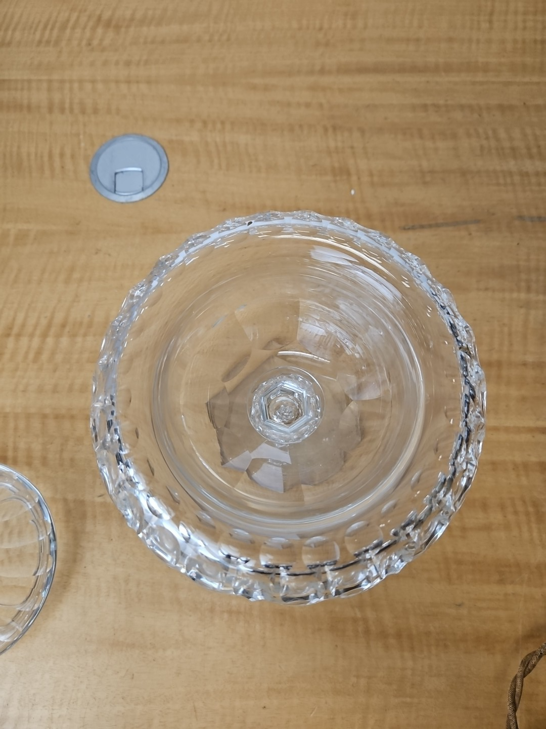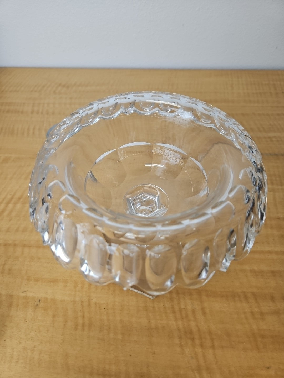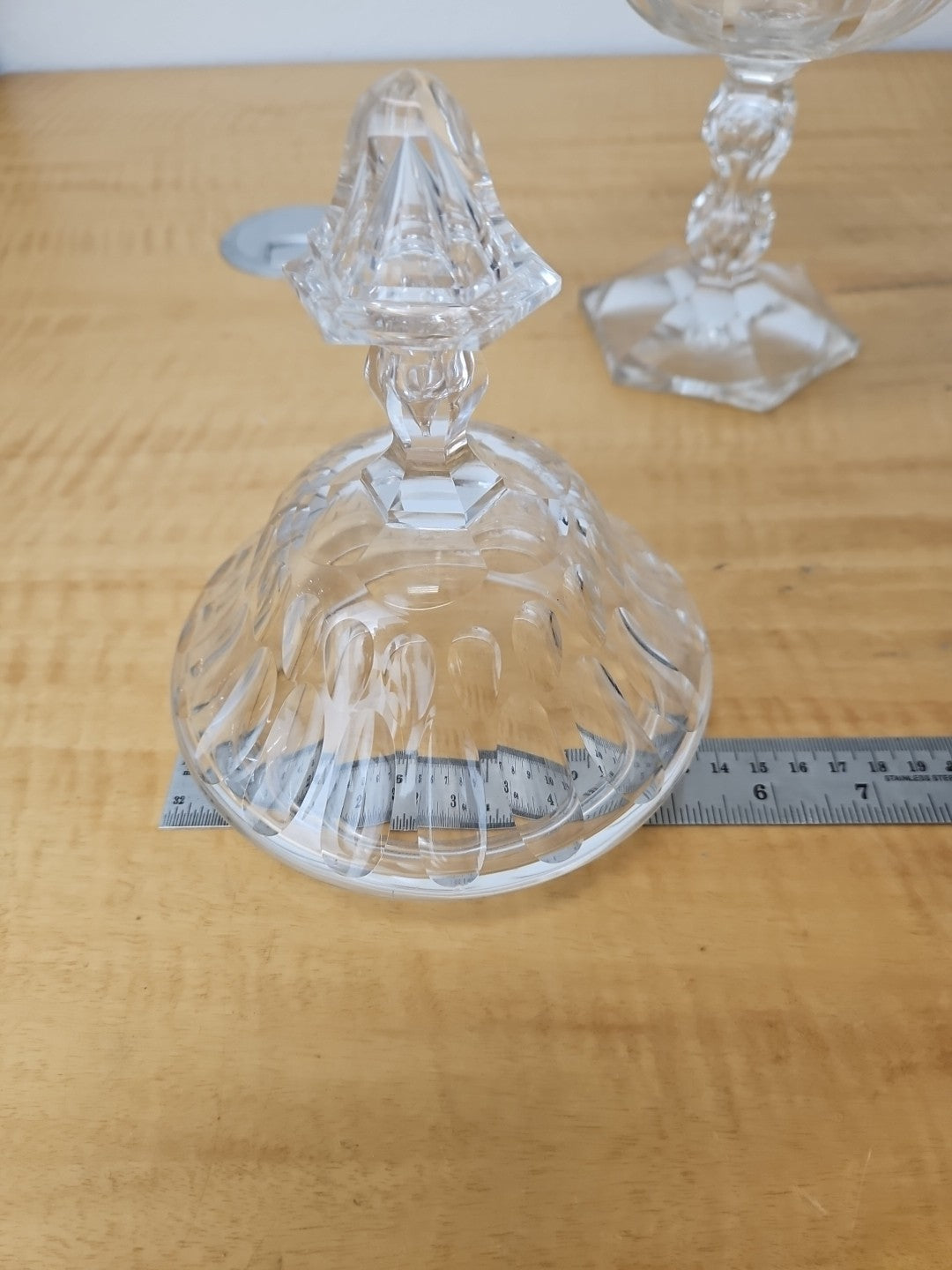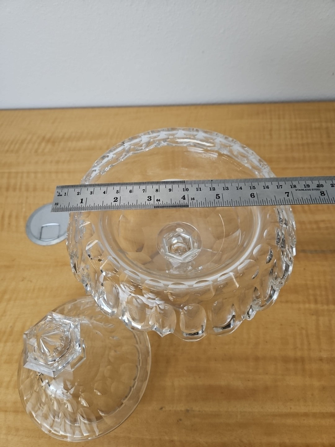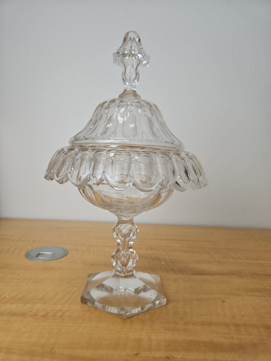 Vintage Crystal covered pedestal Dish Bowl; scalloped, turned-over rim 12 1/2"h