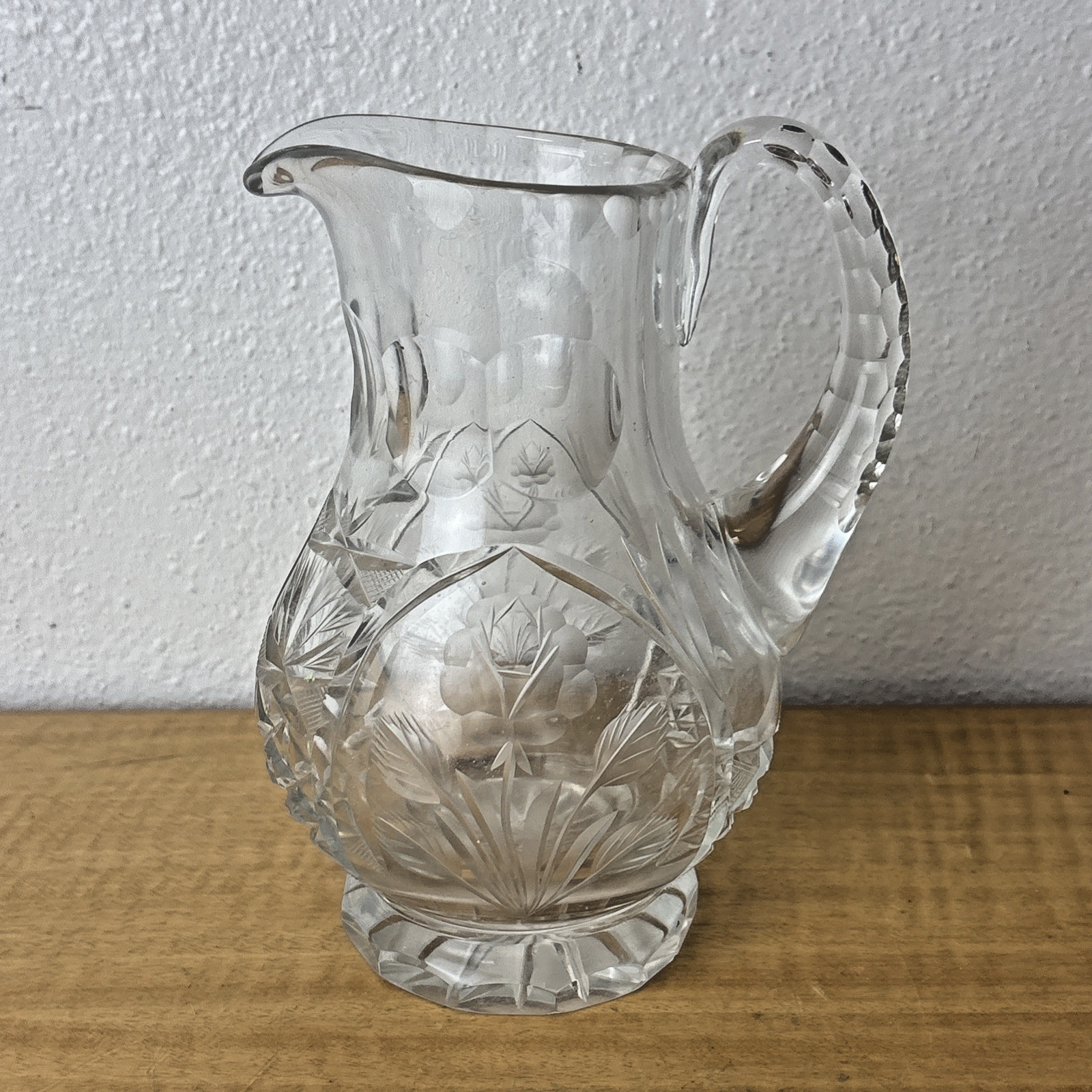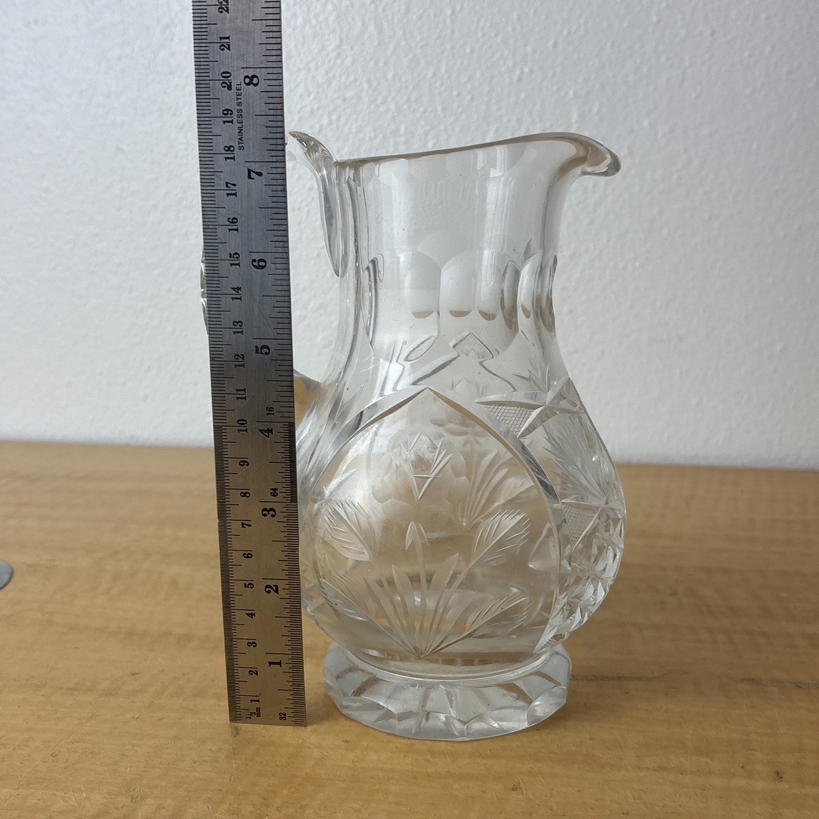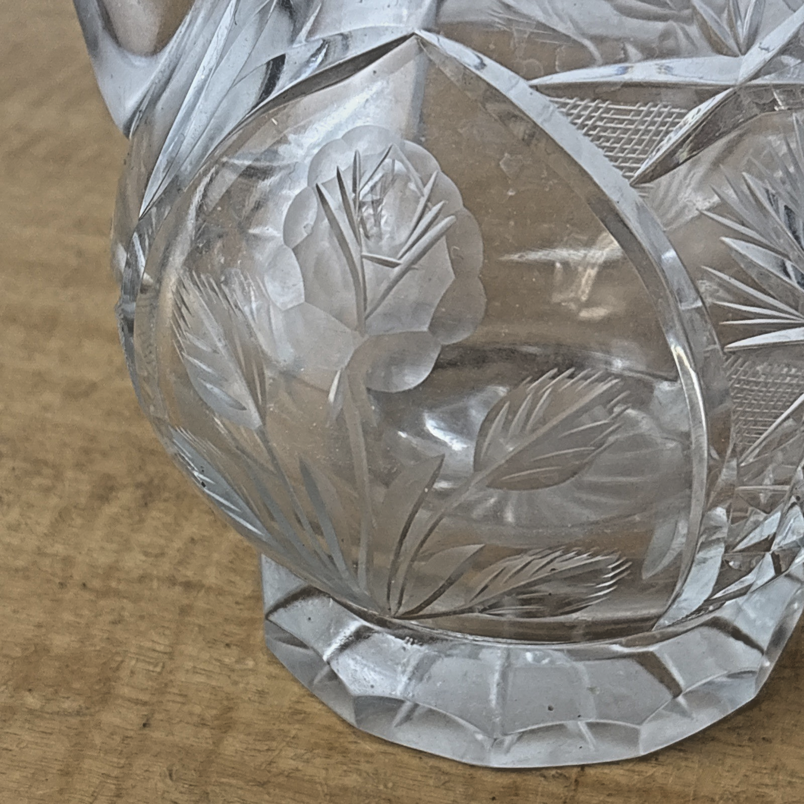 Vintage Cut Crystal Glass Flowers Rose Water Juice Pitcher