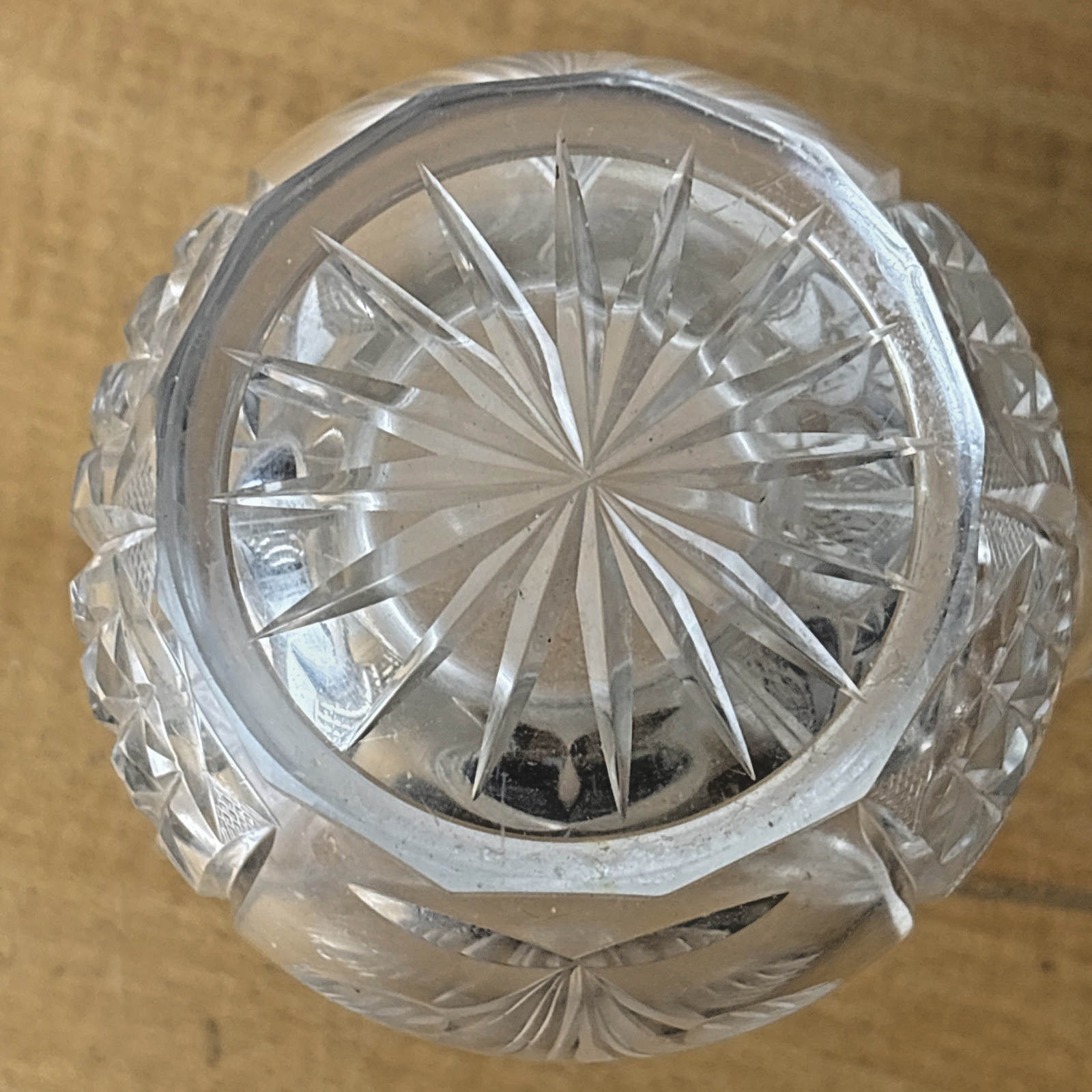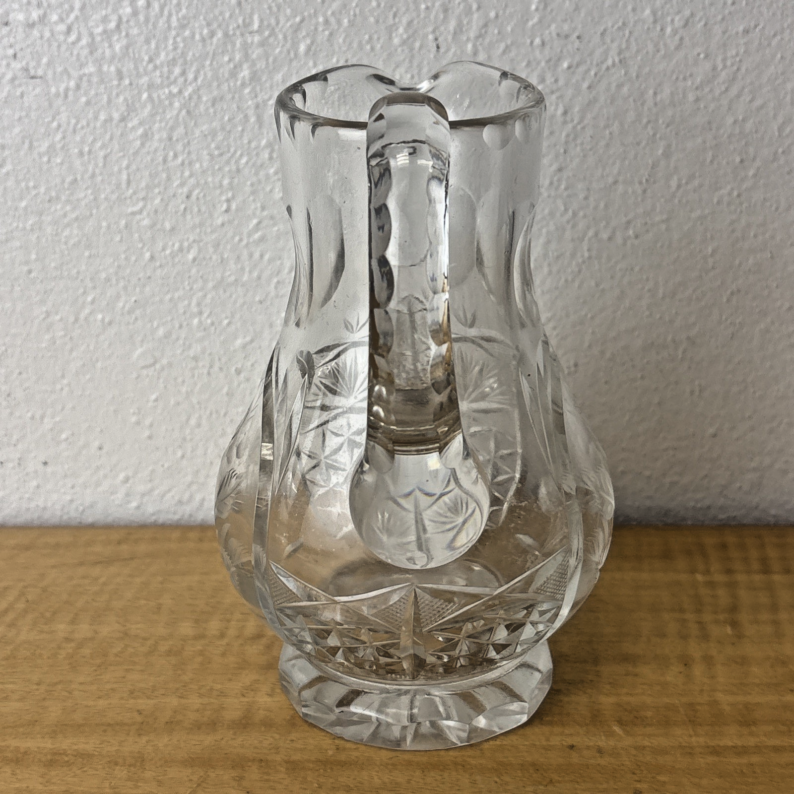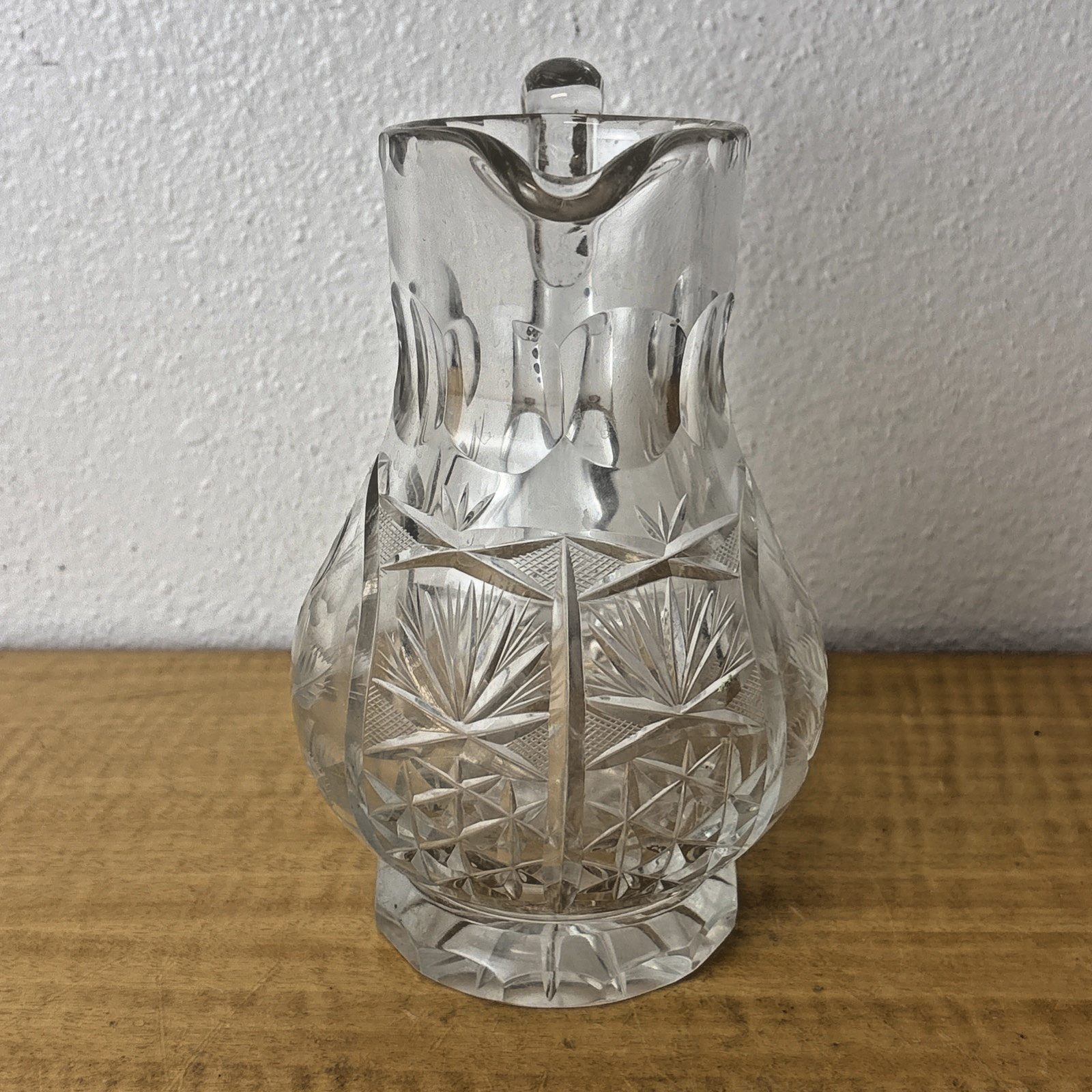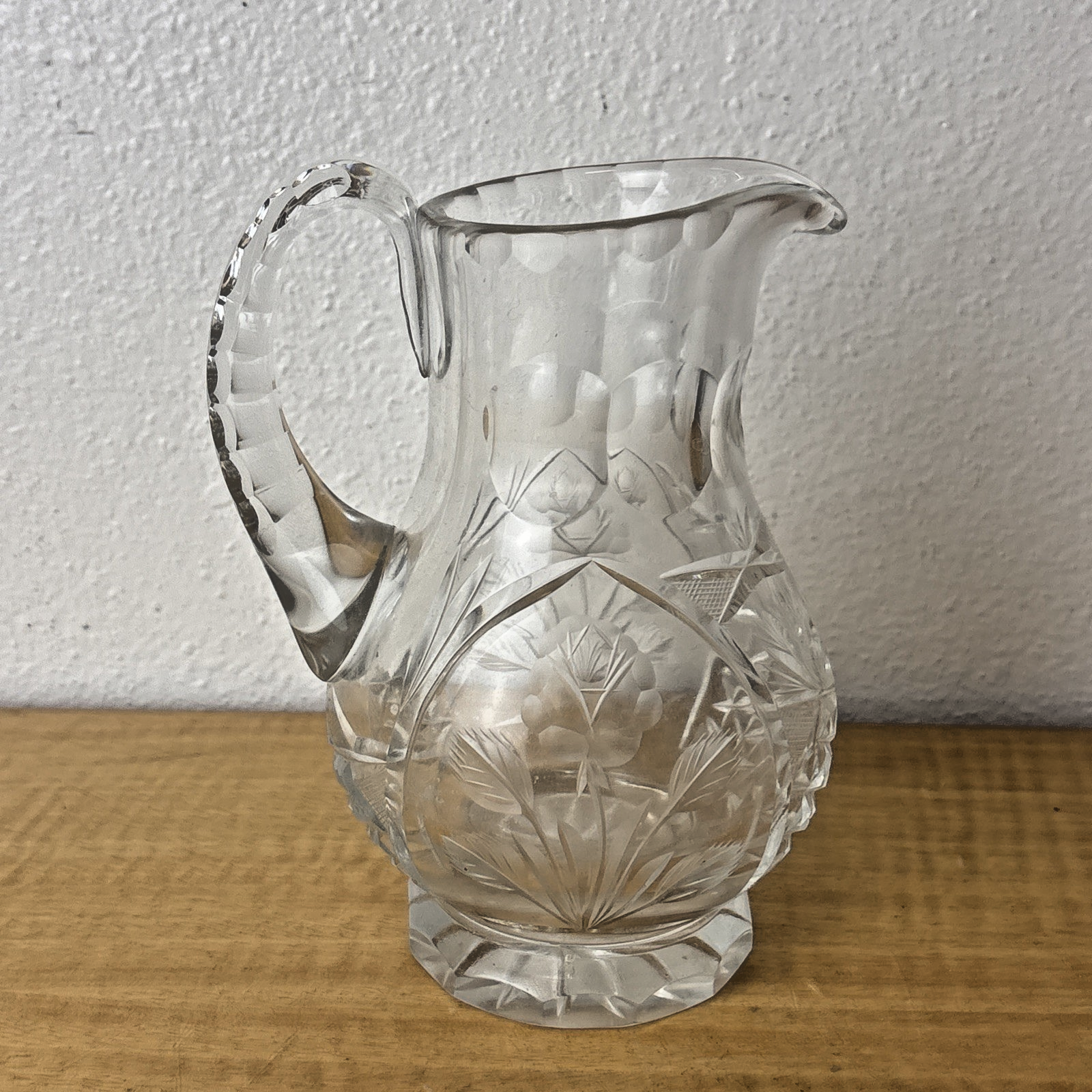 Vintage Cut Crystal Glass Flowers Rose Water Juice Pitcher