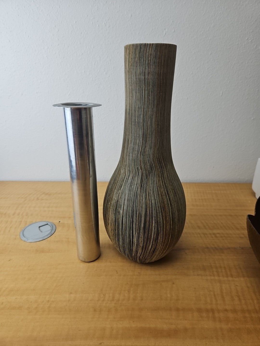 Vintage Cut Newspaper Vase With Metal Insert 13½"H