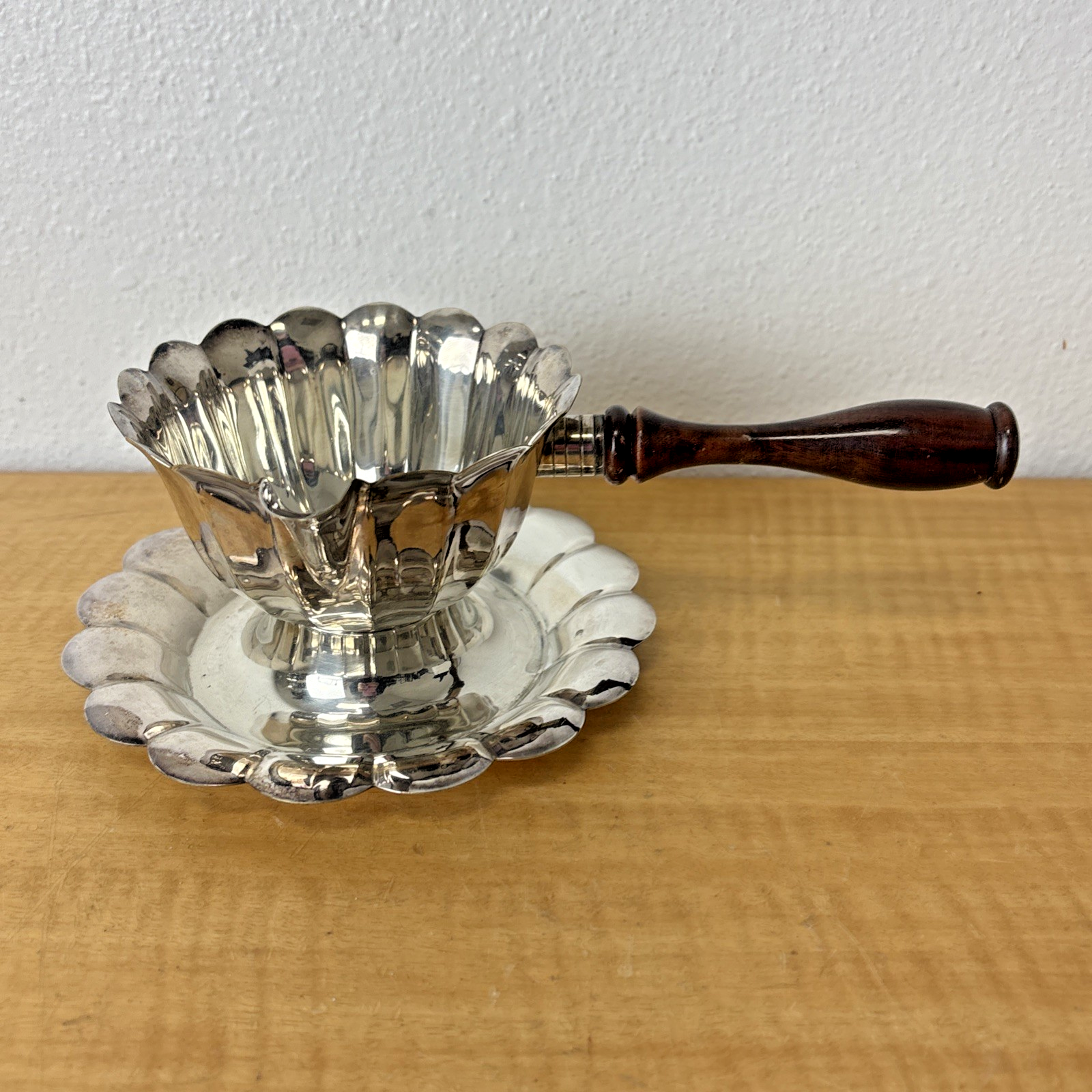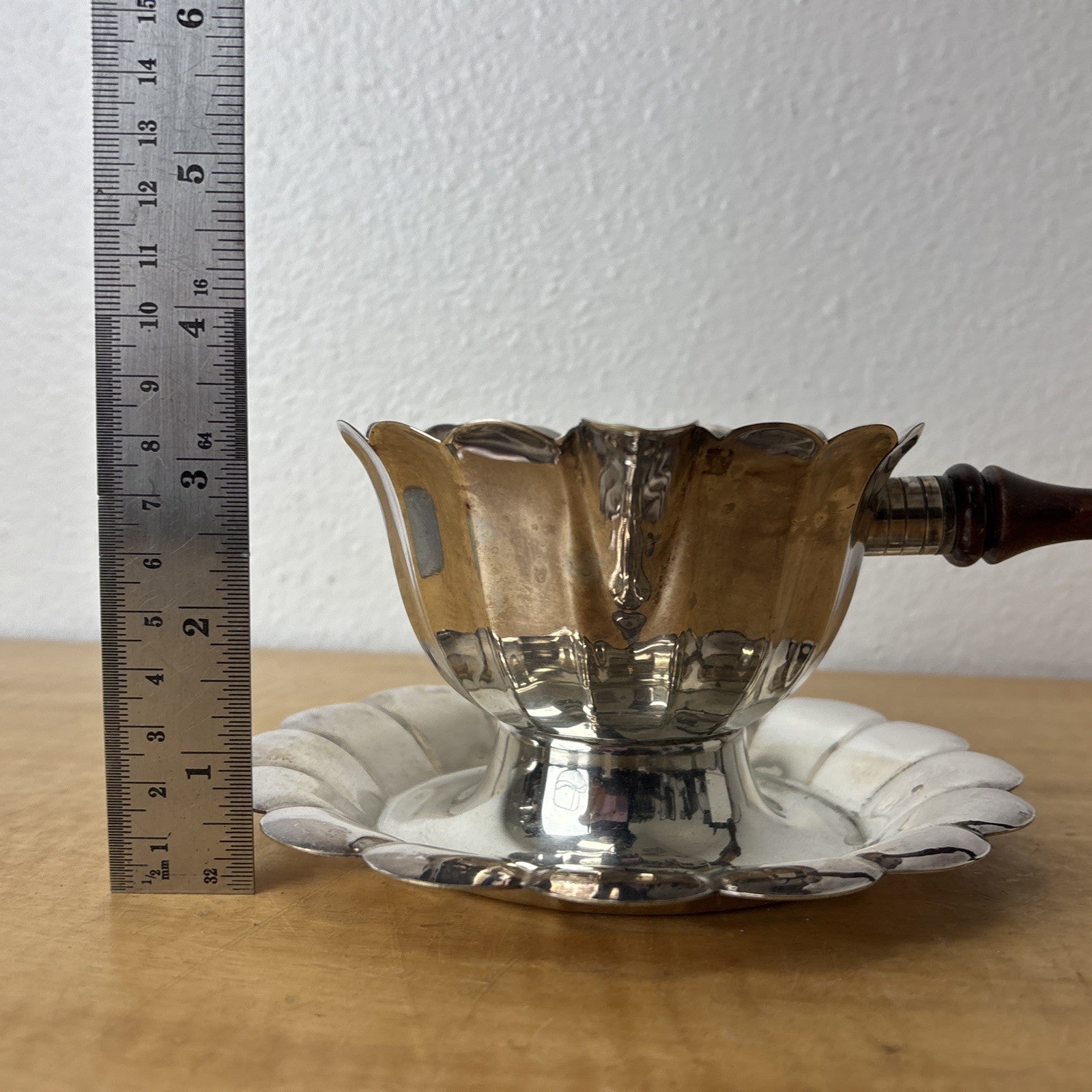 Vintage De Uberti Silverplate Scalloped Sauce Serving Bowl Handle Italy