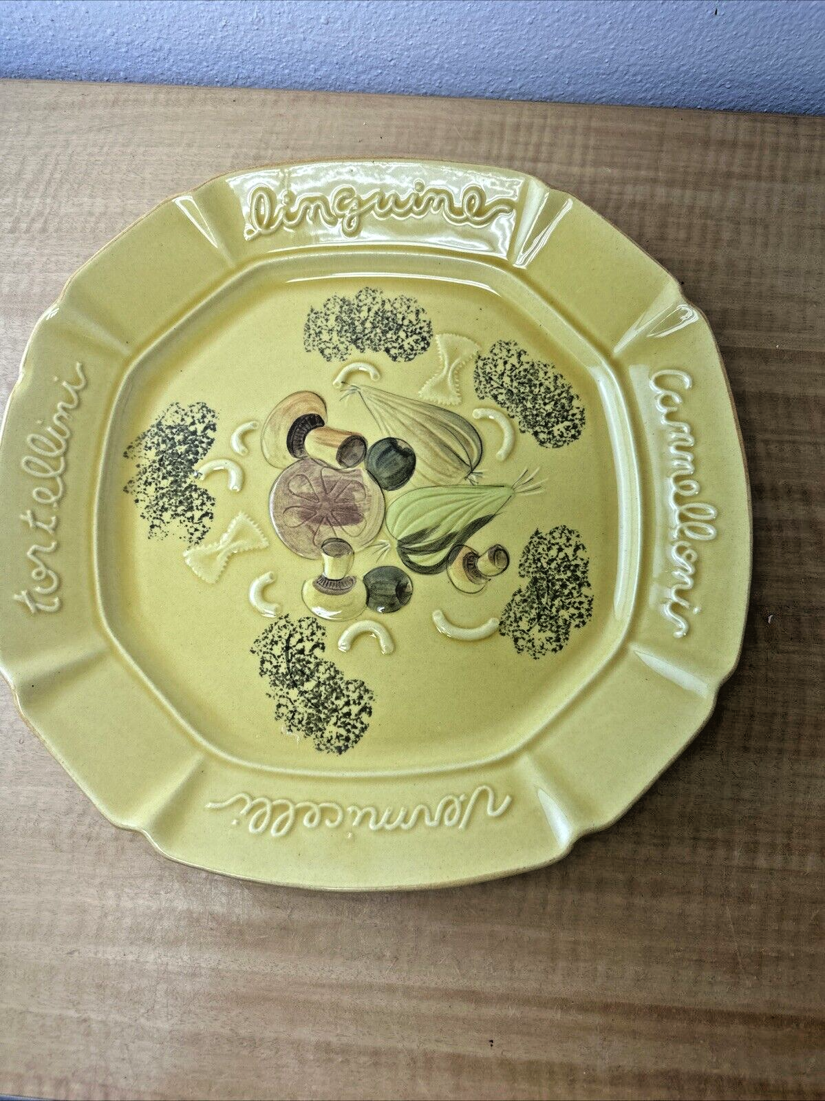 Vintage Designcraft Italian Pasta Serving Yellow Platter Mushroom Pottery USA