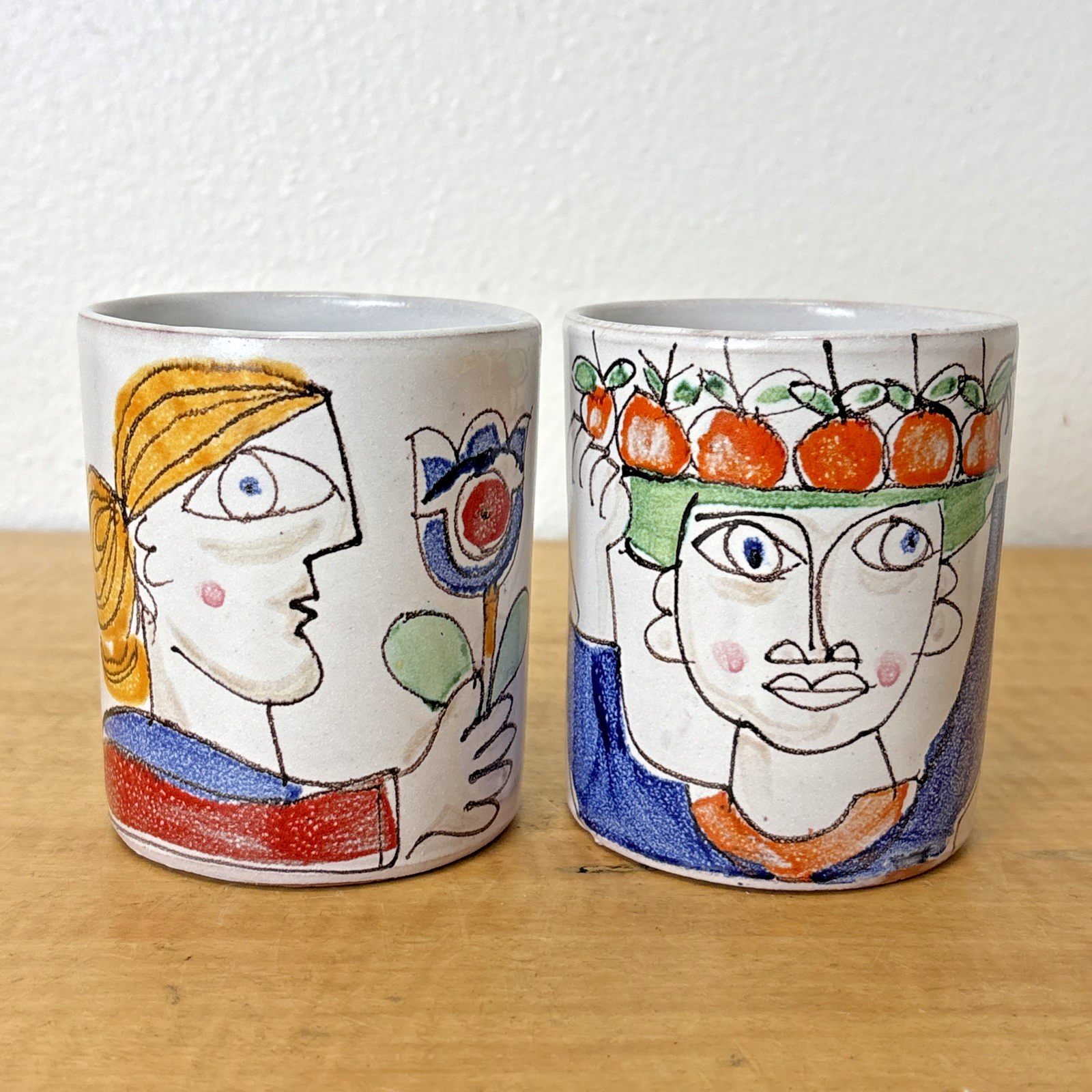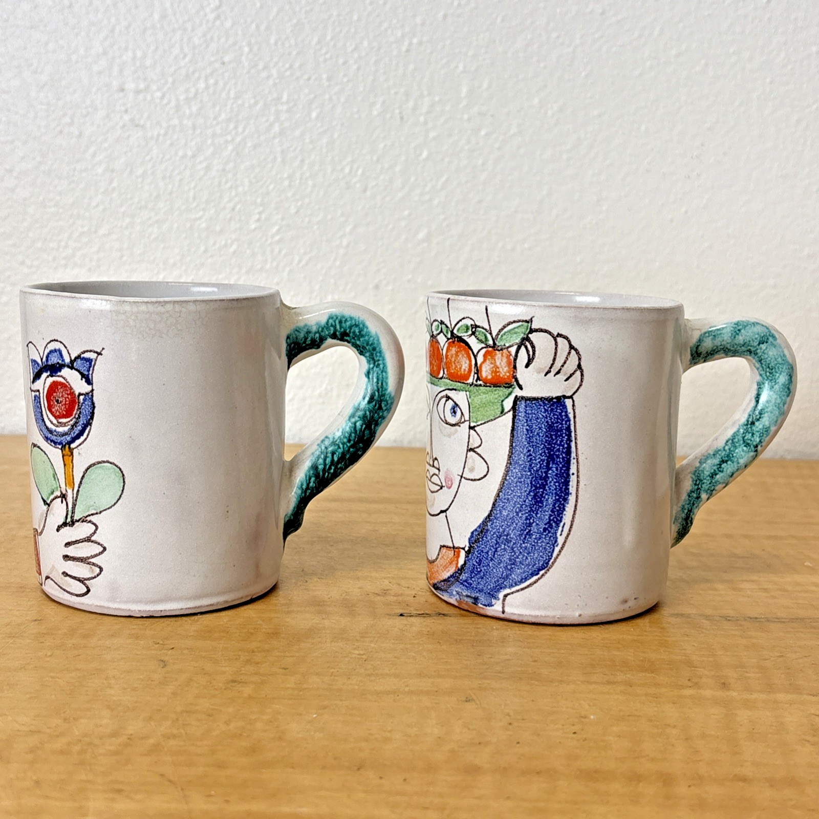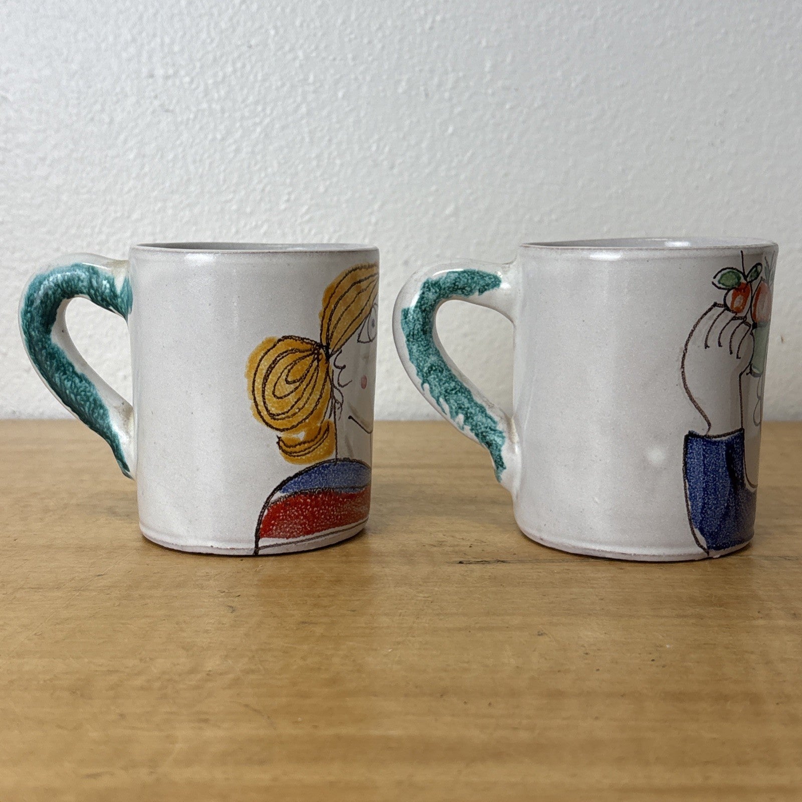 Vintage DeSimone Italy Ceramic Mugs Set of 2 #64 Lady & Man