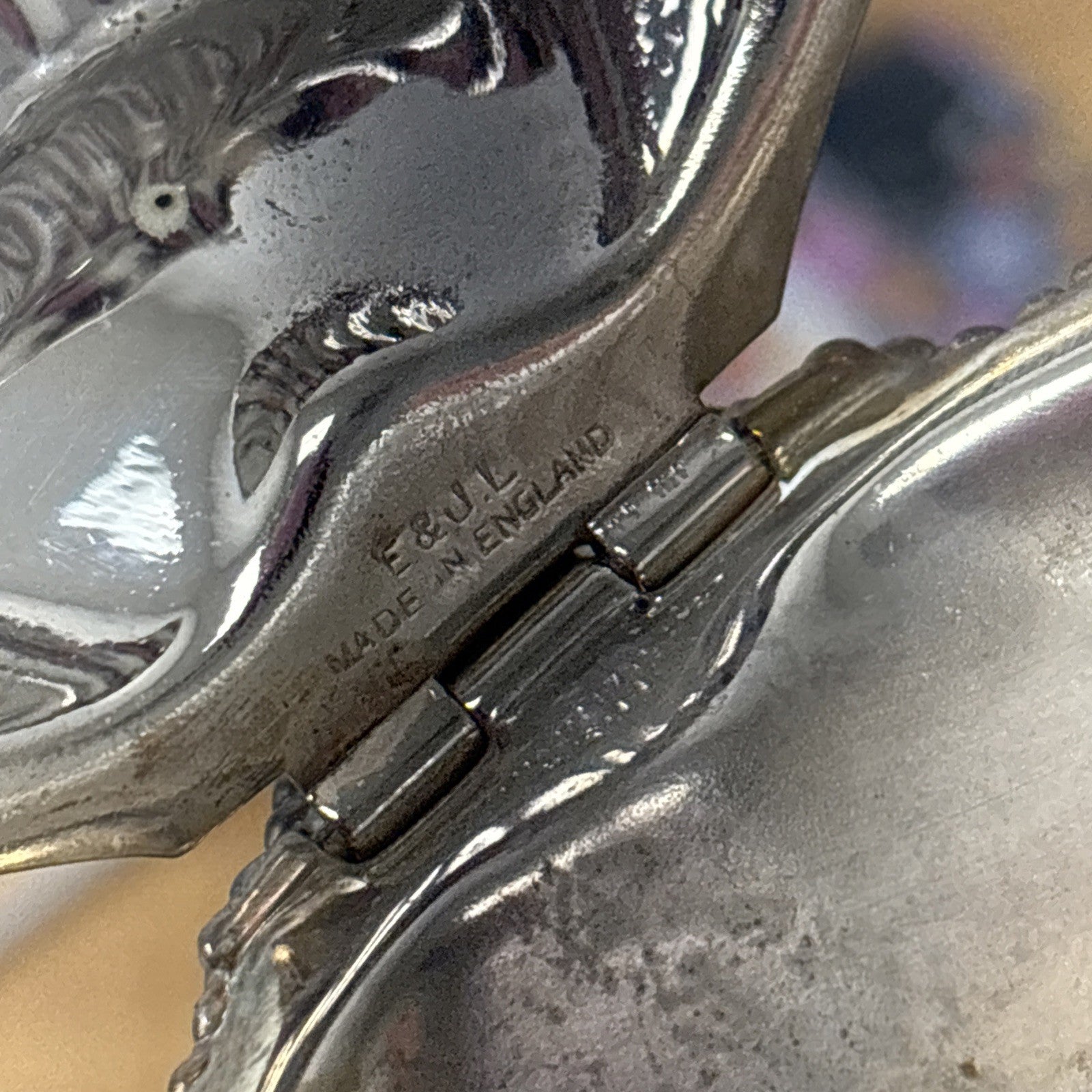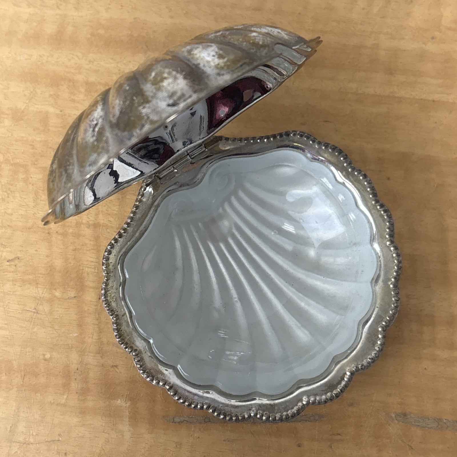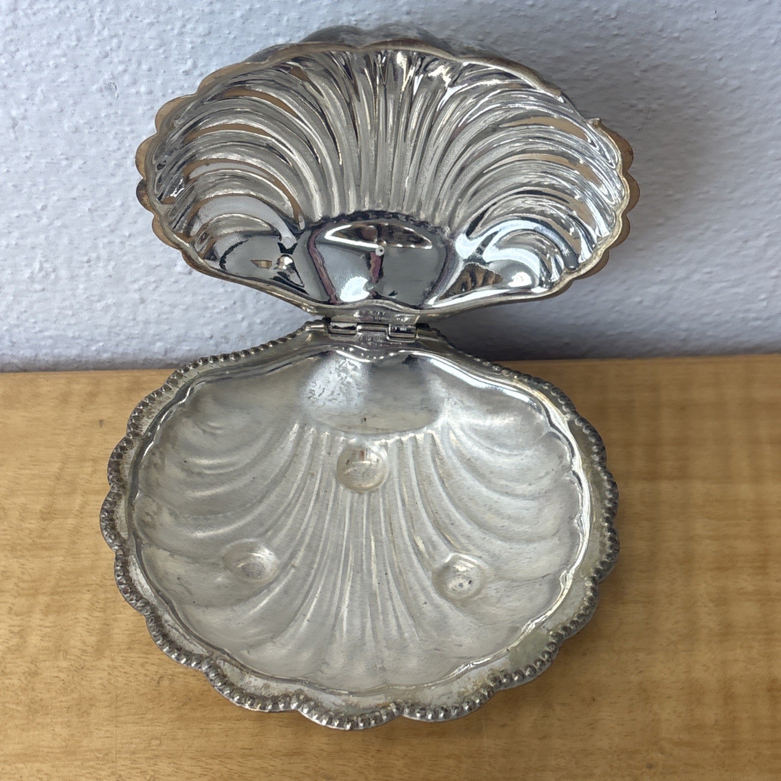 Vintage E & J Leek Silverplate Clamshell With Frosted Glass Liner Container