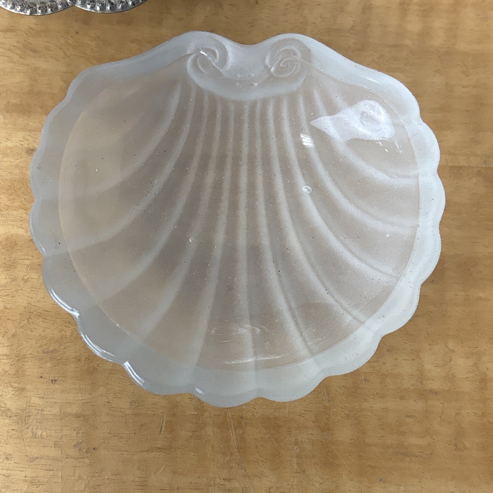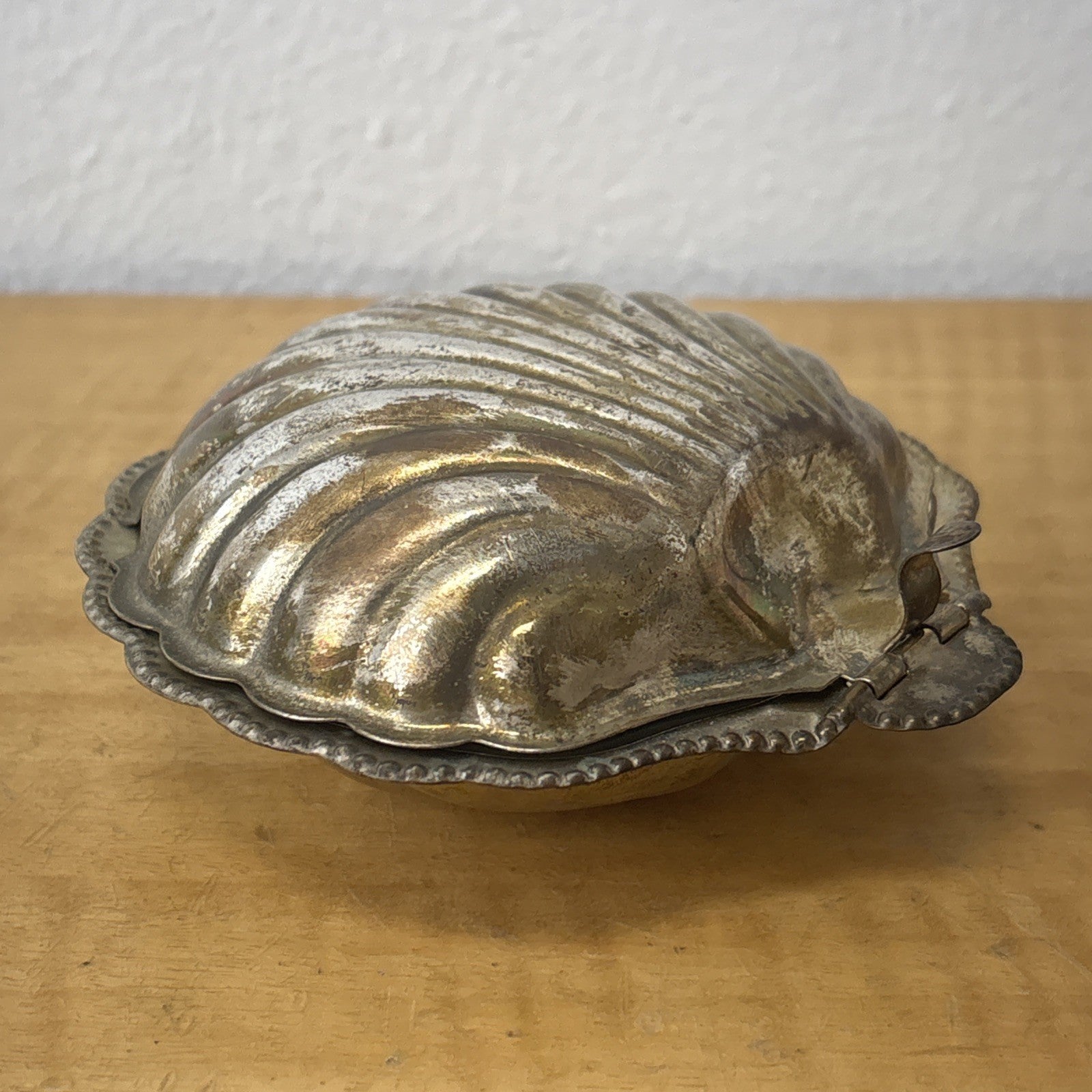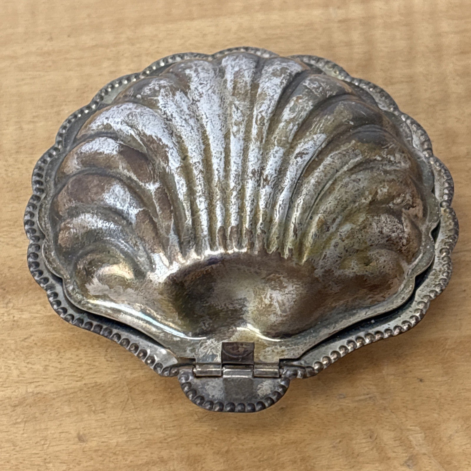 Vintage E & J Leek Silverplate Clamshell With Frosted Glass Liner Container