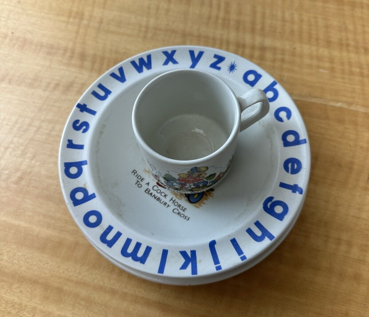 Vintage ELPCO China Child Baby Plate, Bowl & Cup, Alphabet Nursery Rhyme