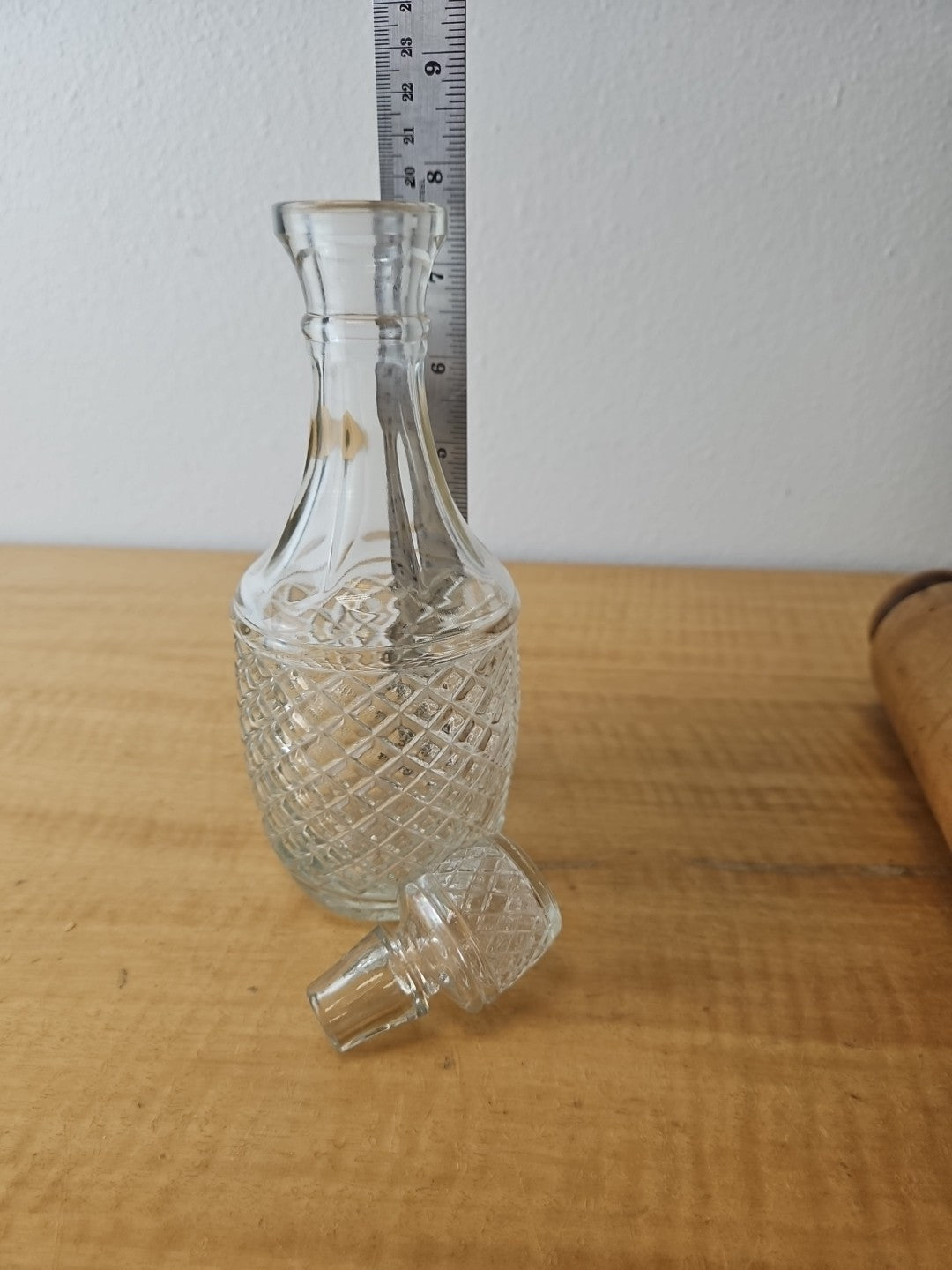 Vintage Glass Wine Decanter Bottle With Stopper 9"