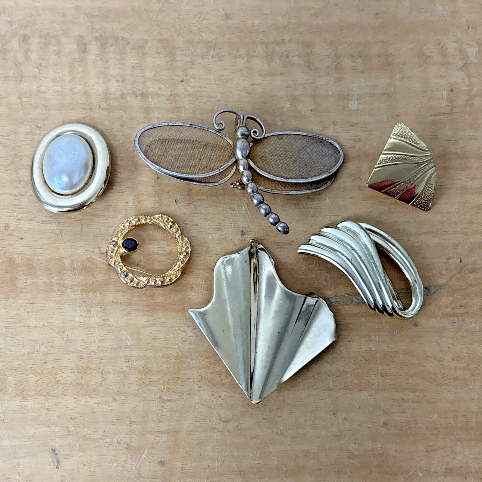 Vintage Gold Tone Brooch Pin / Clip On Earring Lot Of 6
