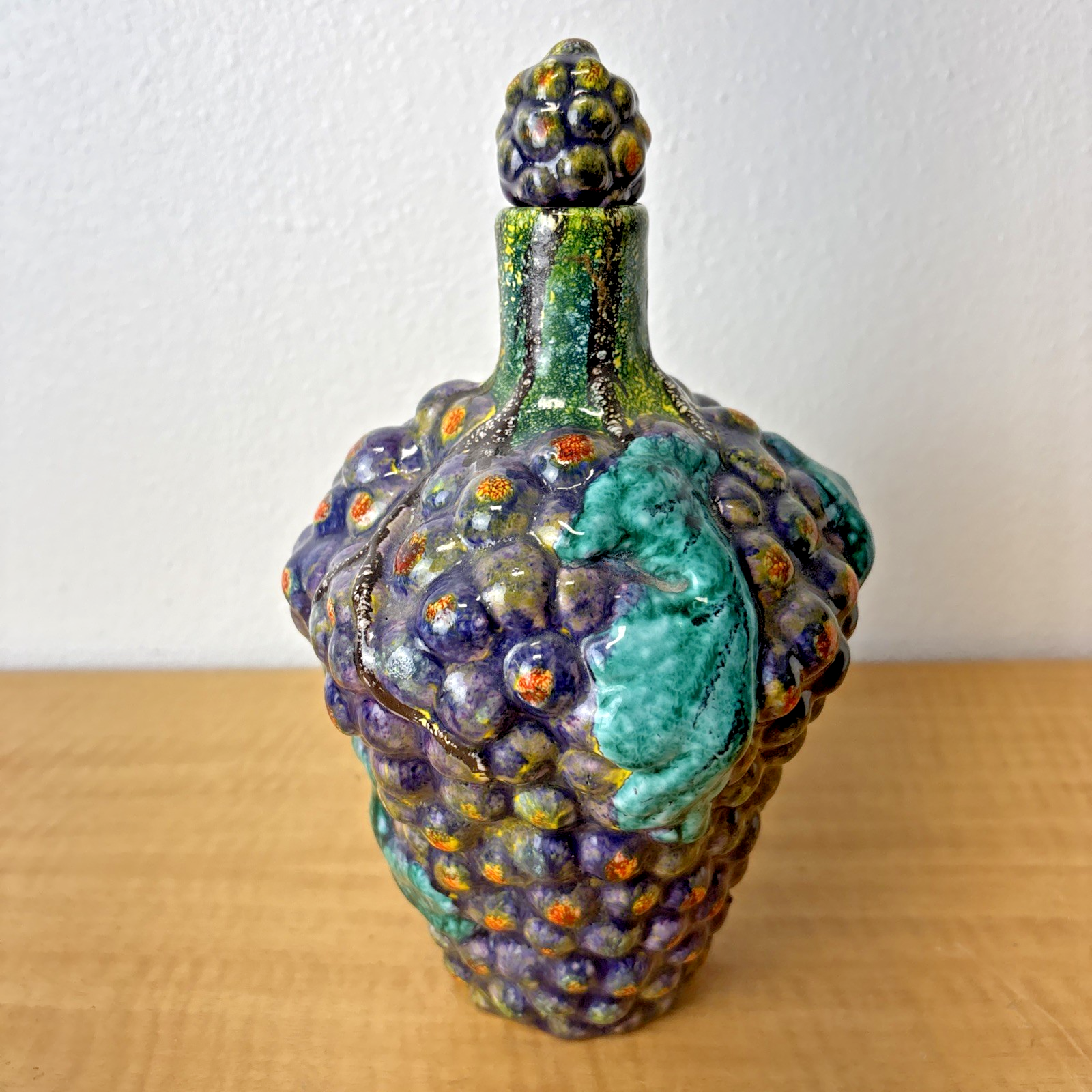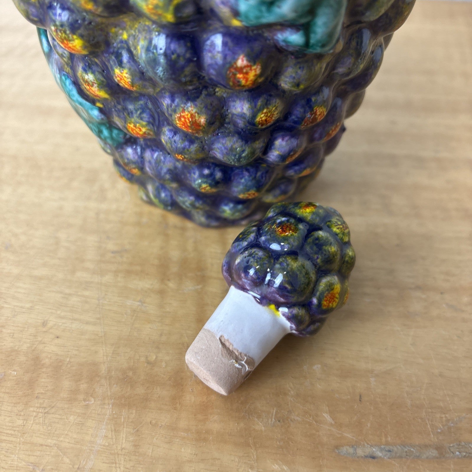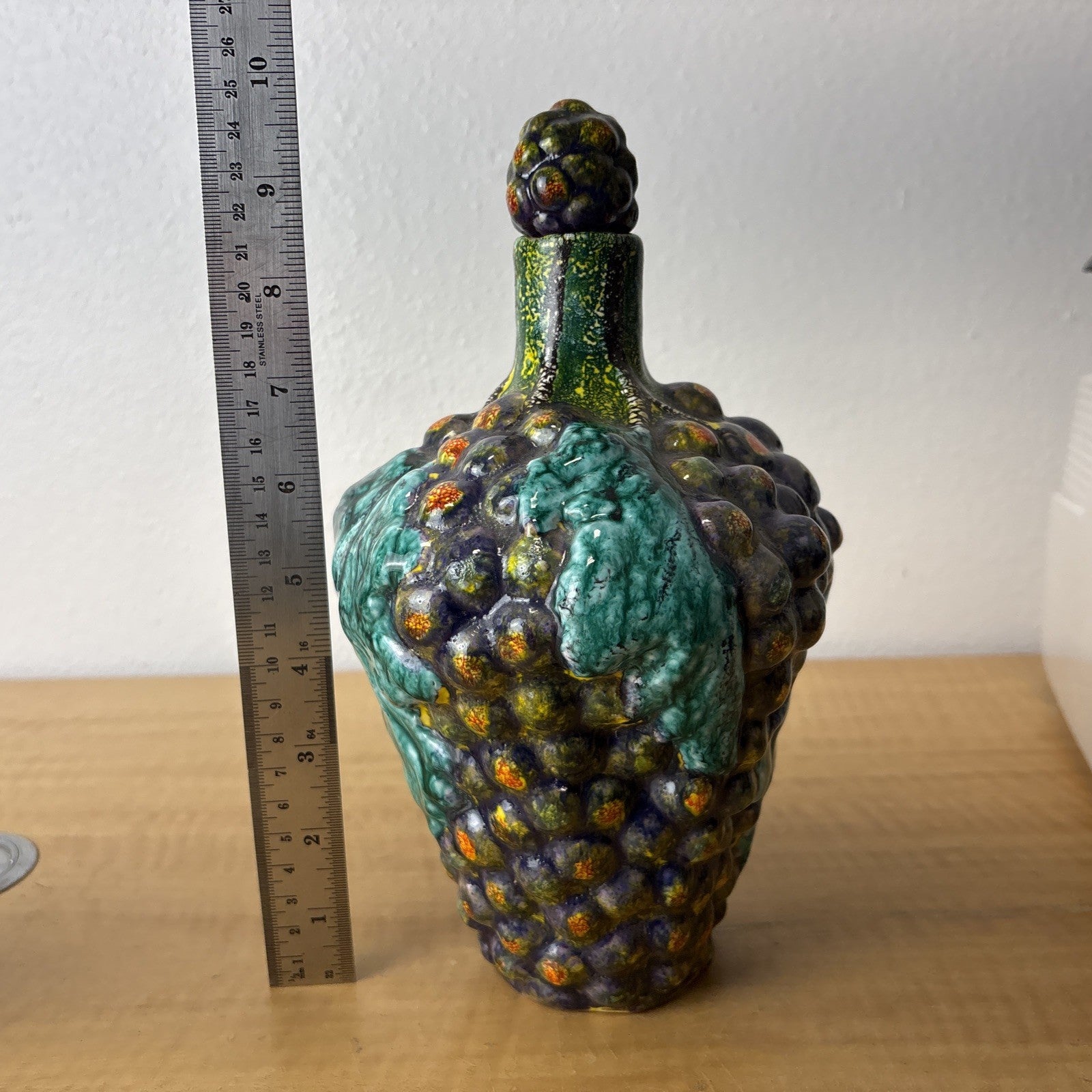 Vintage Grape Cluster Ceramic Wine Decanter Hand Painted Numbered Italy Stopper