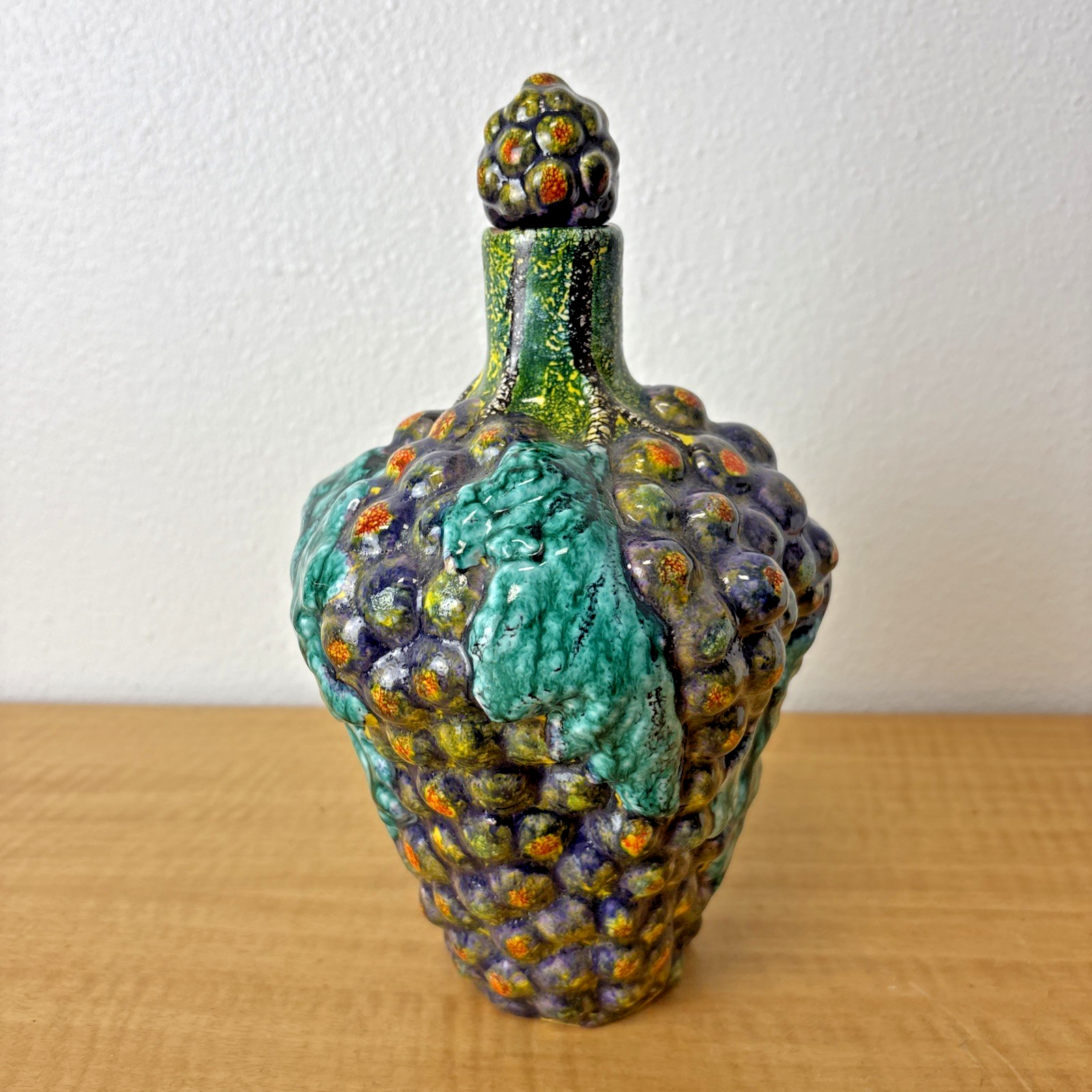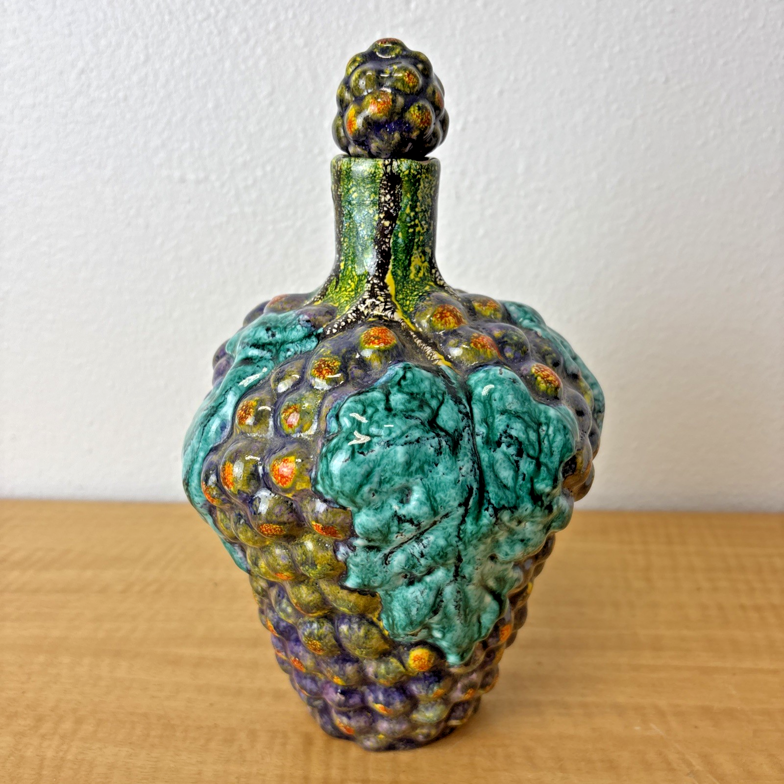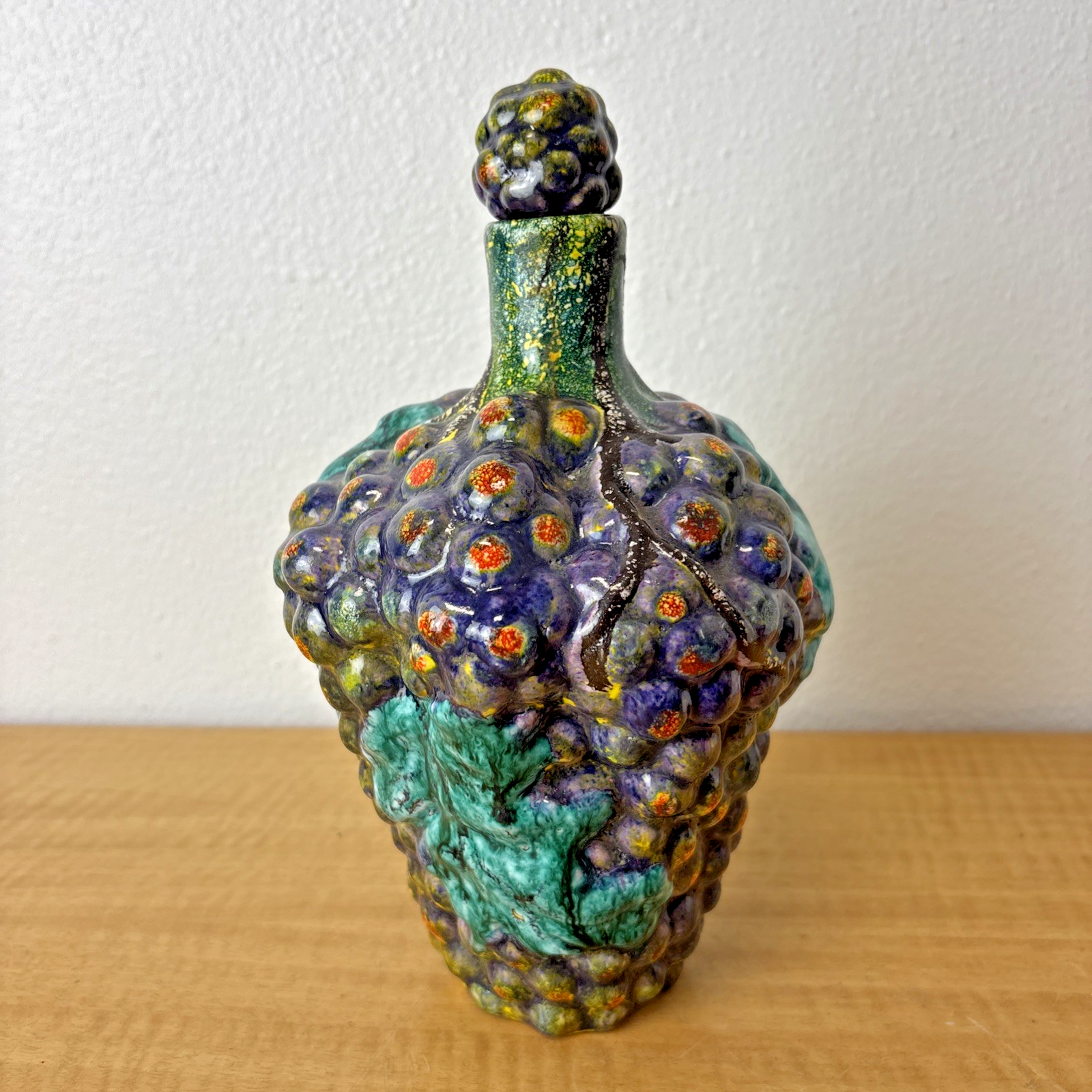 Vintage Grape Cluster Ceramic Wine Decanter Hand Painted Numbered Italy Stopper