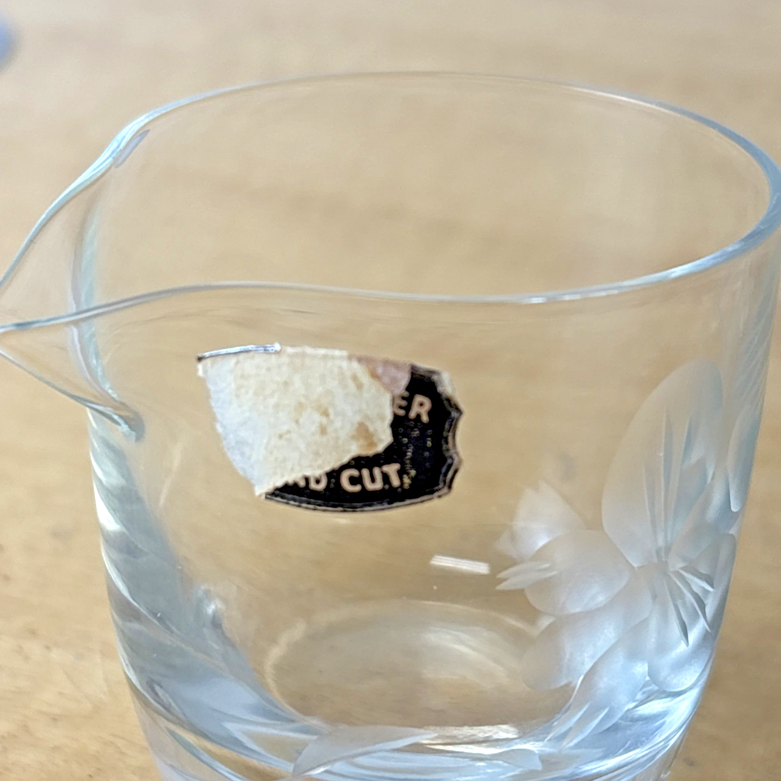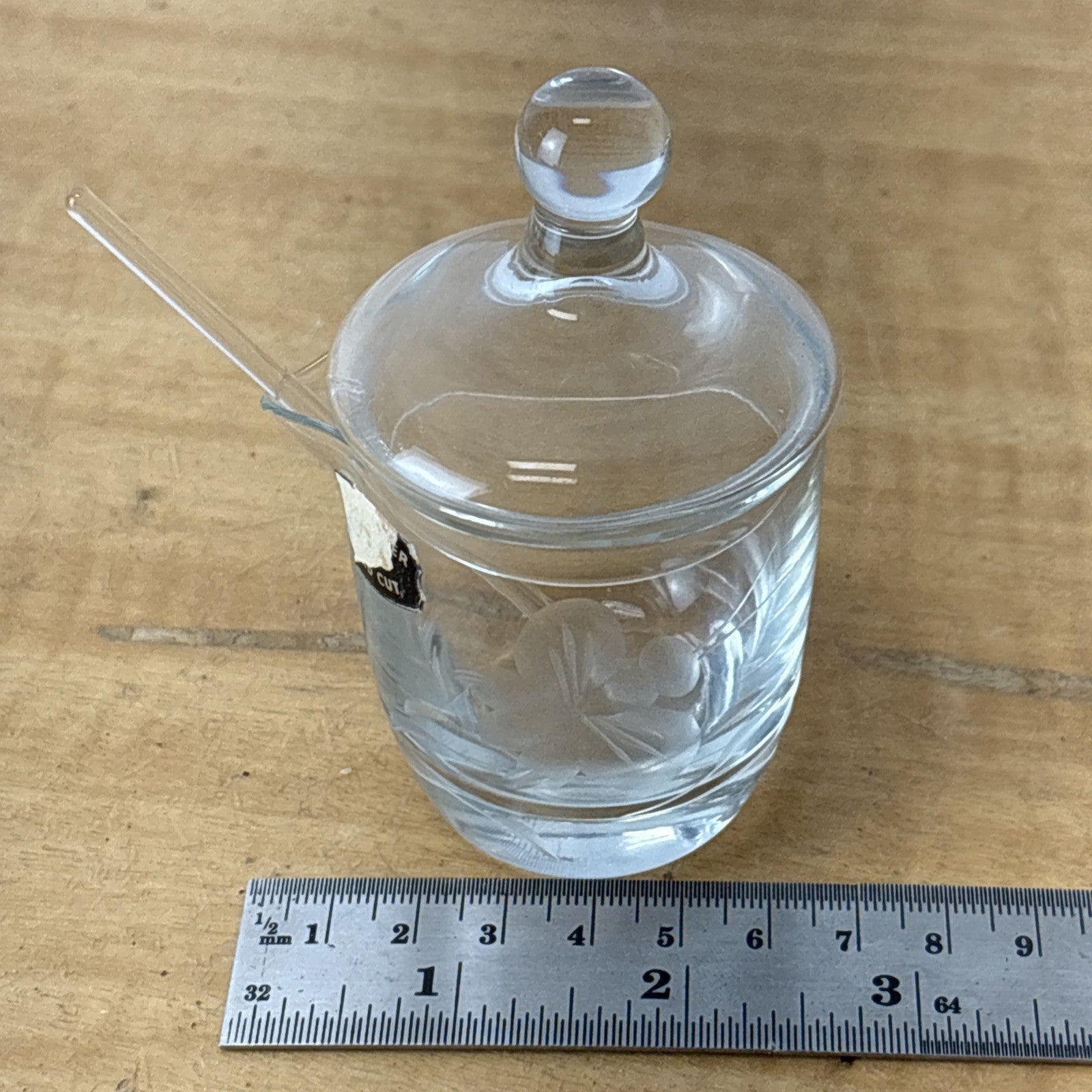 Vintage Hand Cut Glass Jam Jelly Condiment Jar w Spoon Etched Dragonfly