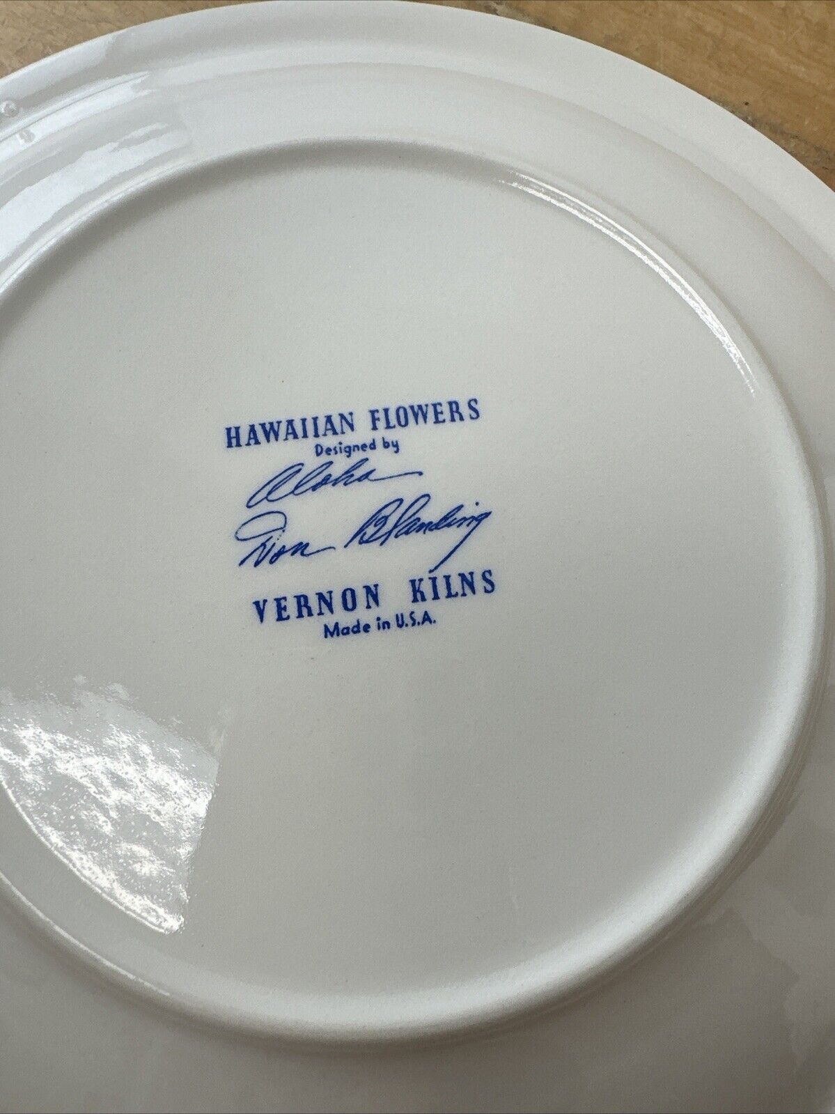Vintage Hawaii Don Blanding Hawaiian Flowers Dinner Plate Blue on White Vernon