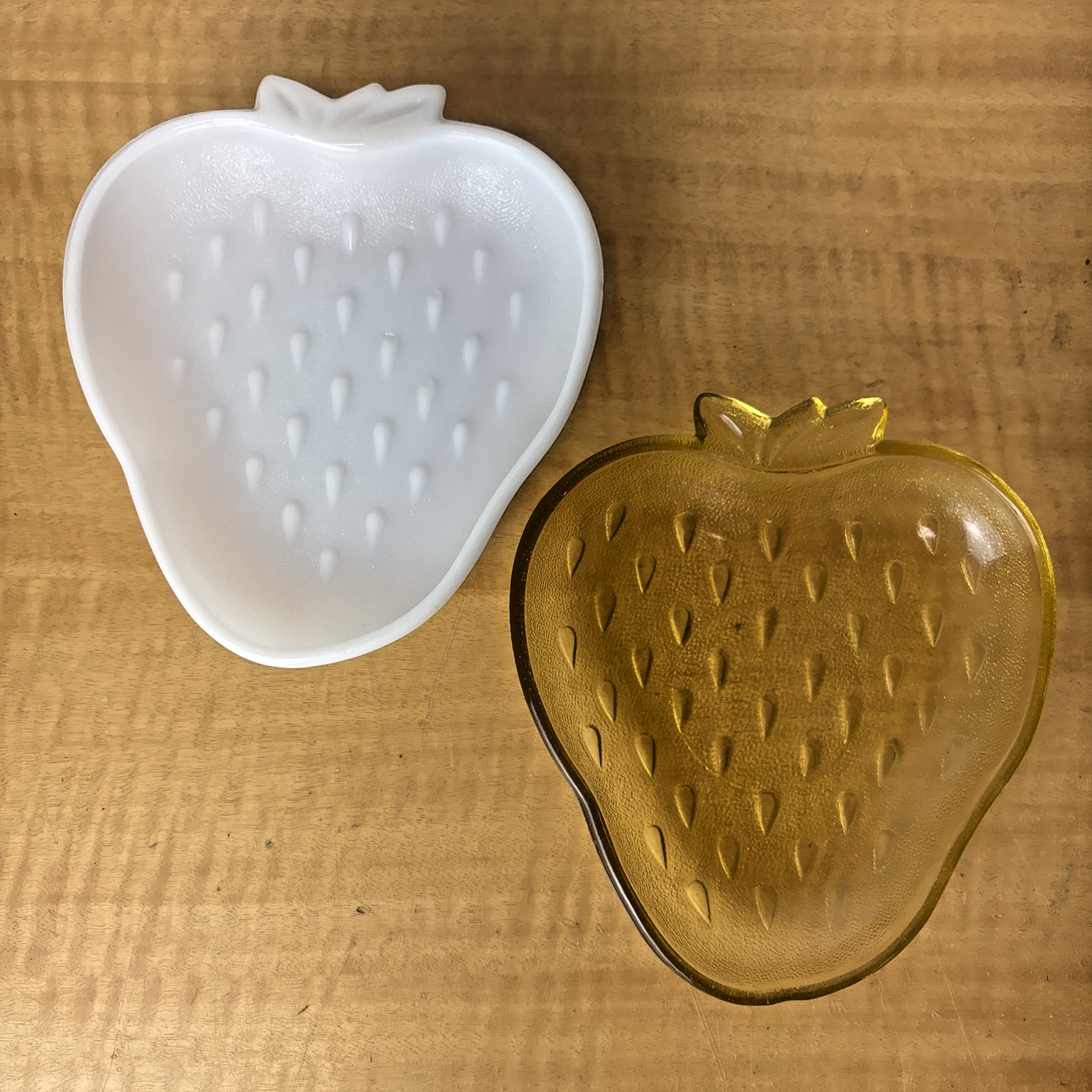 Vintage Hazel Atlas Yellow and Milk Glass Strawberry Dish Set of 2