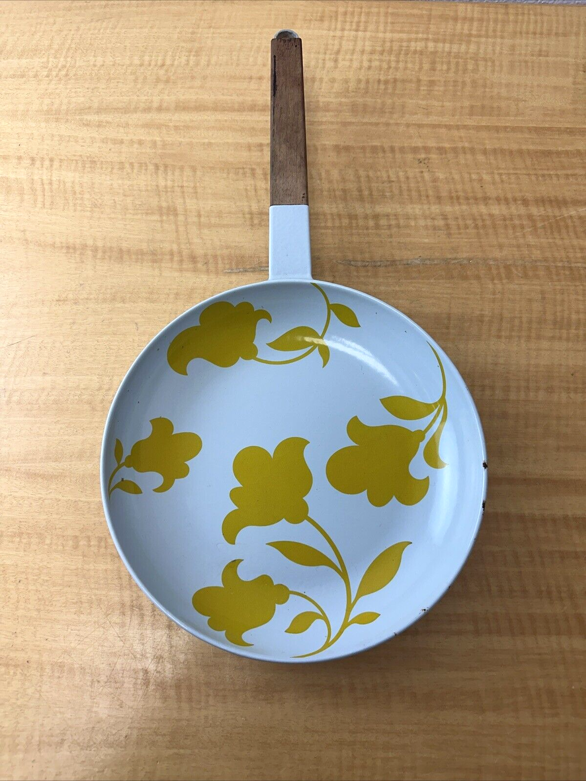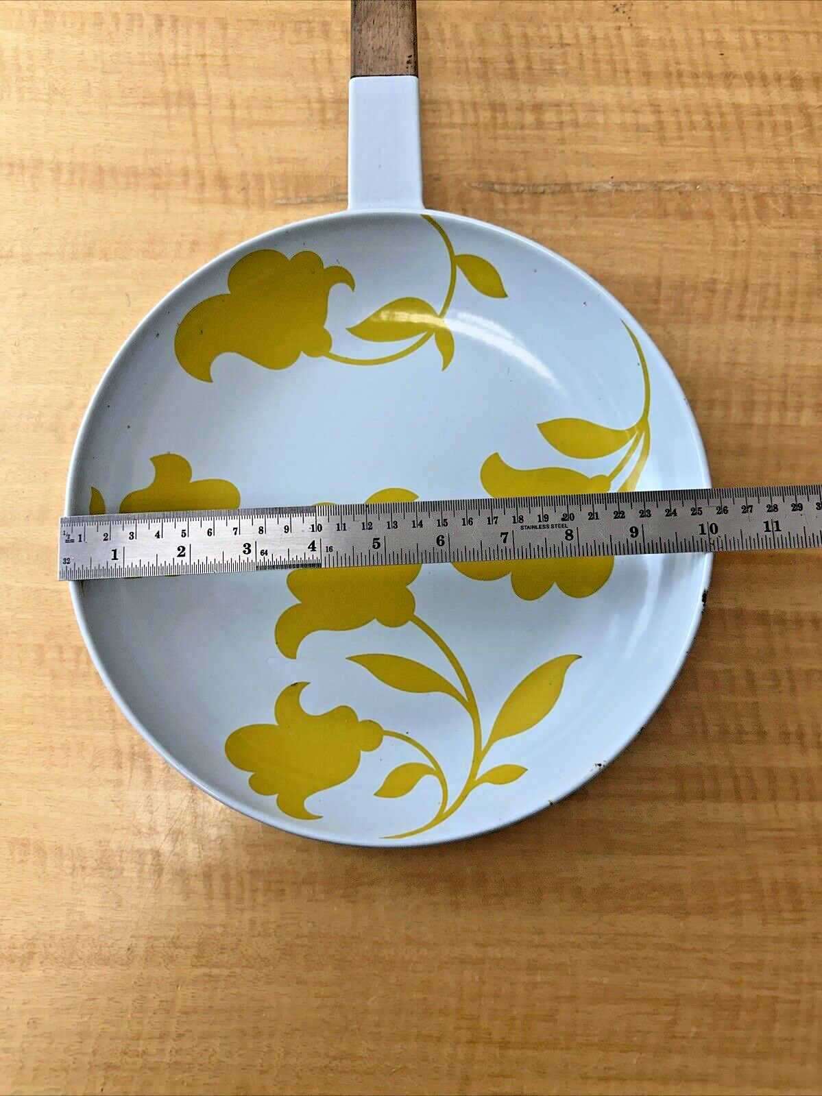 VINTAGE HEARTHSTONE BLOCK VON ROLL CAST IRON ENAMEL FRYING PAN MUSHROOMS