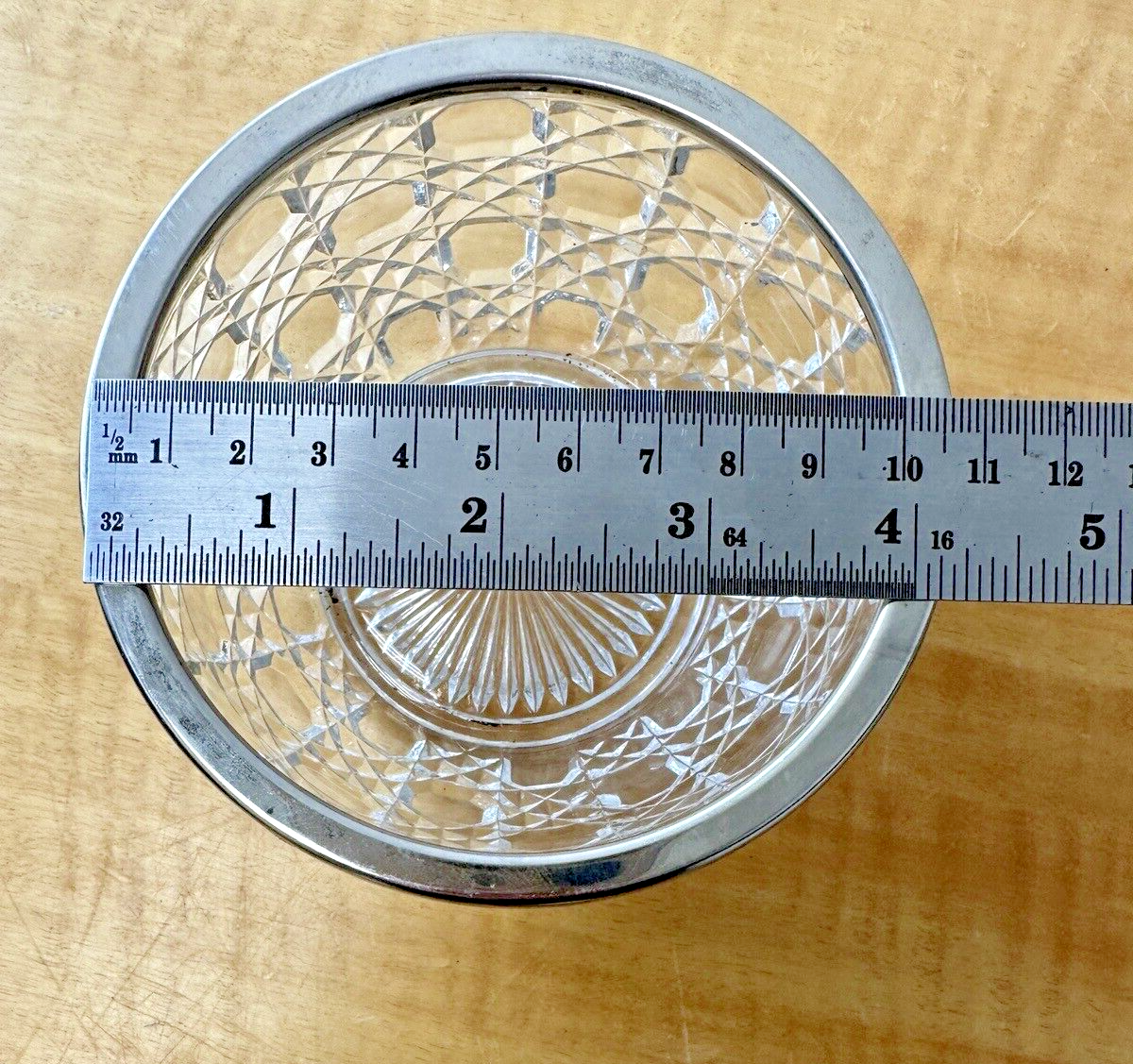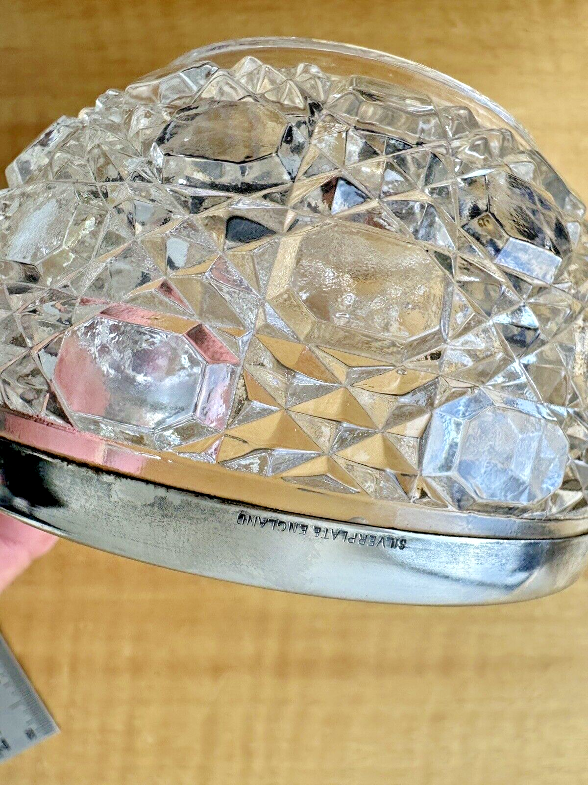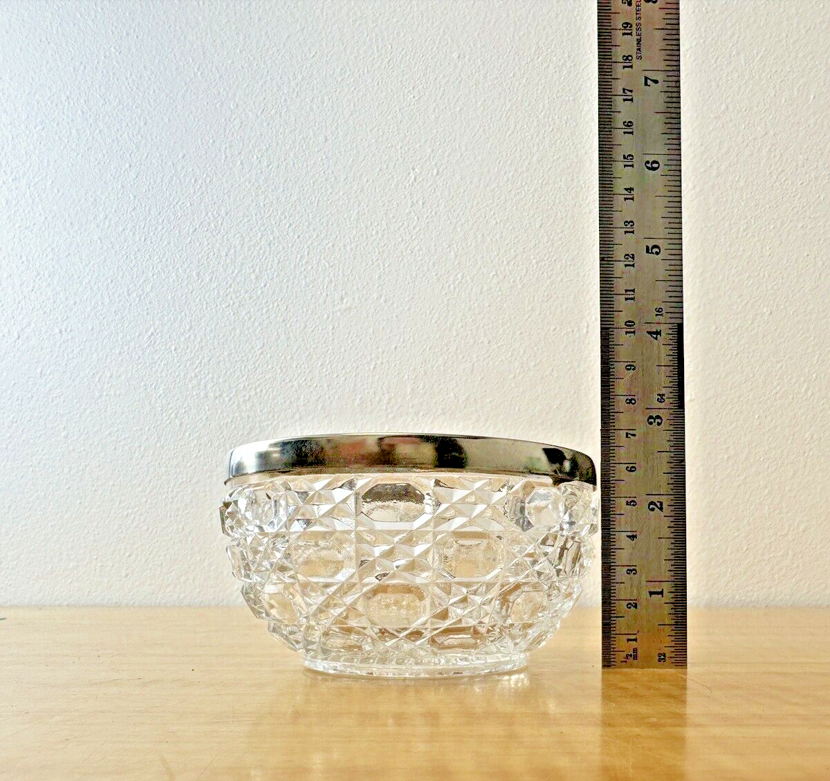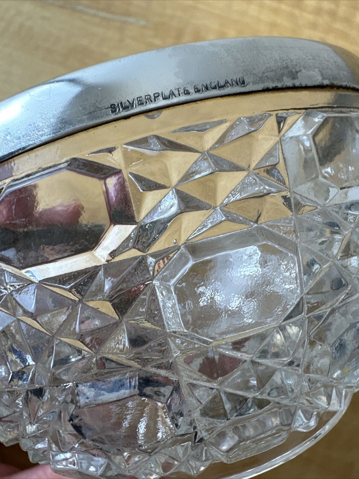 Vintage Heavy Lead Crystal Bowl with Silver Plated Rim Signed Made in England
