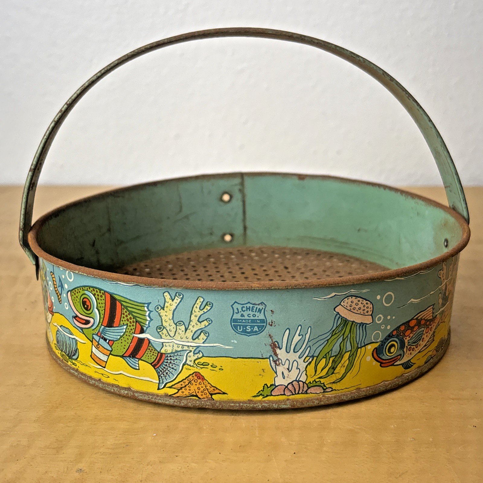 Vintage J Chein Tin Litho Sand Sifter Beach Toy