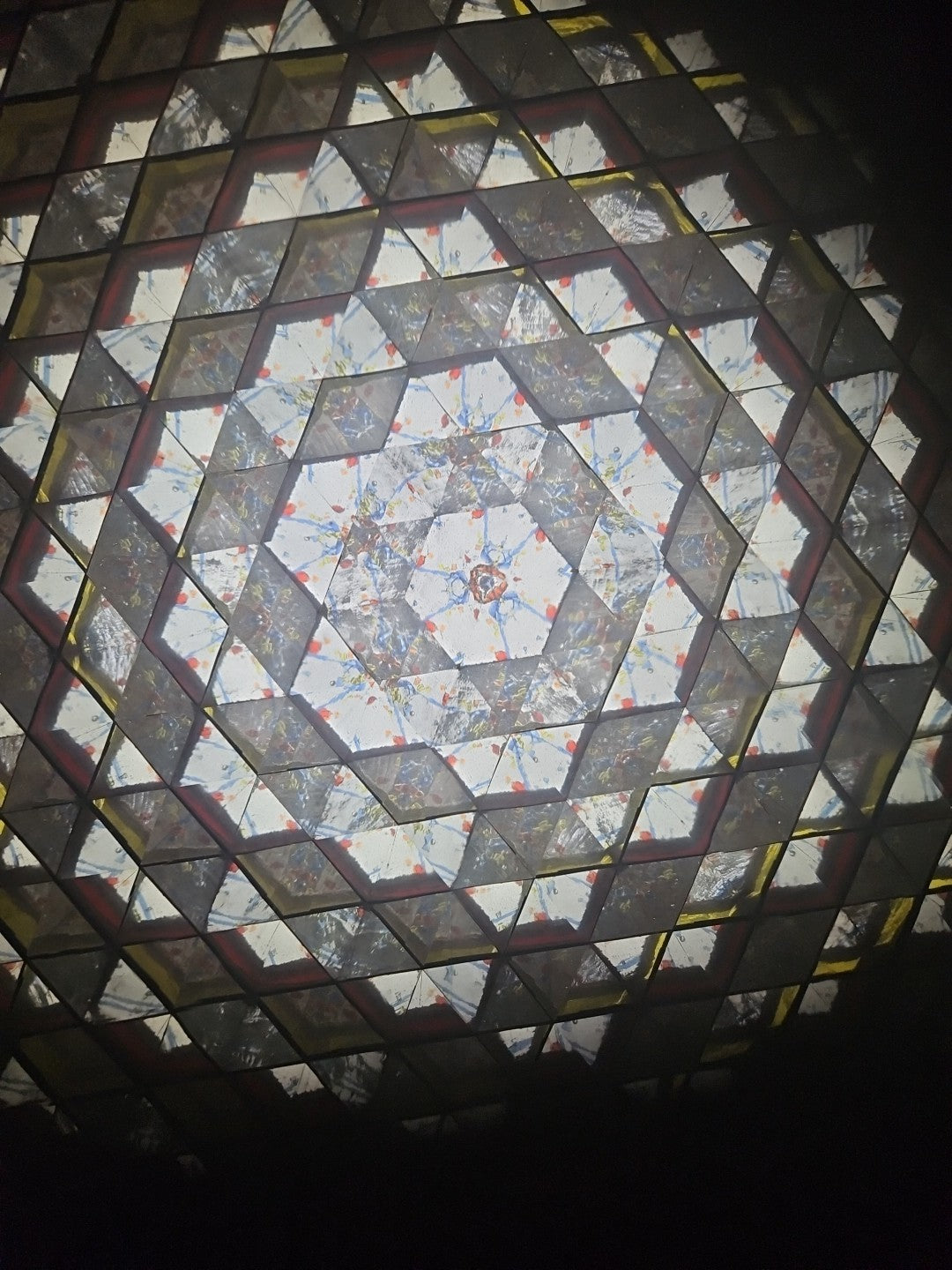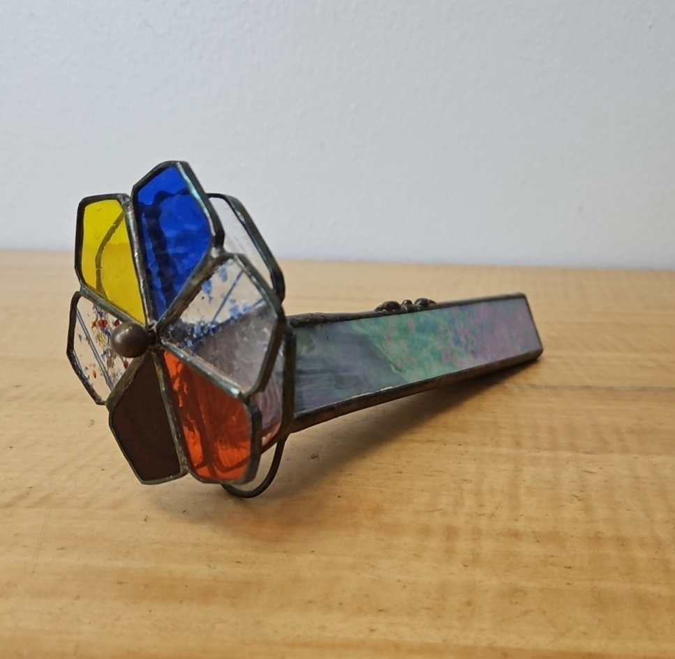 Vintage Kaleidoscope Double Wheel Stained Glass Toy 9”