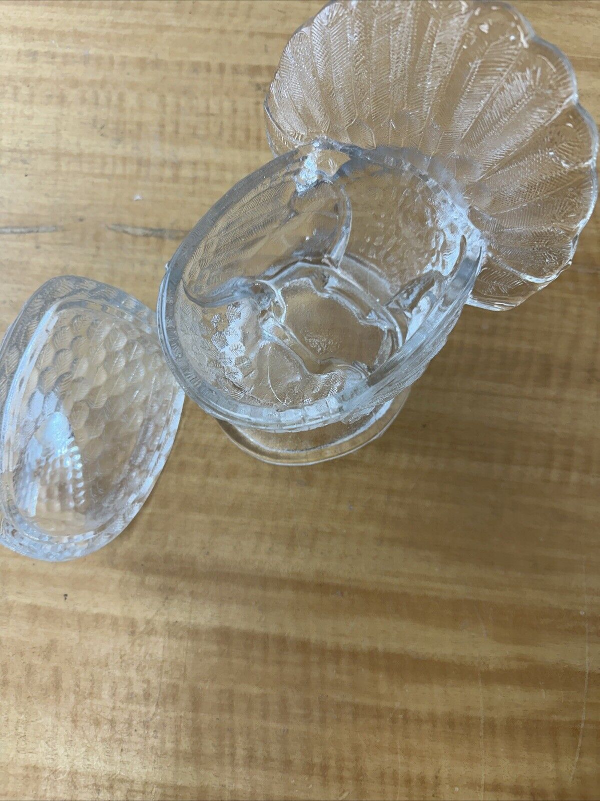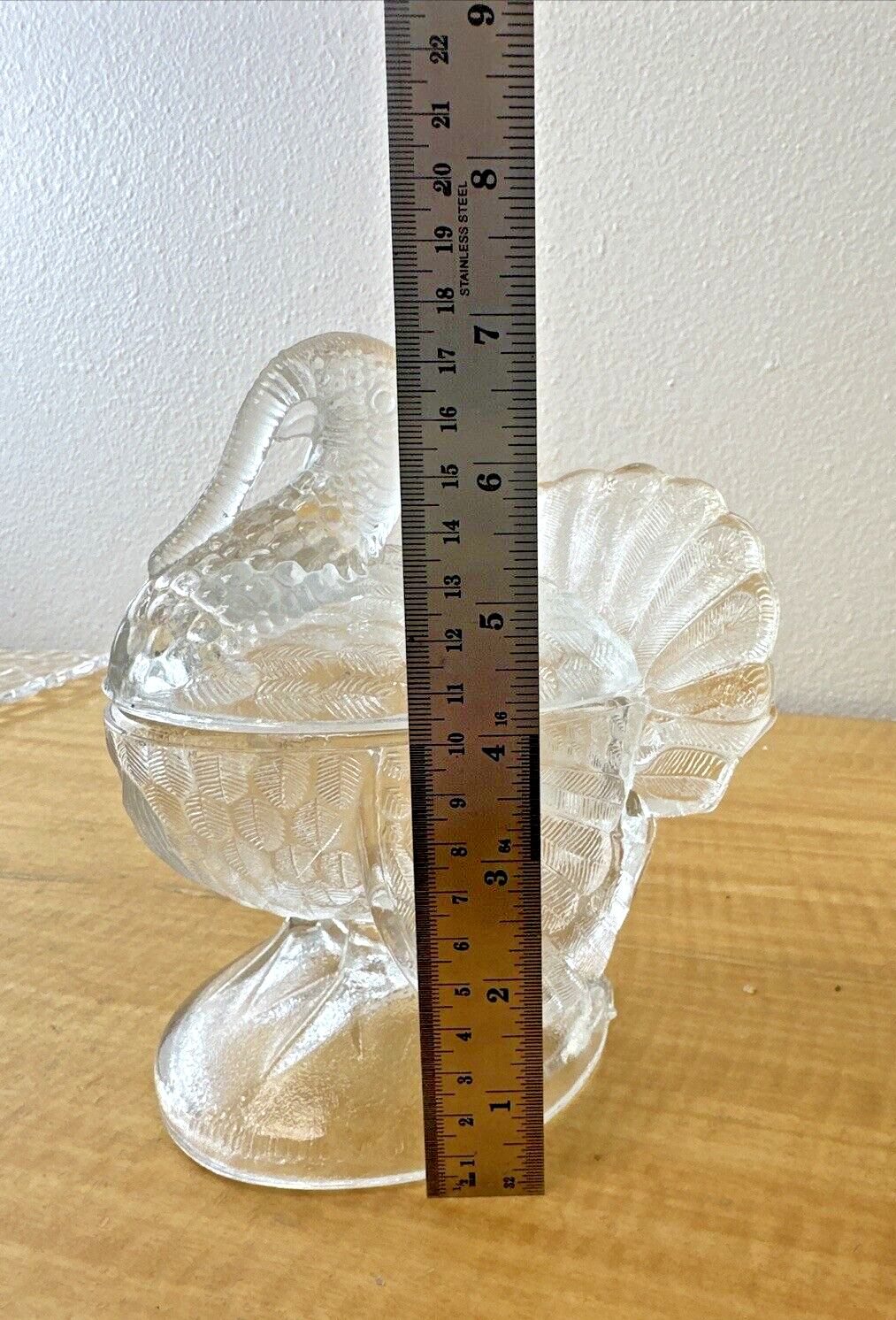 Vintage L. E. Smith Clear Glass Turkey Lidded Candy Dish Thanksgiving Server 7"