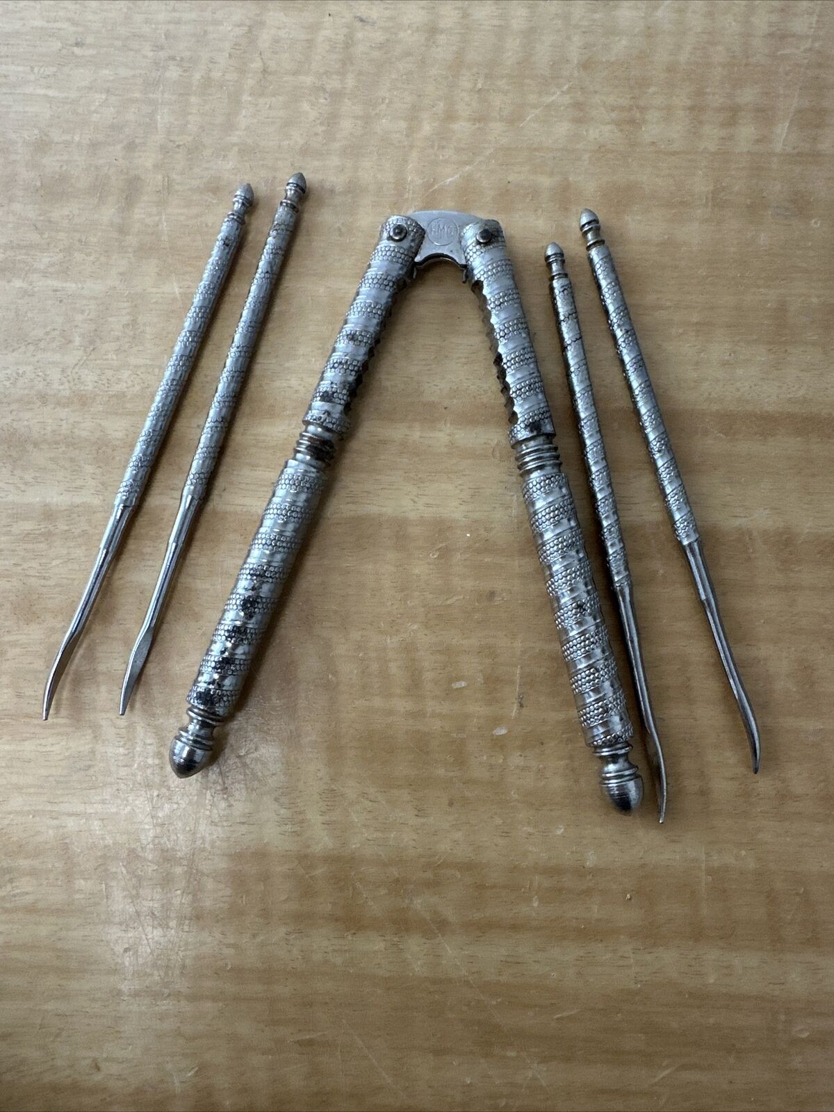 Vintage Metal Nutcracker Lobster Shell Crab Cracker Hand Held With 4 Picks