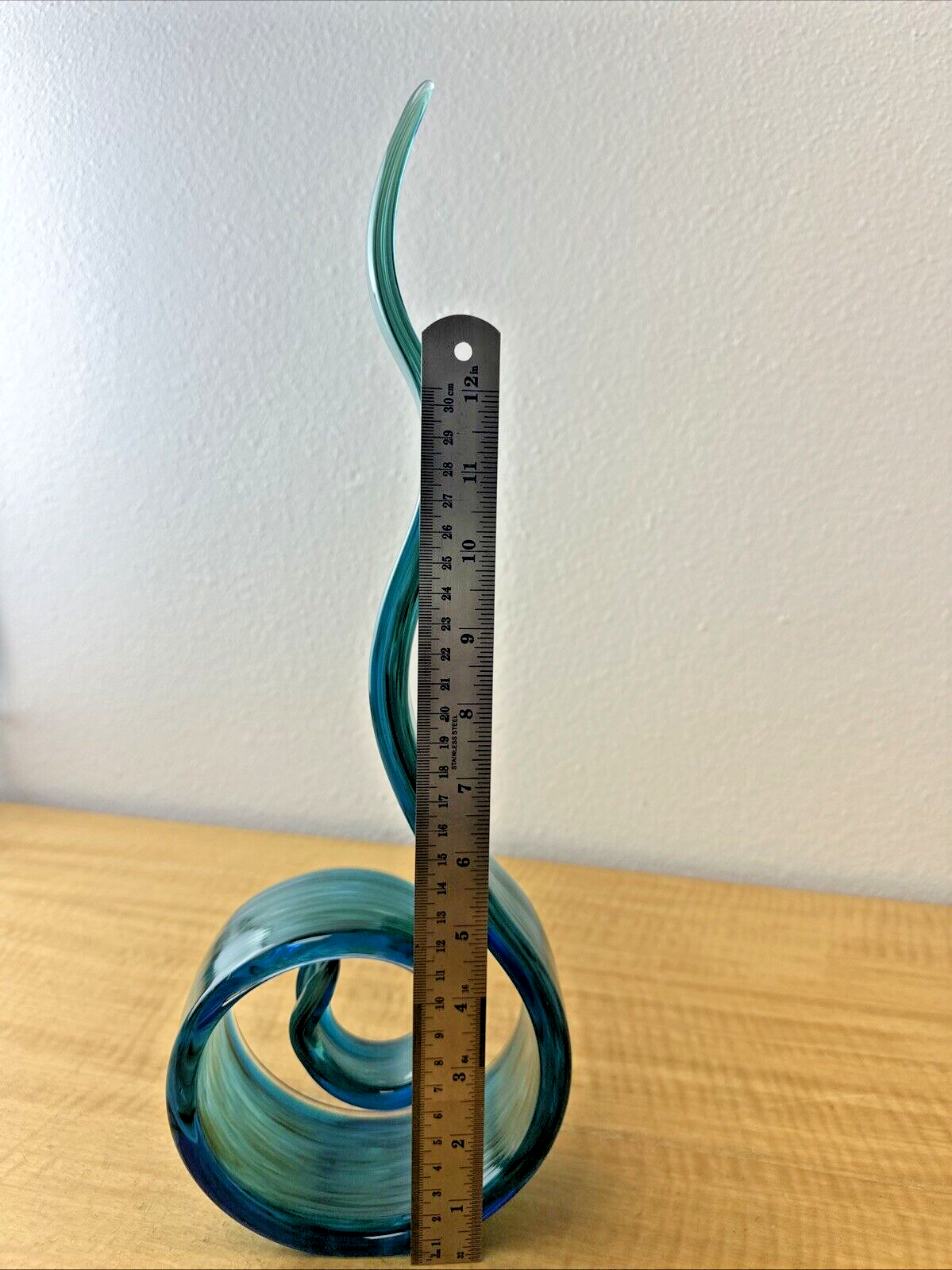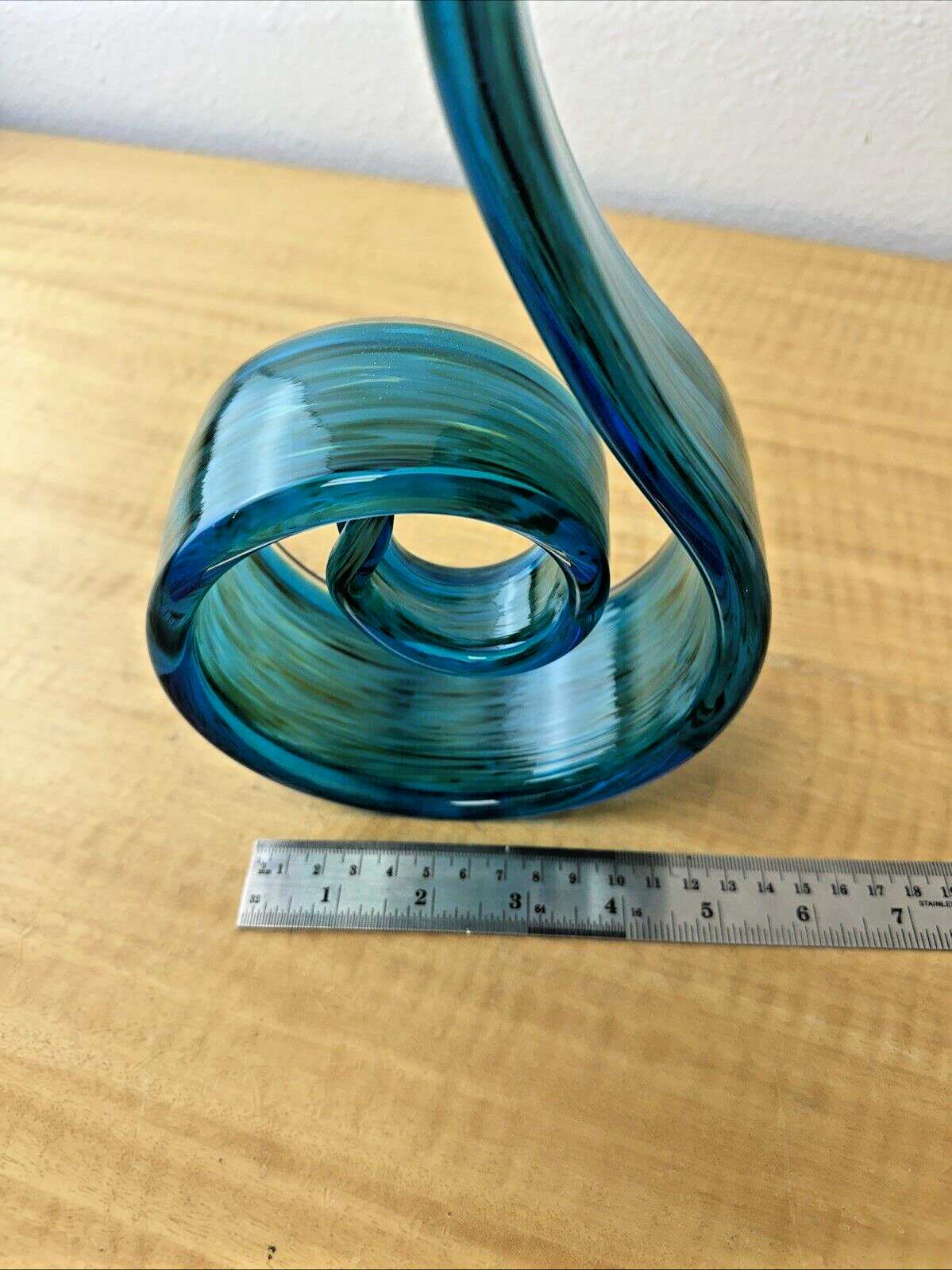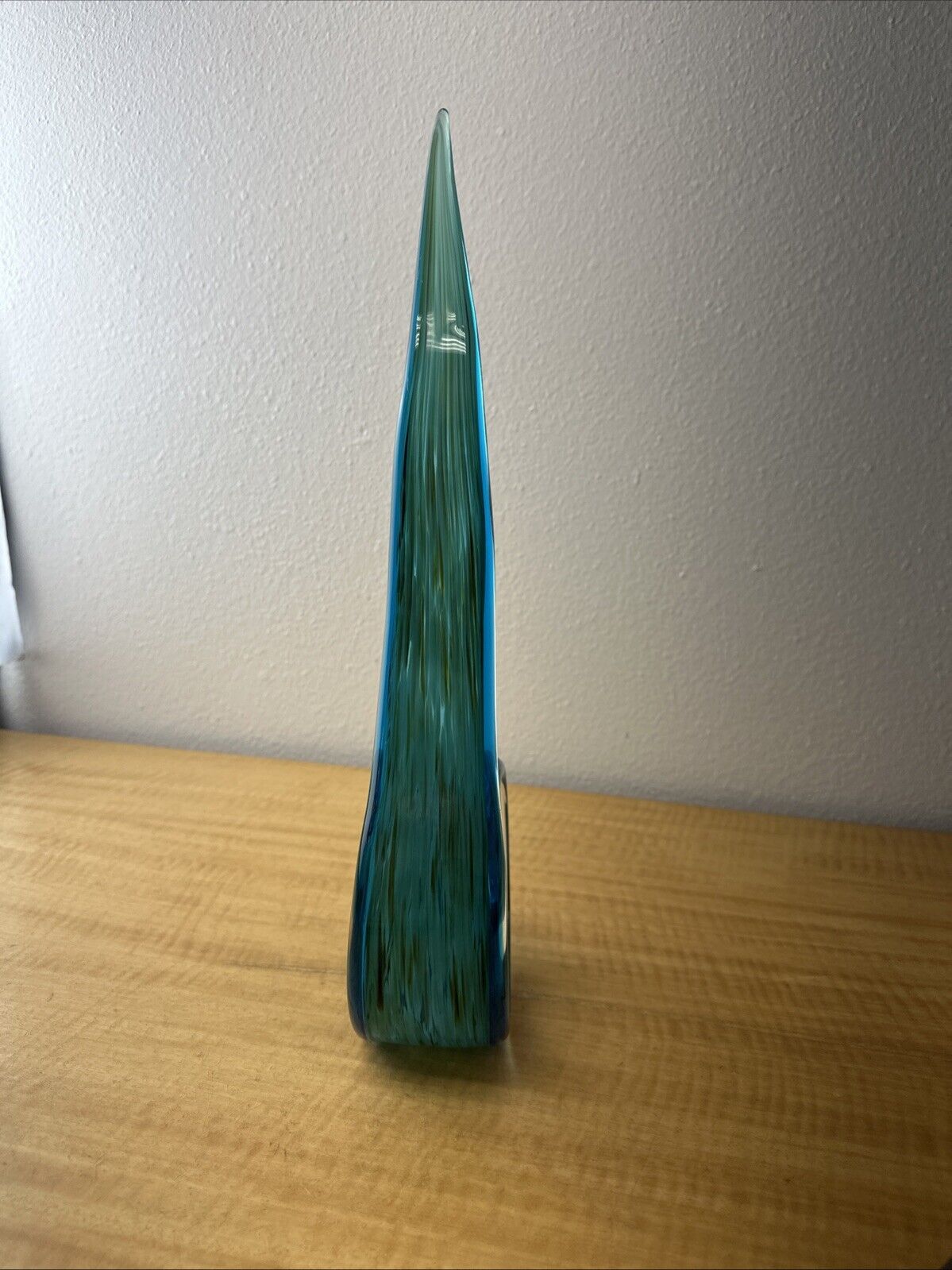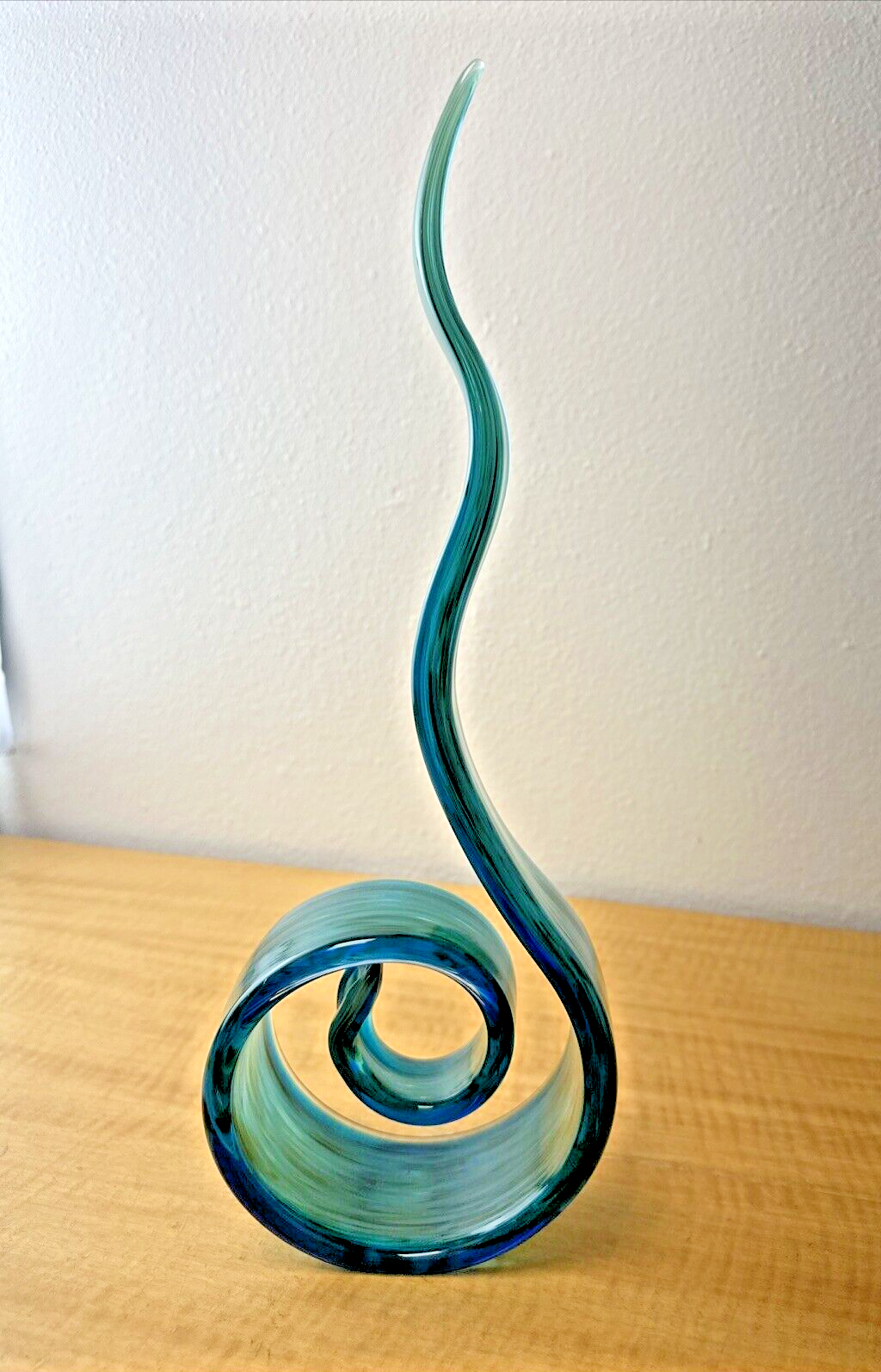 Vintage Murano Style Green and Blue Swirl Art Glass with Unique Pattern