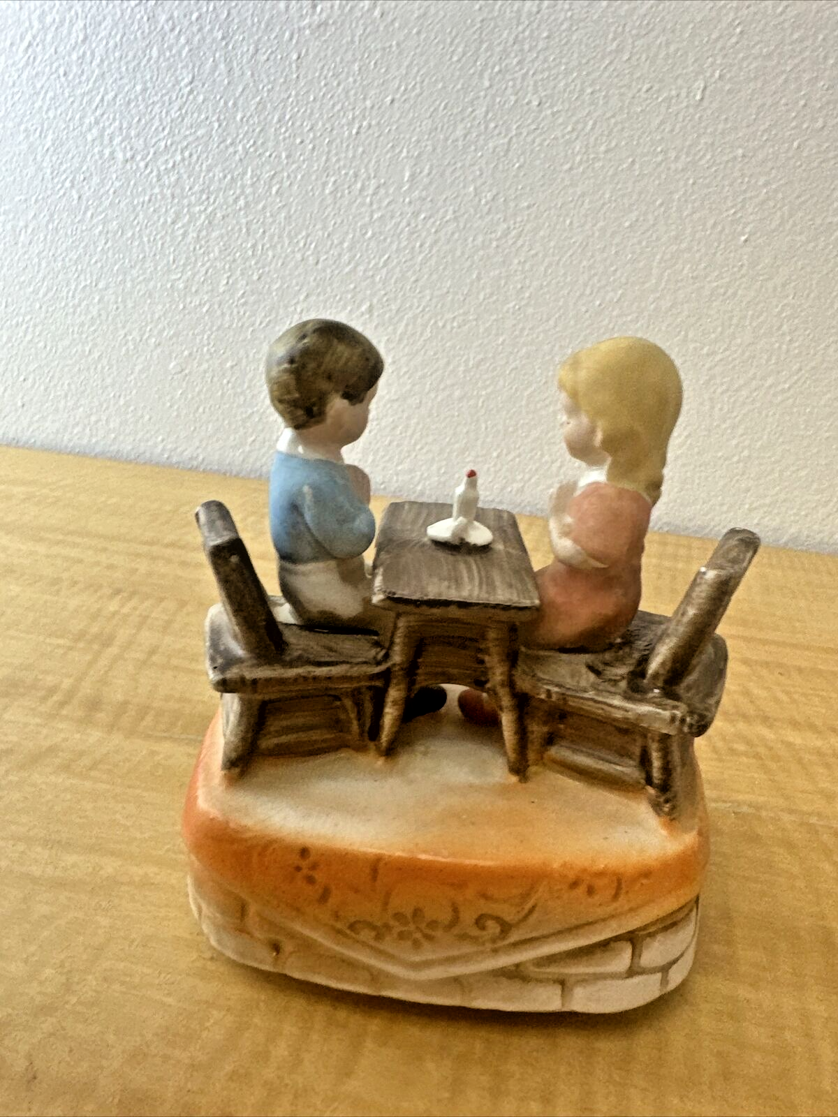 VINTAGE MUSICAL children praying FIGURINE MUSIC BOX