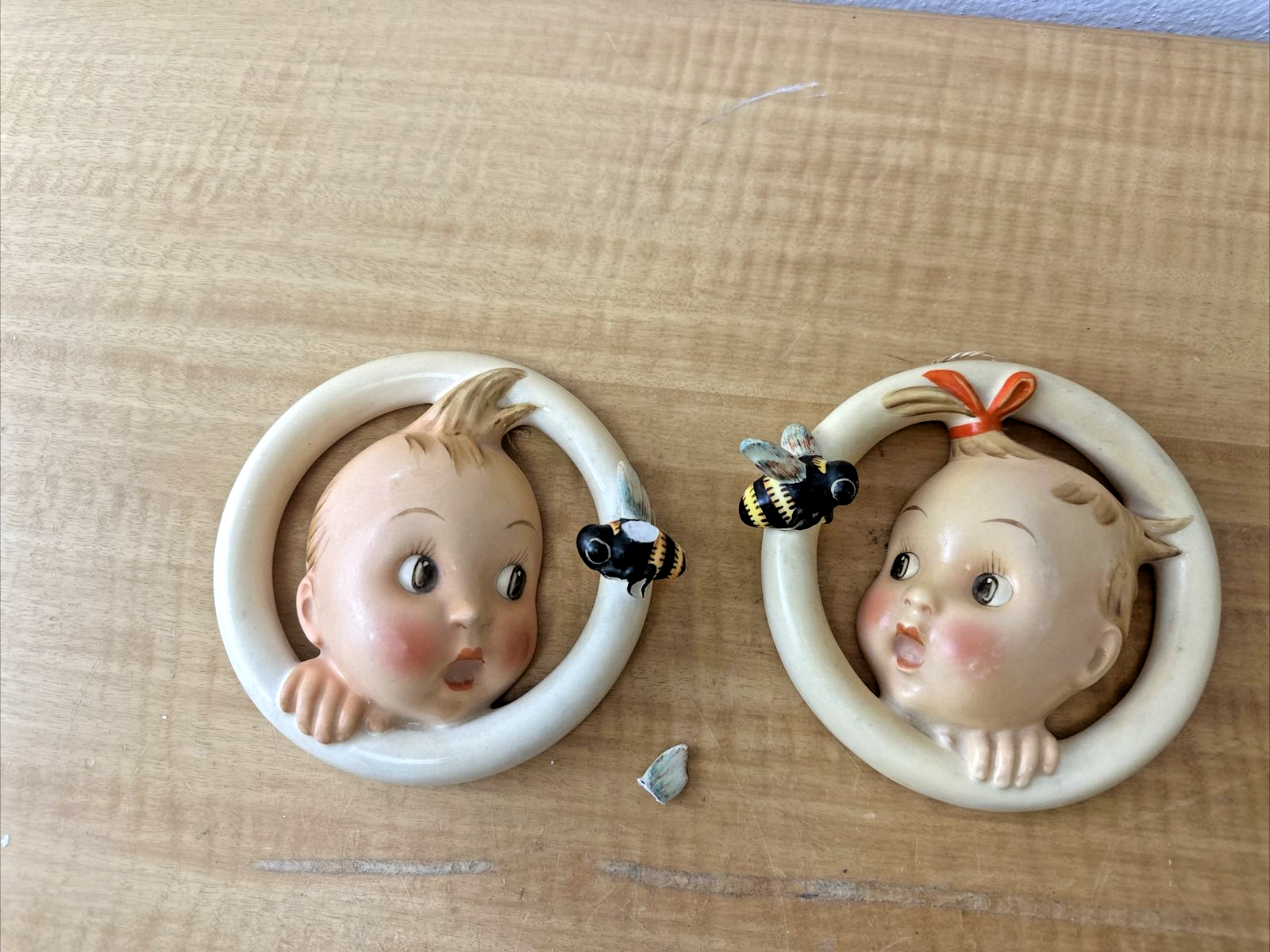 Vintage PAIR Hummel Ba-Bee BaBee Ring Wall Plaque 30/0B Boy & Girl 30/0A RARE