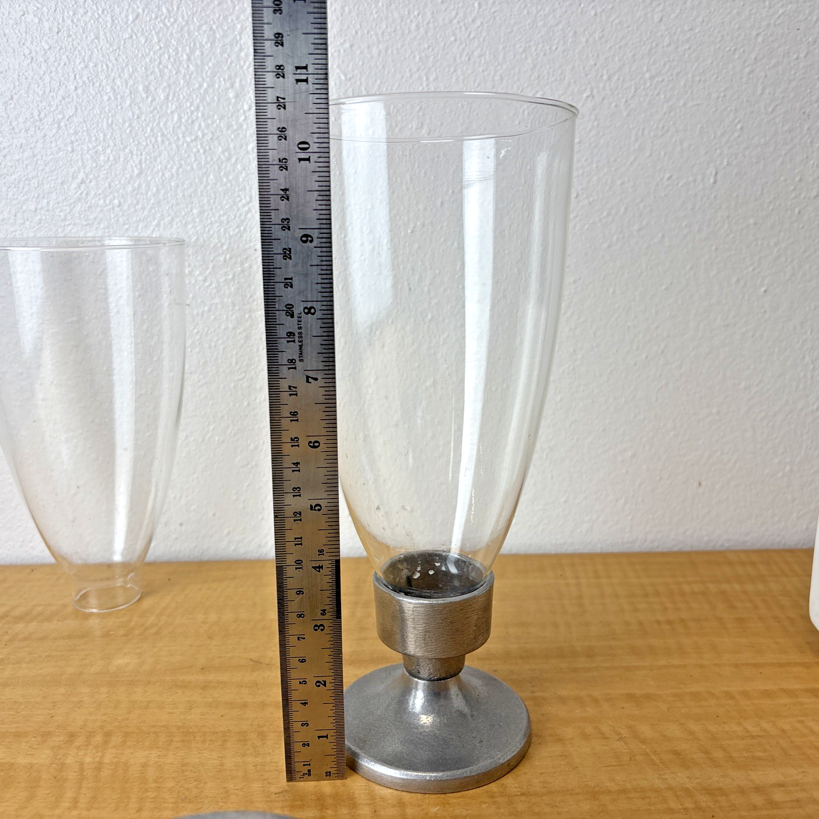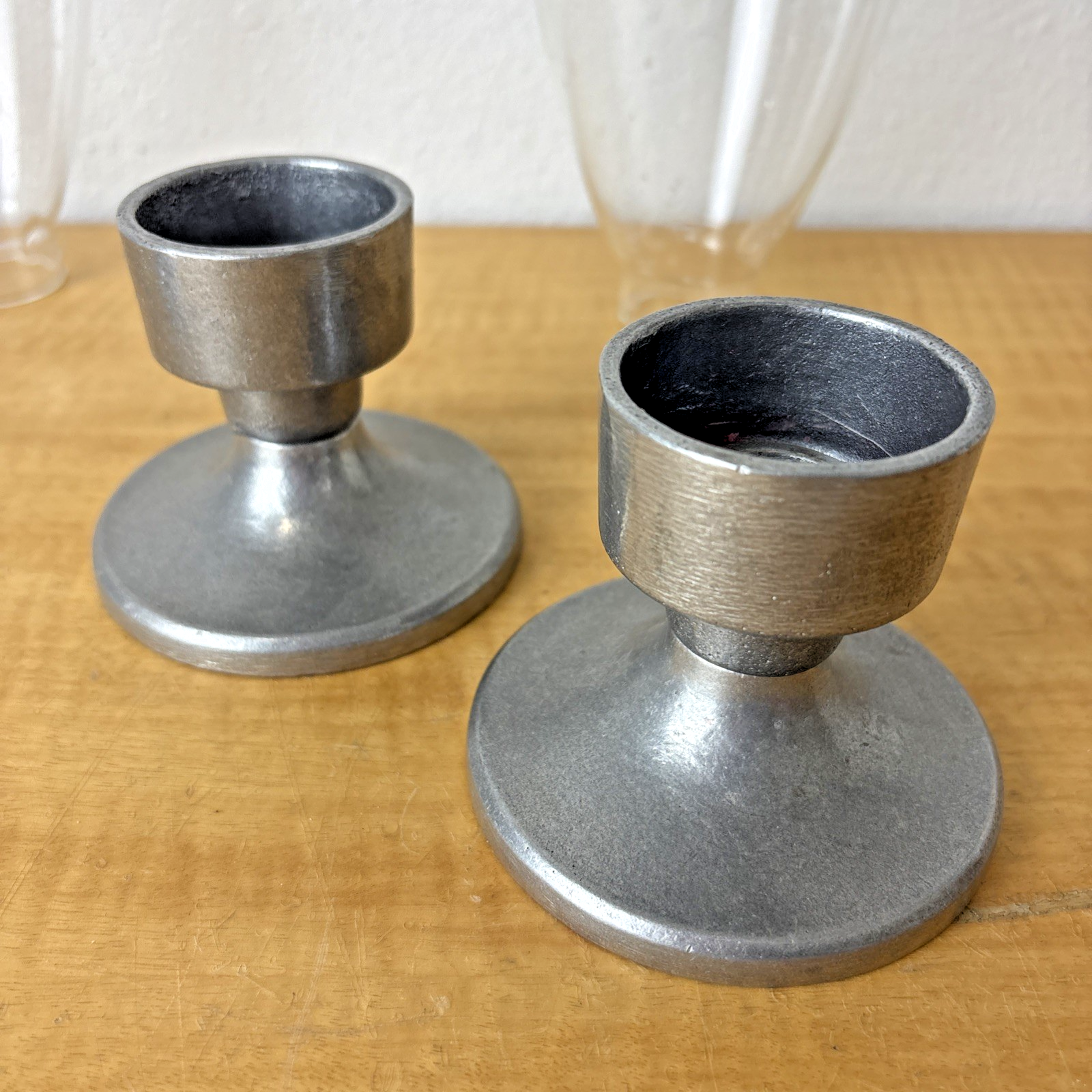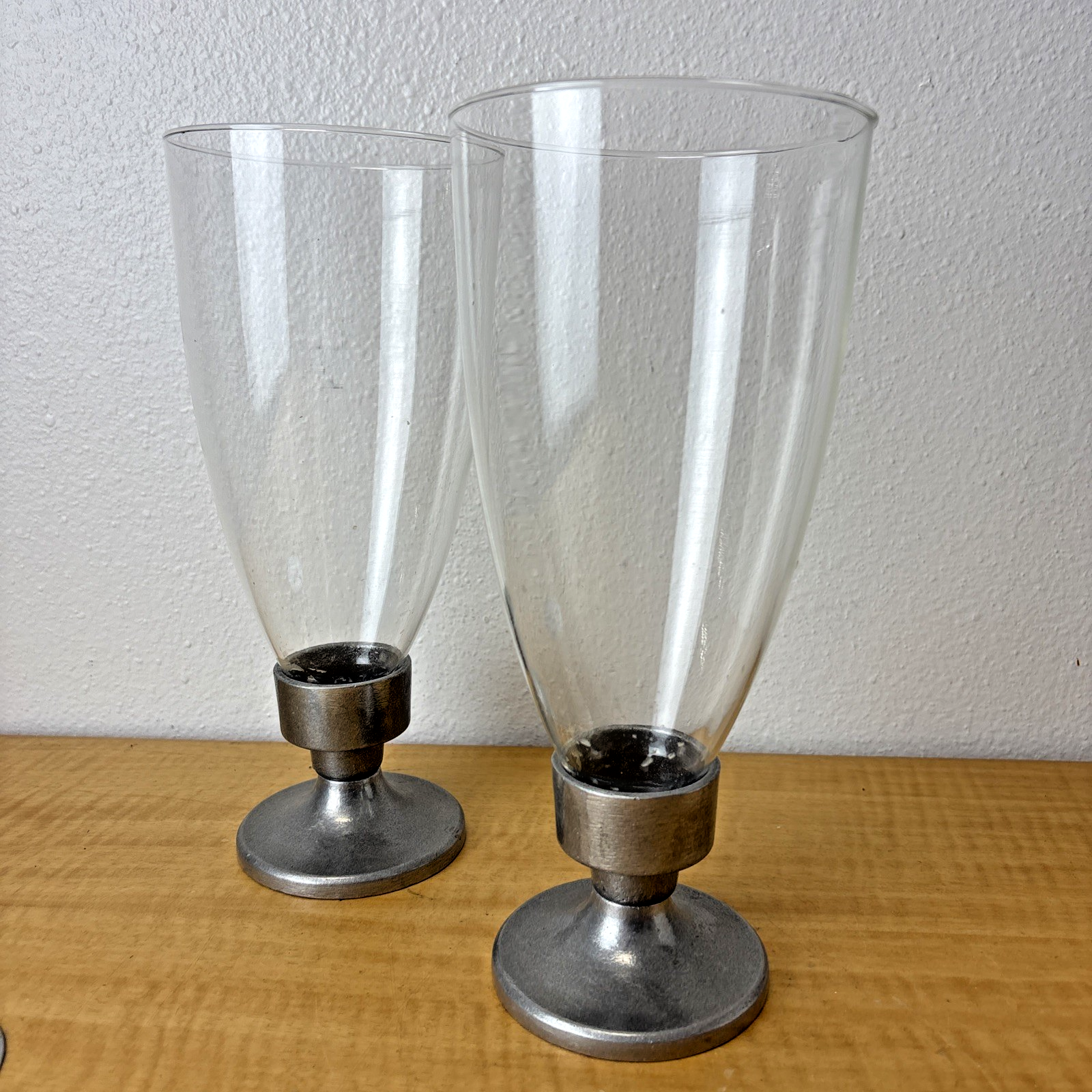 Vintage Pair of Pewter and Glass Candleholders / Candle Stick Holder