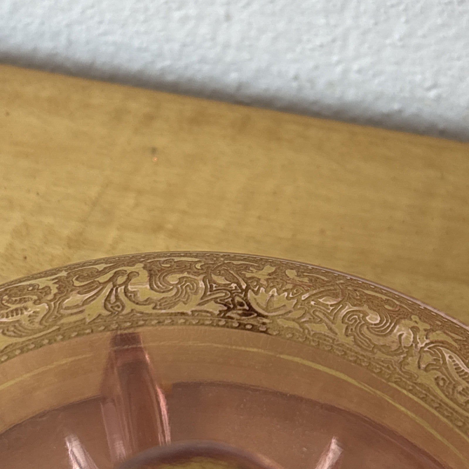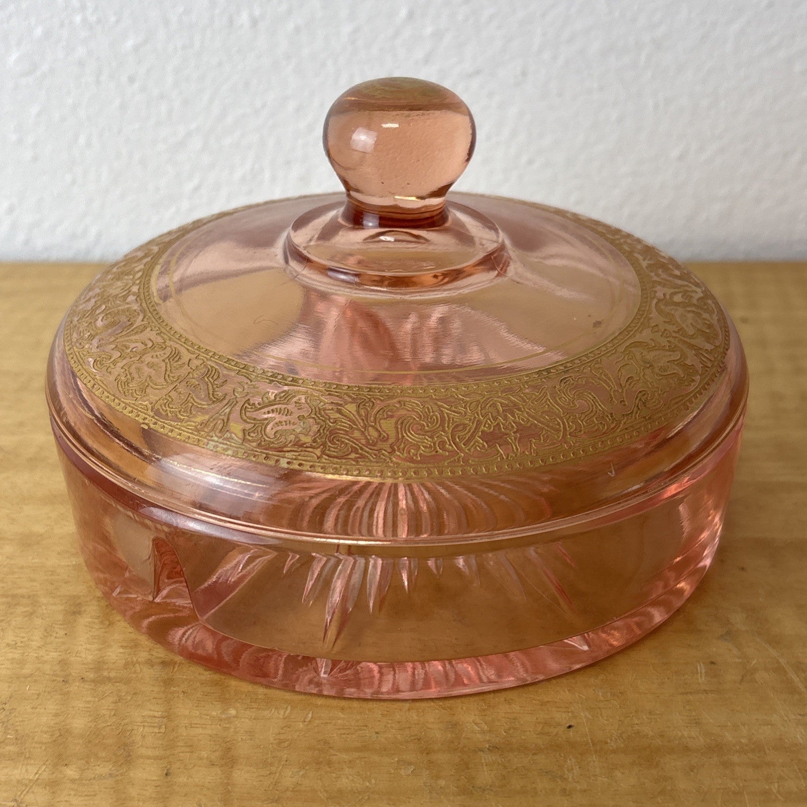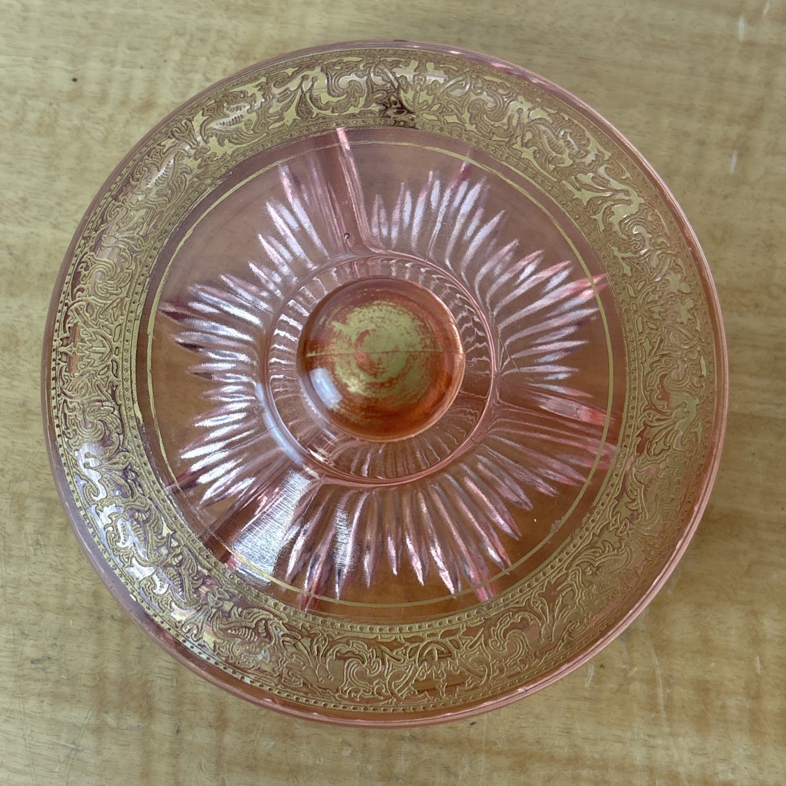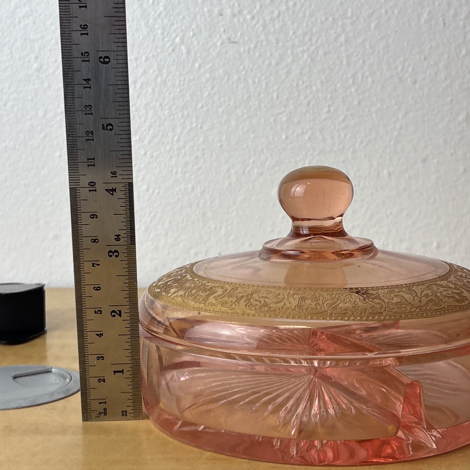 Vintage Pink and Gold Depression Glass Divided Candy Dish w/ Lid