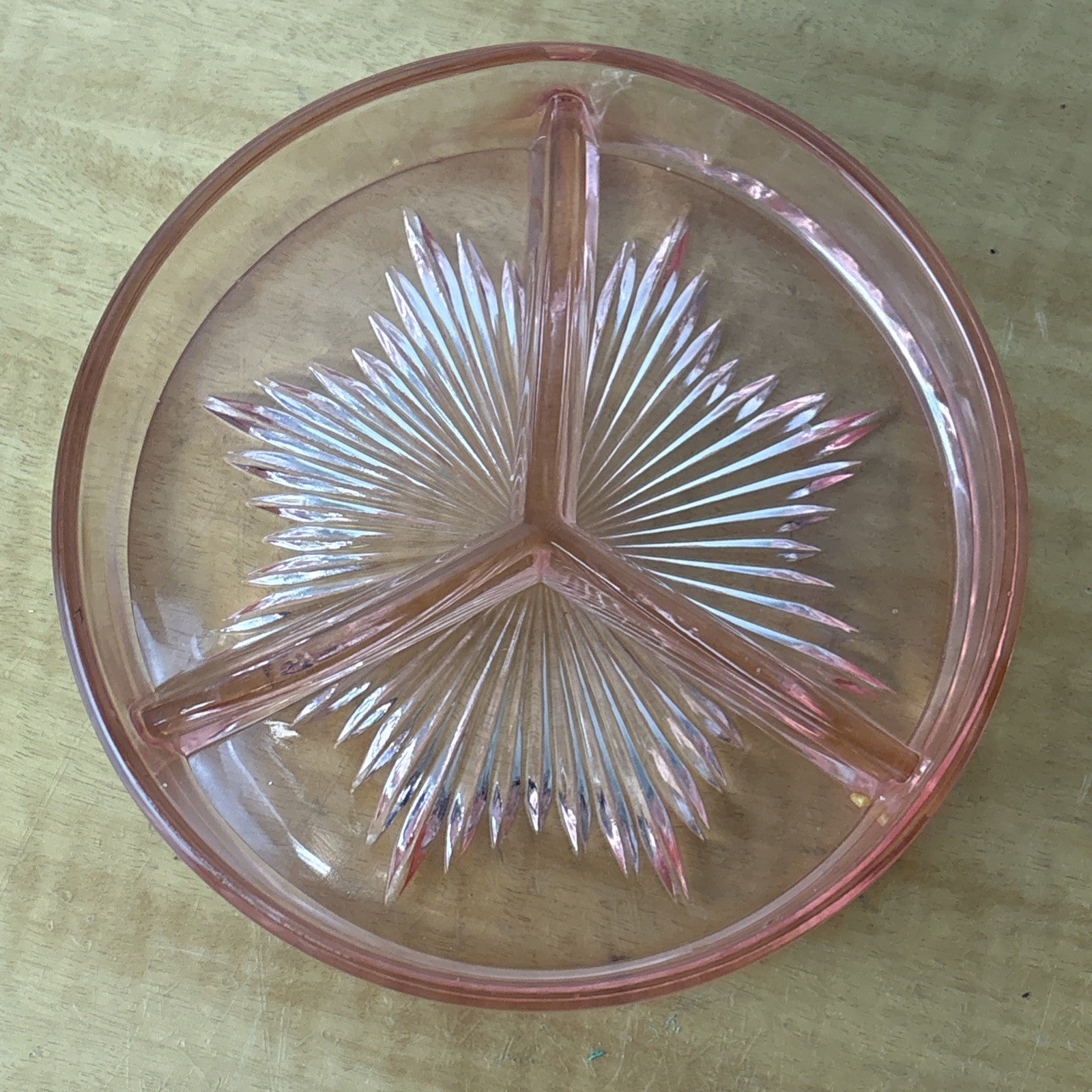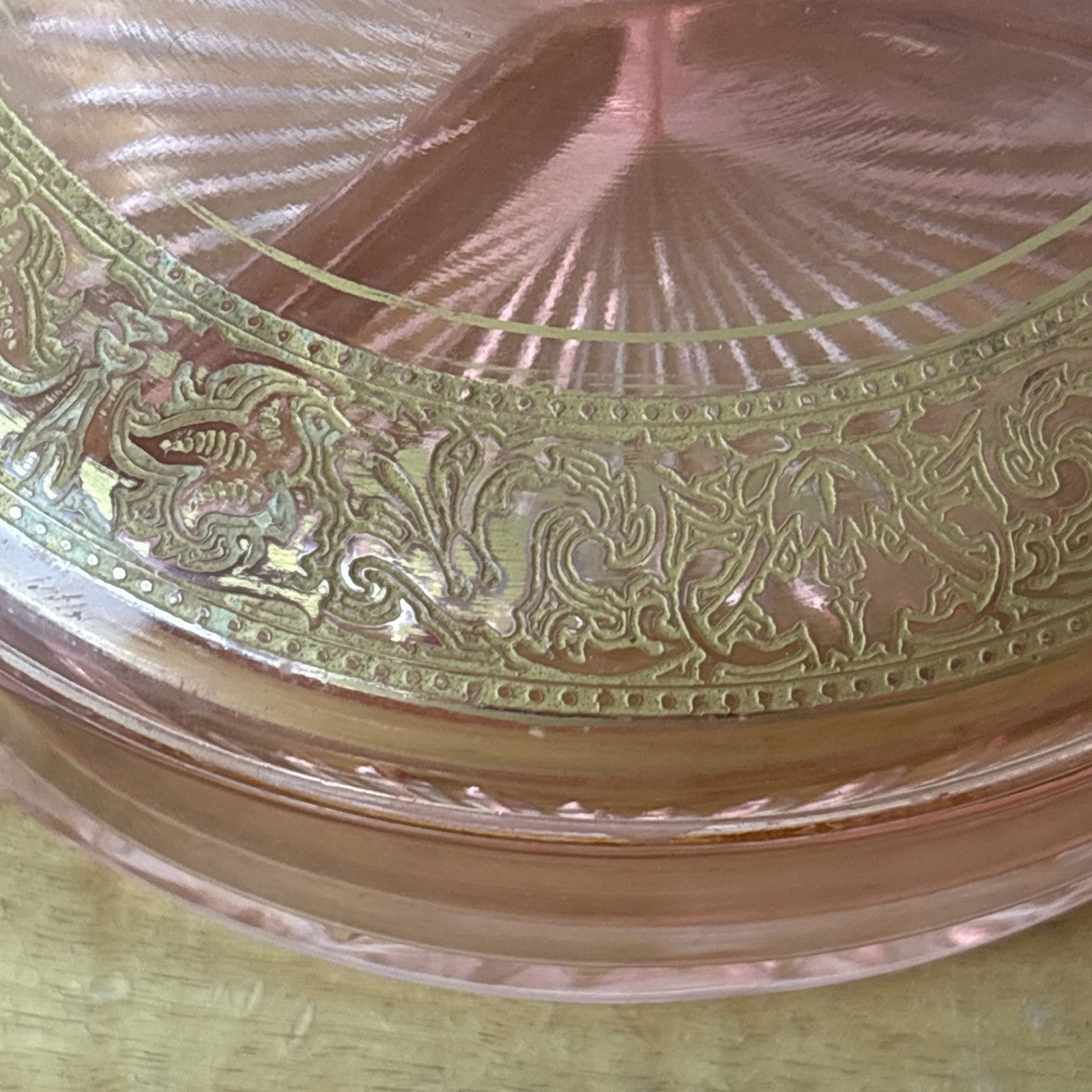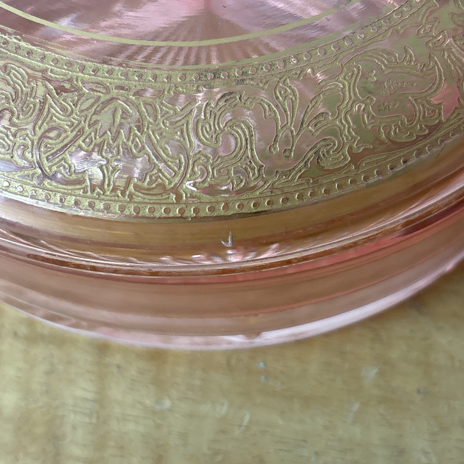Vintage Pink and Gold Depression Glass Divided Candy Dish w/ Lid