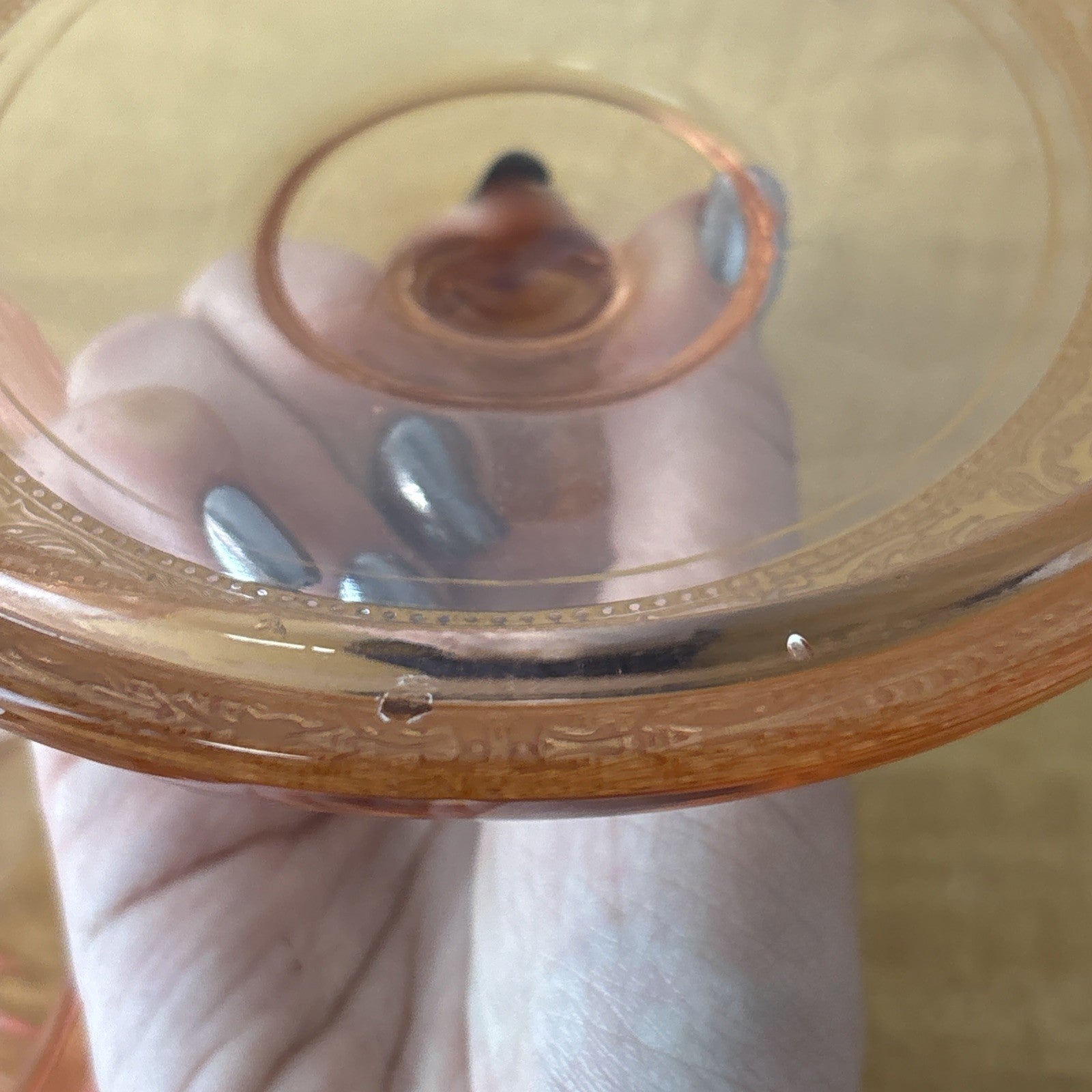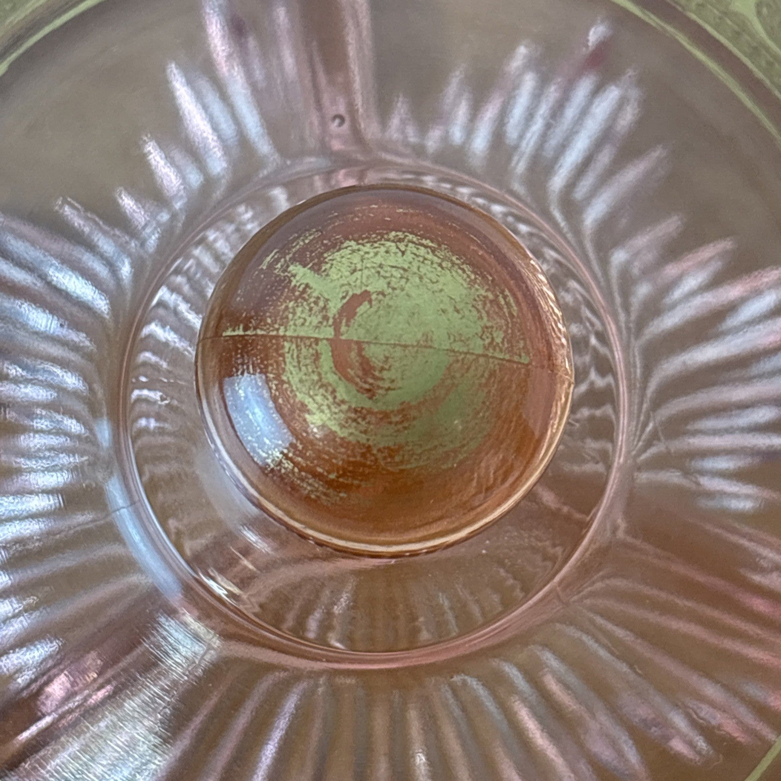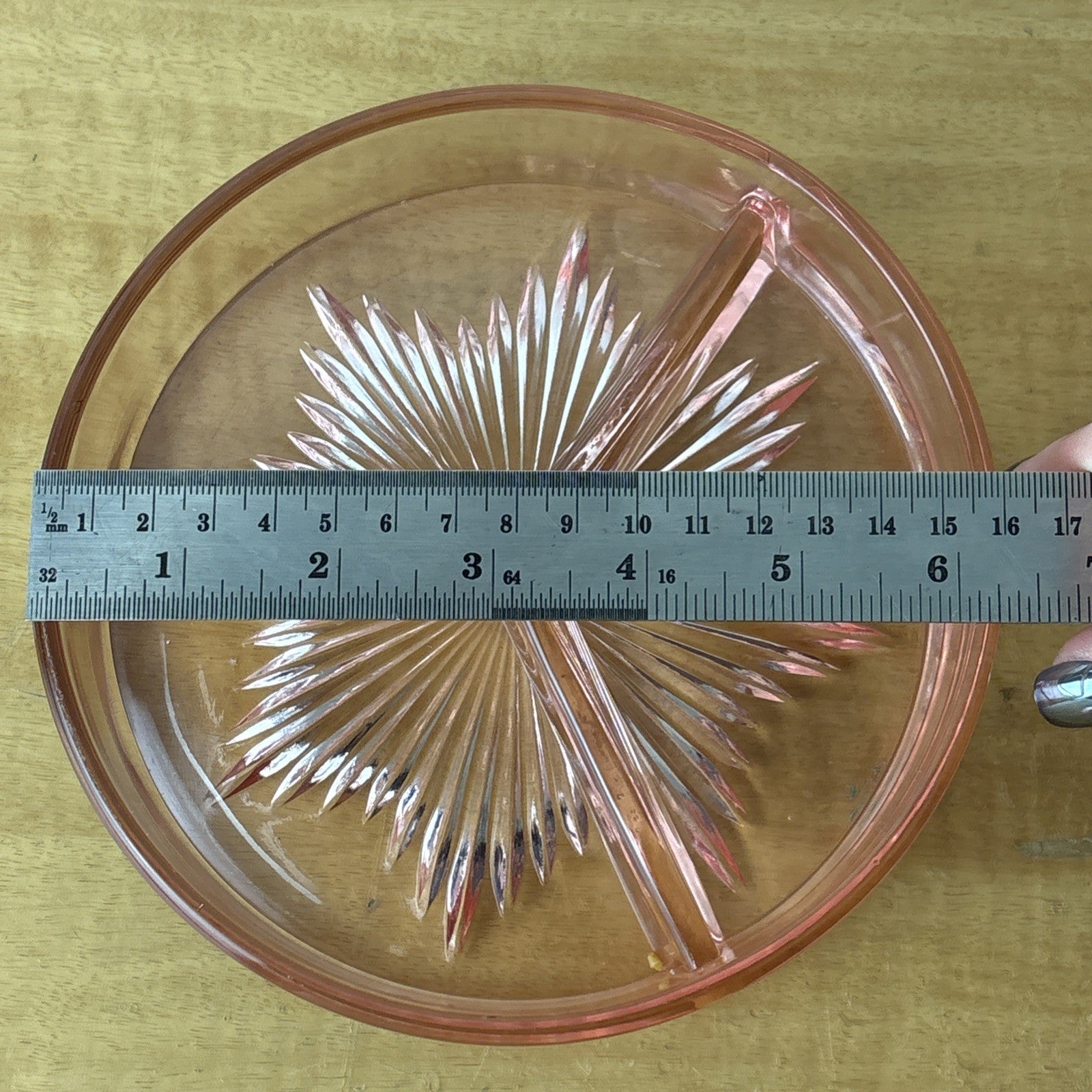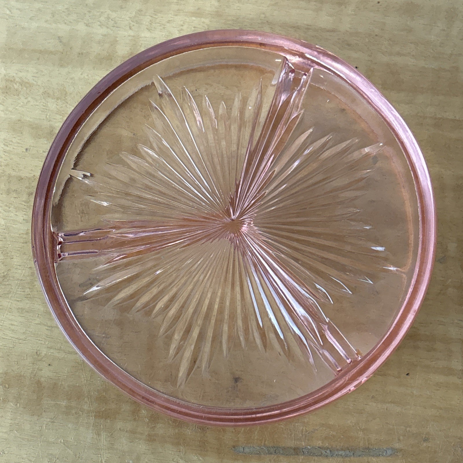 Vintage Pink and Gold Depression Glass Divided Candy Dish w/ Lid