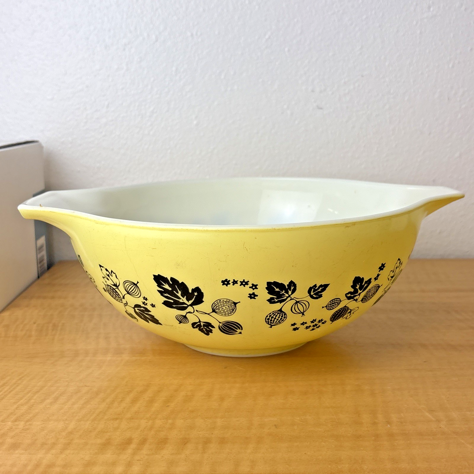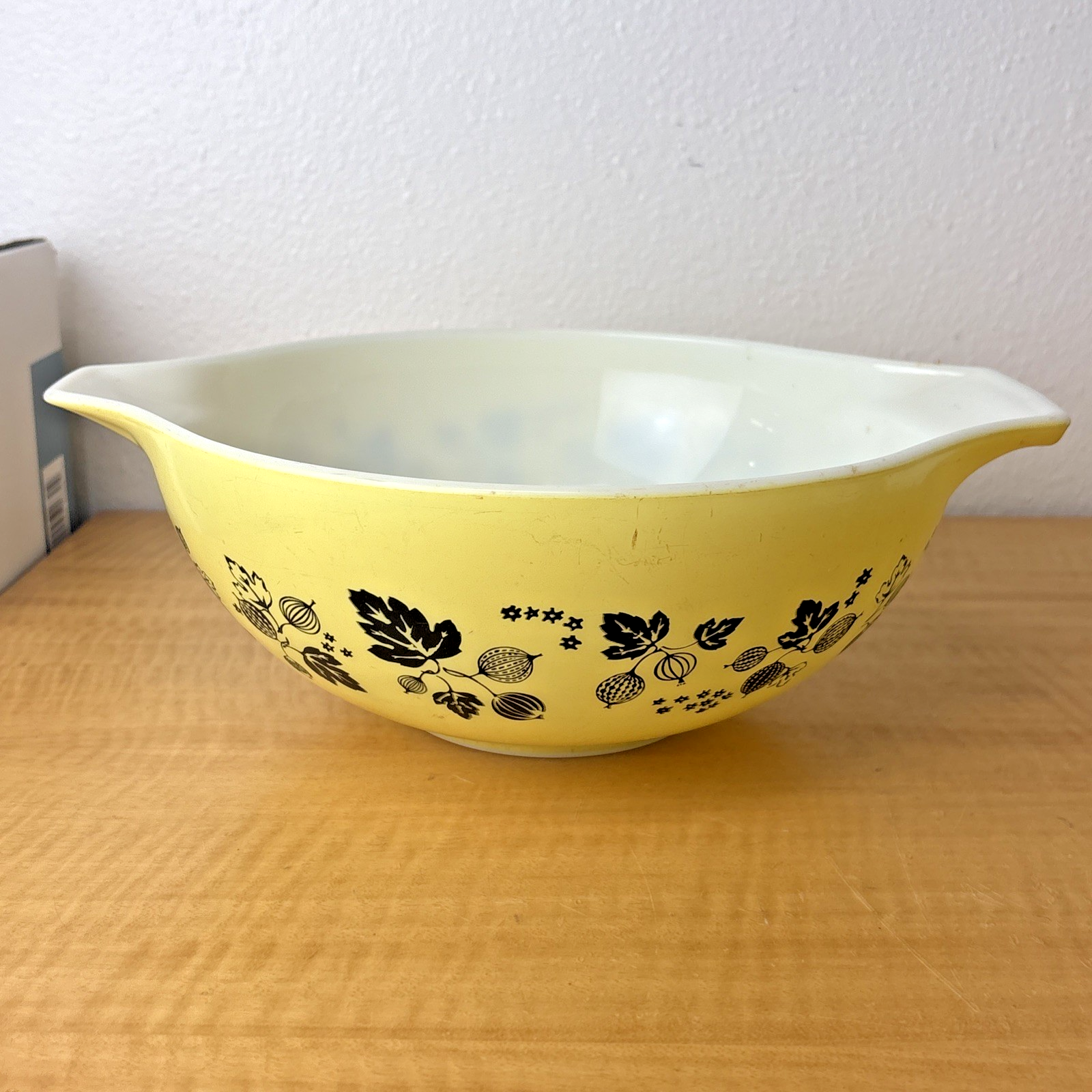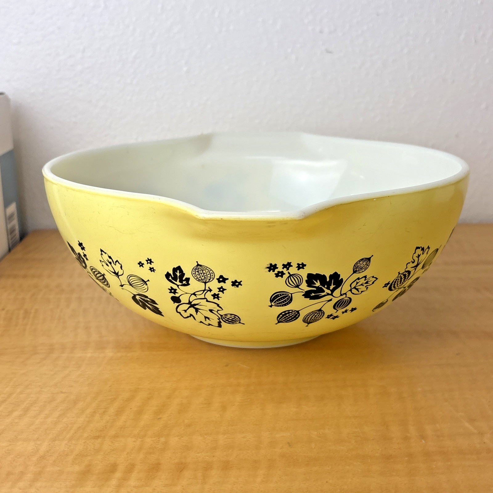 Vintage Pyrex #444 Gooseberry 4 Qt Cinderella Mixing Bowl Yellow Black