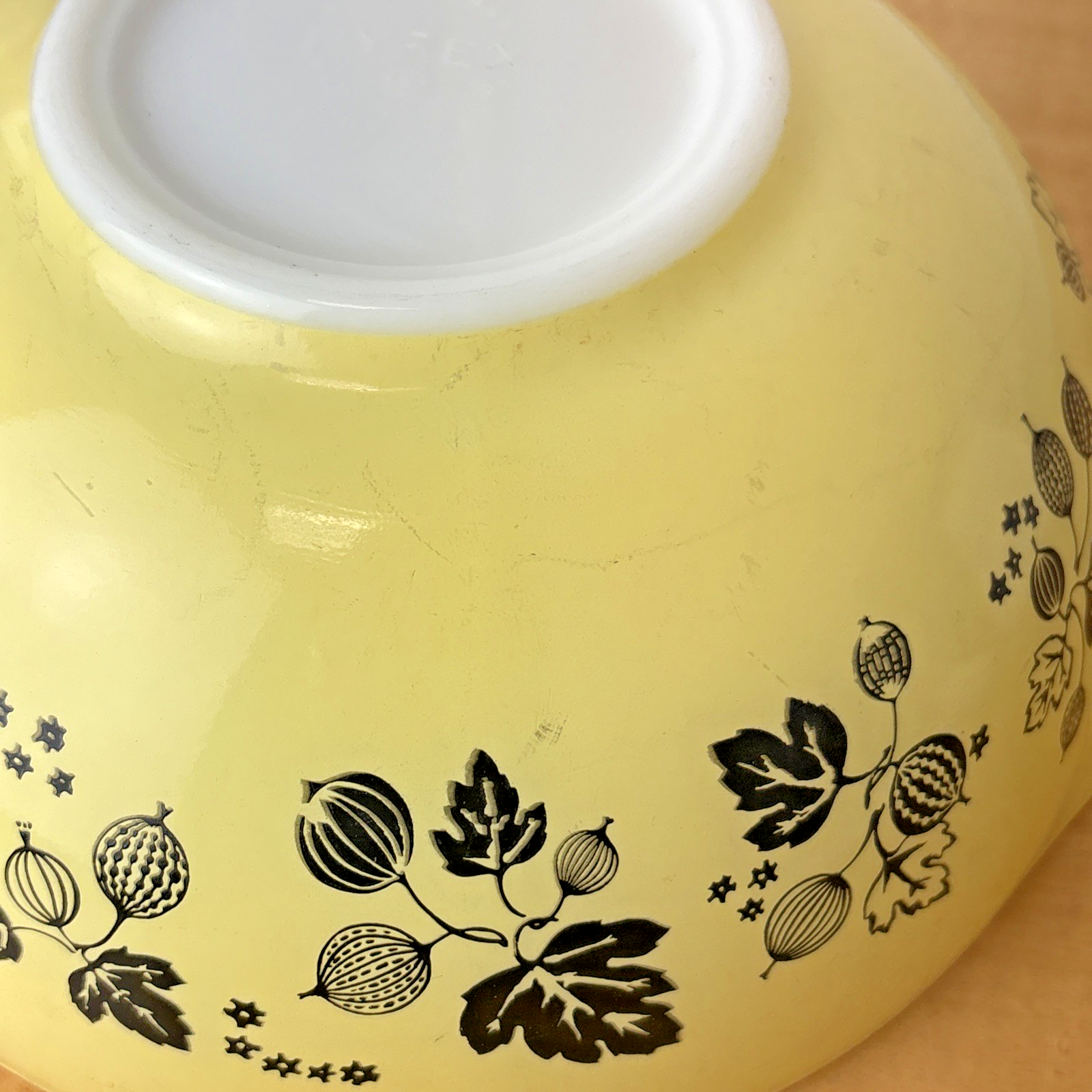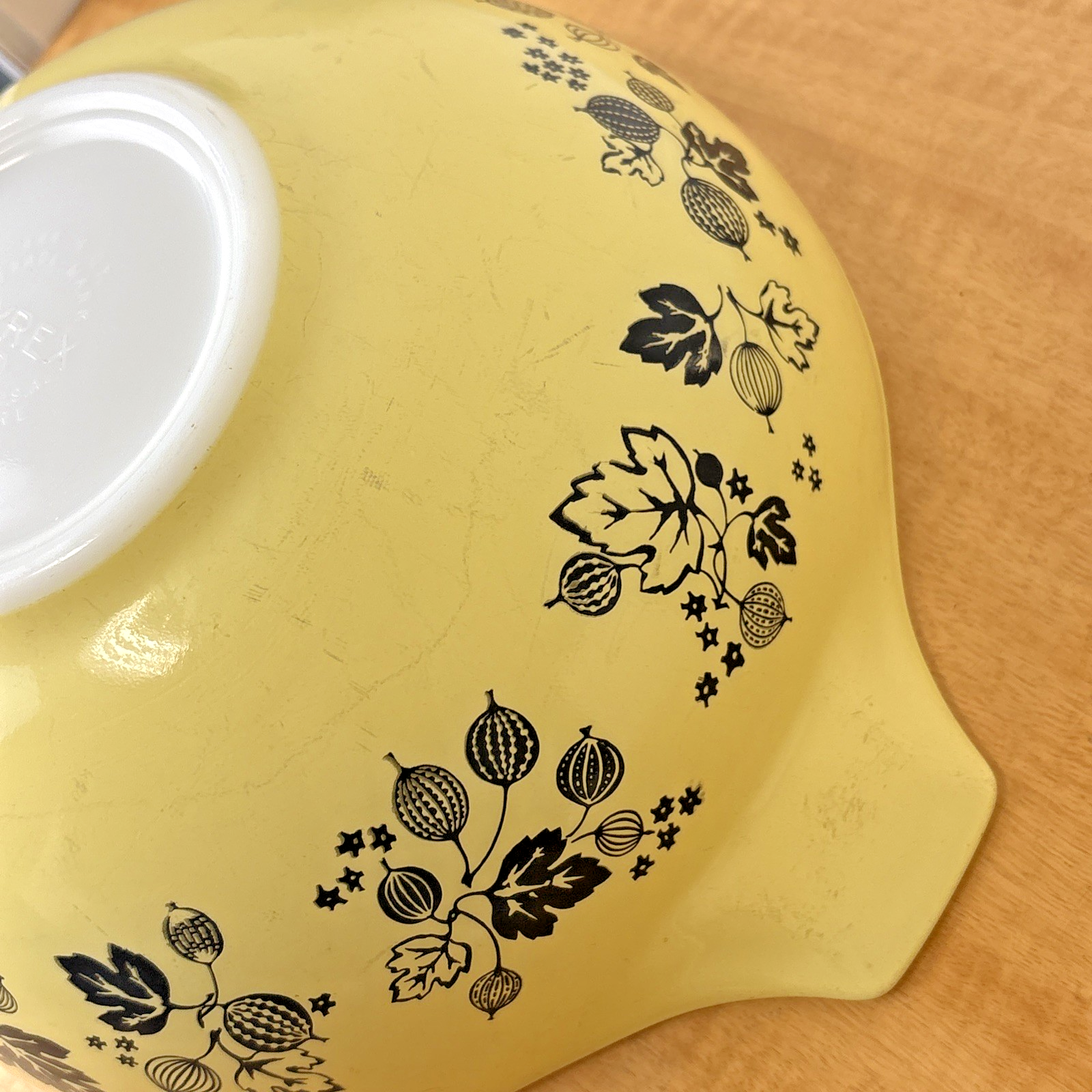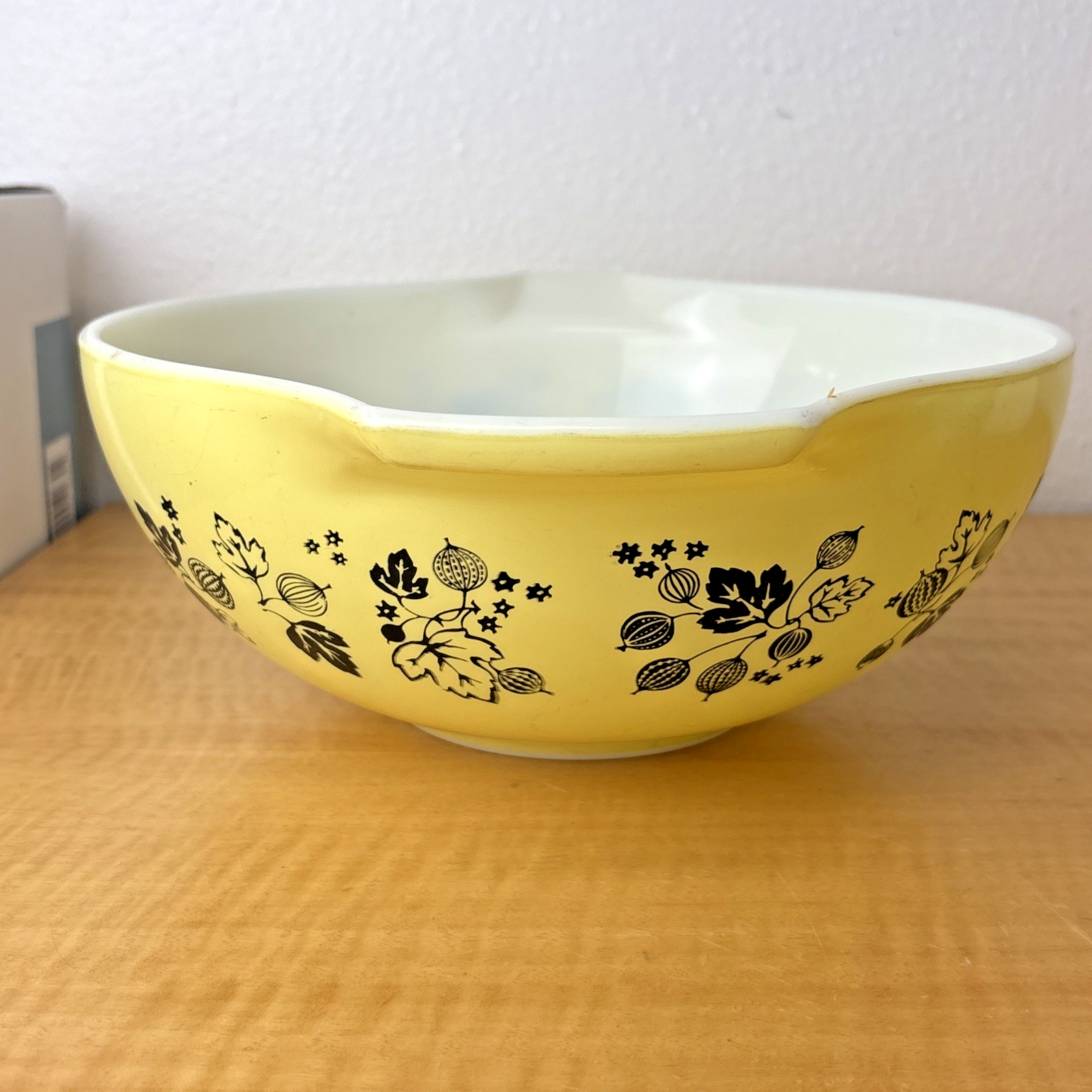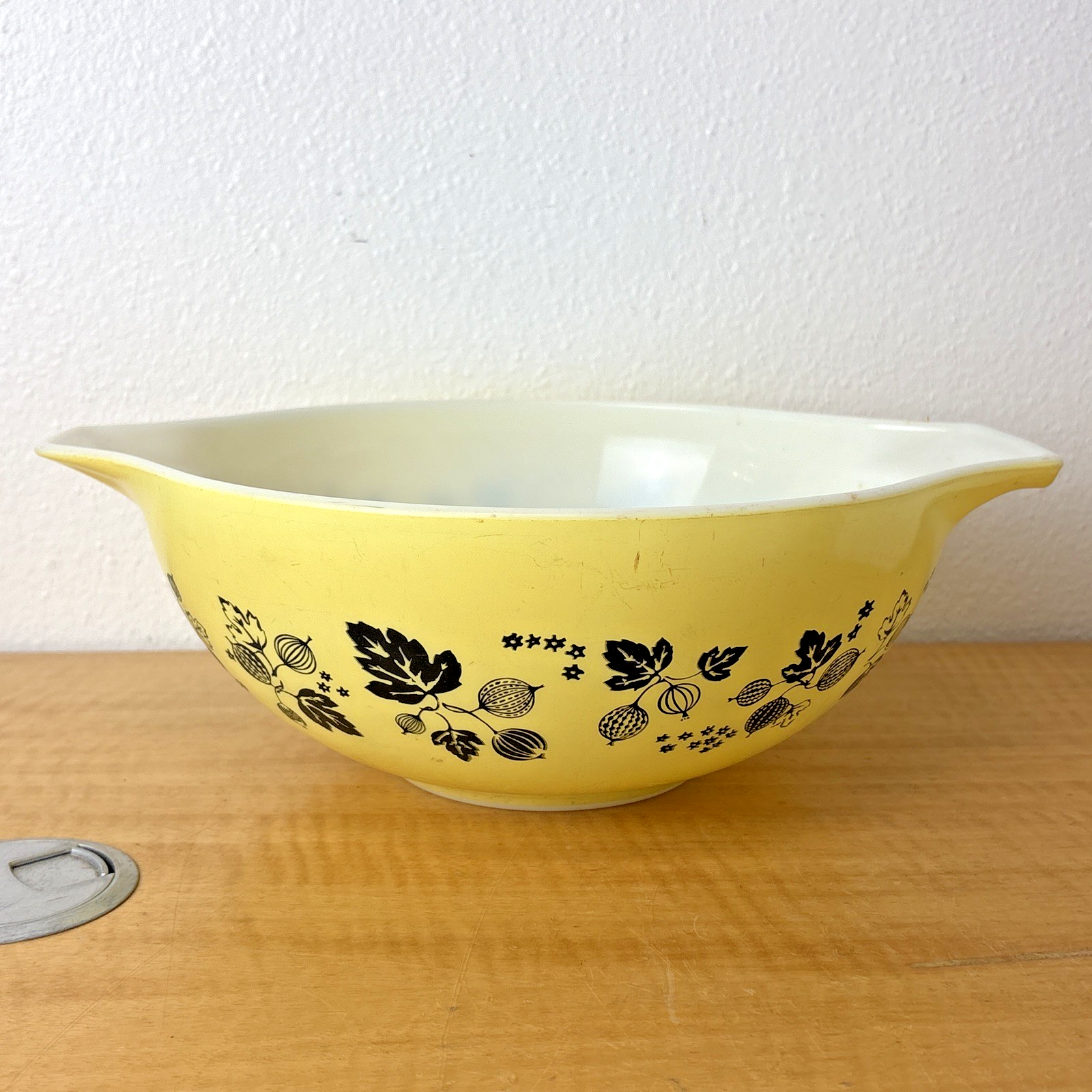 Vintage Pyrex #444 Gooseberry 4 Qt Cinderella Mixing Bowl Yellow Black